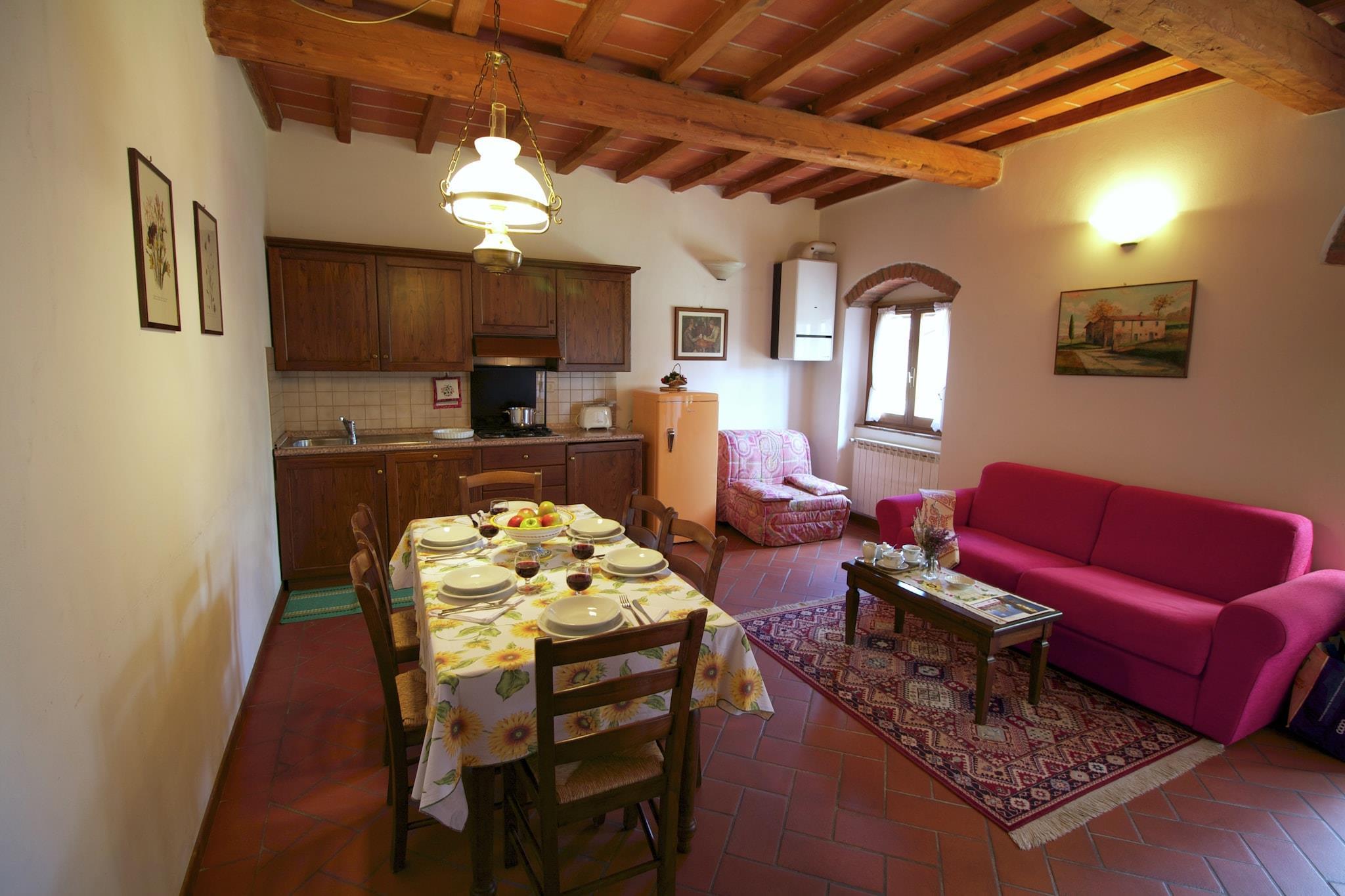 Dieses authentische toskanische Bauernhaus in Poppi, in der Nähe von Arezzo. In dieser wunderschönen Bauernhof gibt insgesamt 9 Wohnungen, in einem authentischen toskanischen Stil eingerichtet. Es liegt in einem großen eingezäunten Fläche von 12 Hektar mit Gärten und Wäldern, ideal für Spaziergänge in der Natur gelegen. Die Gäste können auch Gebrauch machen von dem Kinderspielplatz, Kegelbahn, Tischtennis, Grill, Holzofen, überdachte Parkplätze, einen Pool und einem wunderschönen und erholsamen Jacuzzi. Auf dem Bauernhof können Sie Schinken und Salami, die aus ihren eigenen Schweinen sind zu kaufen. Der Bauernhof liegt im grünen Tal des Casentino. Dieser Bereich hat noch den Charme einer Gegend, in historischen, religiösen und künstlerischen Erbes mit einer wunderschönen Natur verbunden. In der Region sind Berge, Täler, Seen, Bäche und Wälder. Werfen Sie auch einen Blick auf den Nationalpark von Casentino und dem Monte Falterona. Das bezaubernde Tal verläuft entlang des Flusses Arno. Kunststädte, die Sie Cortona, Anghiari und Caprese Michelangelo besuchen. Kurz gesagt, in diesem Betrieb zu Ihnen einen schönen Urlaub zu verbringen!
