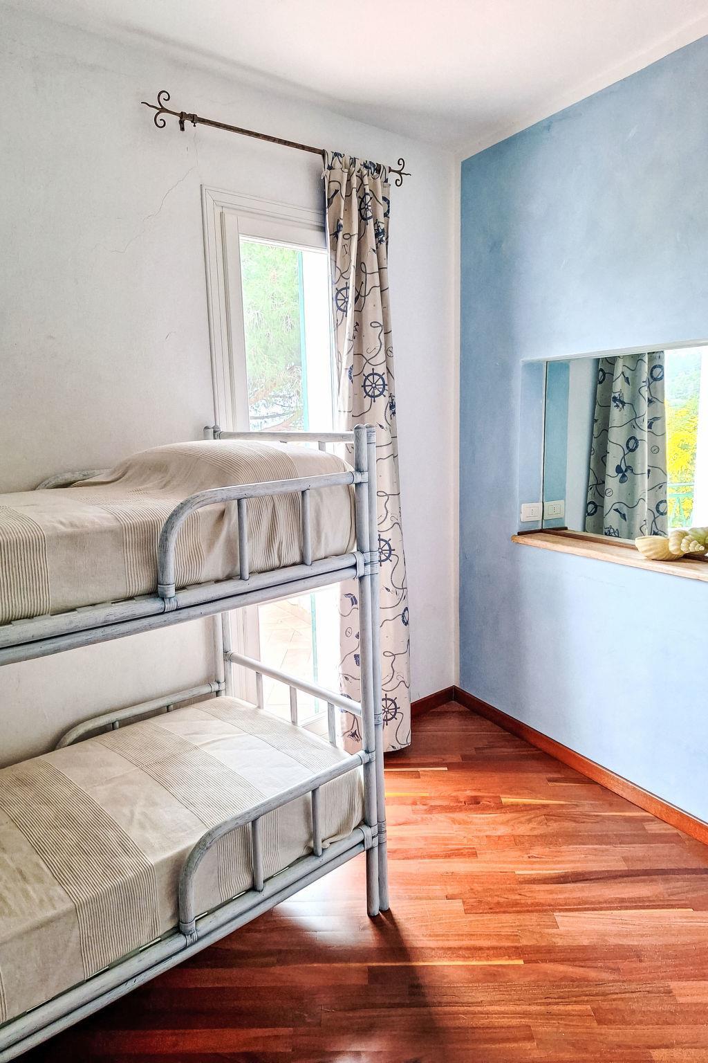4-Zimmer-Villa 120 m2 auf 2 Stockwerken. Geräumig, geschmackvoll und gemütlich eingerichtet: offenes grosses Wohn-/Esszimmer mit Panoramafenster mit Esstisch, TV und Ventilator. Ausgang zur Terrasse. Offene Küche (Backofen, Geschirrspüler, 4 Flammen, elektrische Kaffeemaschine). Ausgang zur Terrasse. Dusche/Bidet/WC. Obergeschoss: 2 Doppelzimmer, jedes Zimmer mit Klimaanlage und Ventilator. Ausgang zur Terrasse. 1 Zimmer mit 1 x 2 Etagenbetten, Klimaanlage. Ausgang zur Terrasse. Dusche/Bidet/WC. Keine Heizmöglichkeit. Grosser Balkon, grosse Terrasse teilweise überdacht, grosse Terrasse, Gartensitzplatz. Terrassenmöbel, Balkonmöbel, Gartengrill, Liegestühle. Sehr schöne Sicht auf das Meer und das Städtchen. Zur Verfügung: Waschmaschine, Haartrockner. Internet (WLAN, gratis). Bitte beachten: Nichtraucher-Haus. Eigener Eingang. IT049013C2LN36TPKU