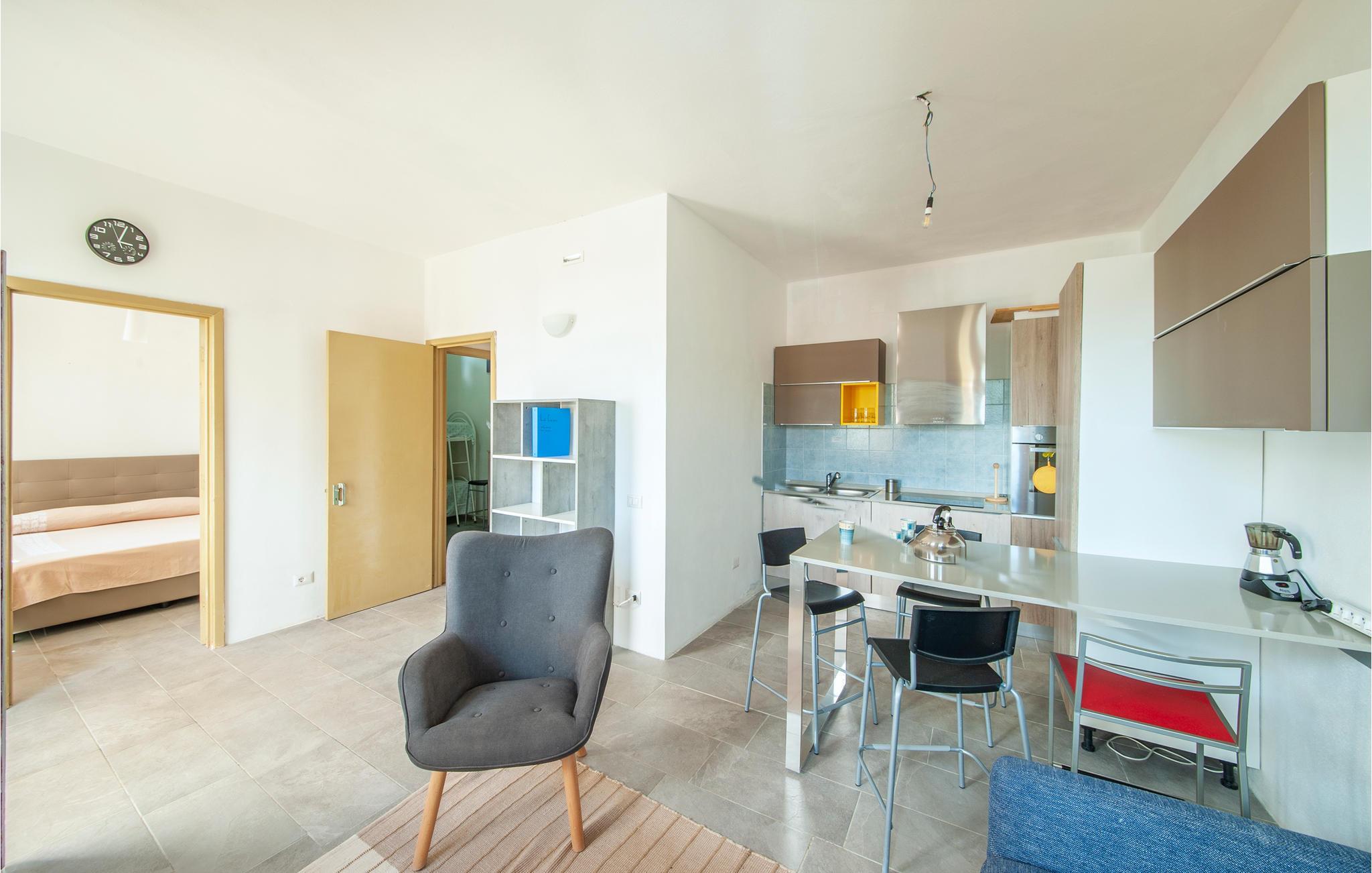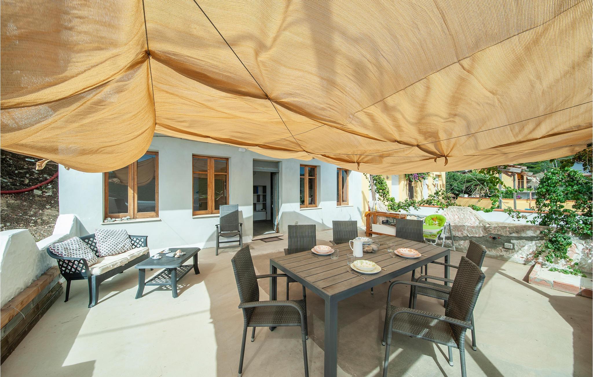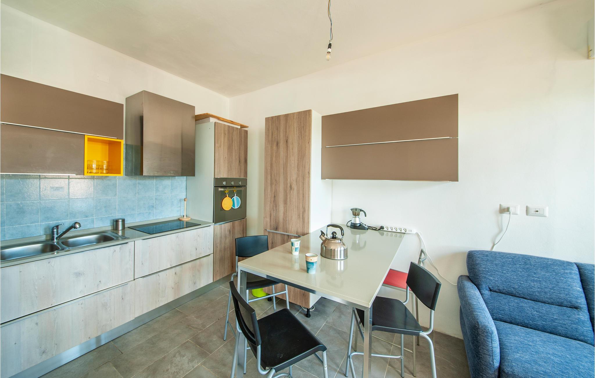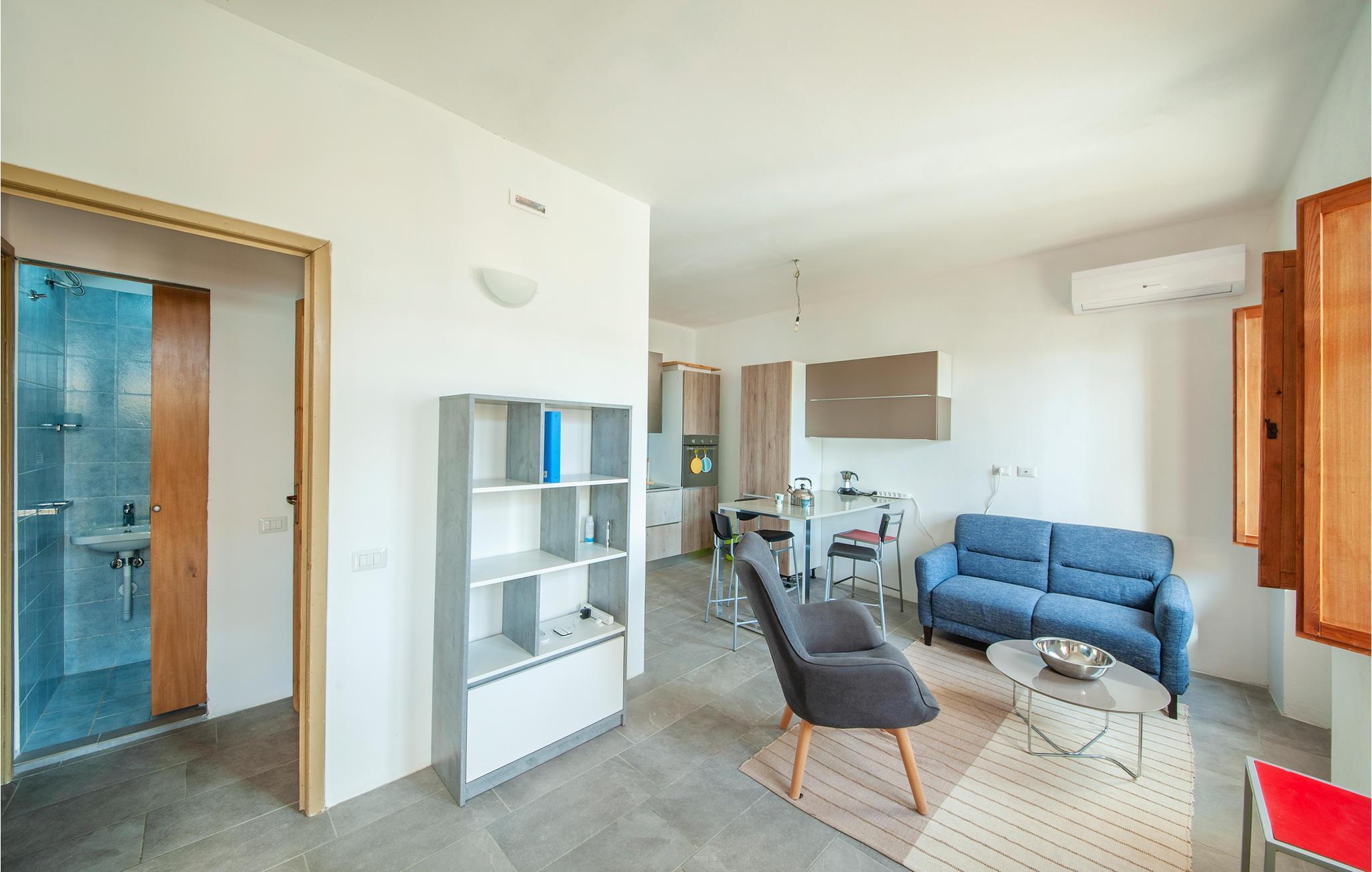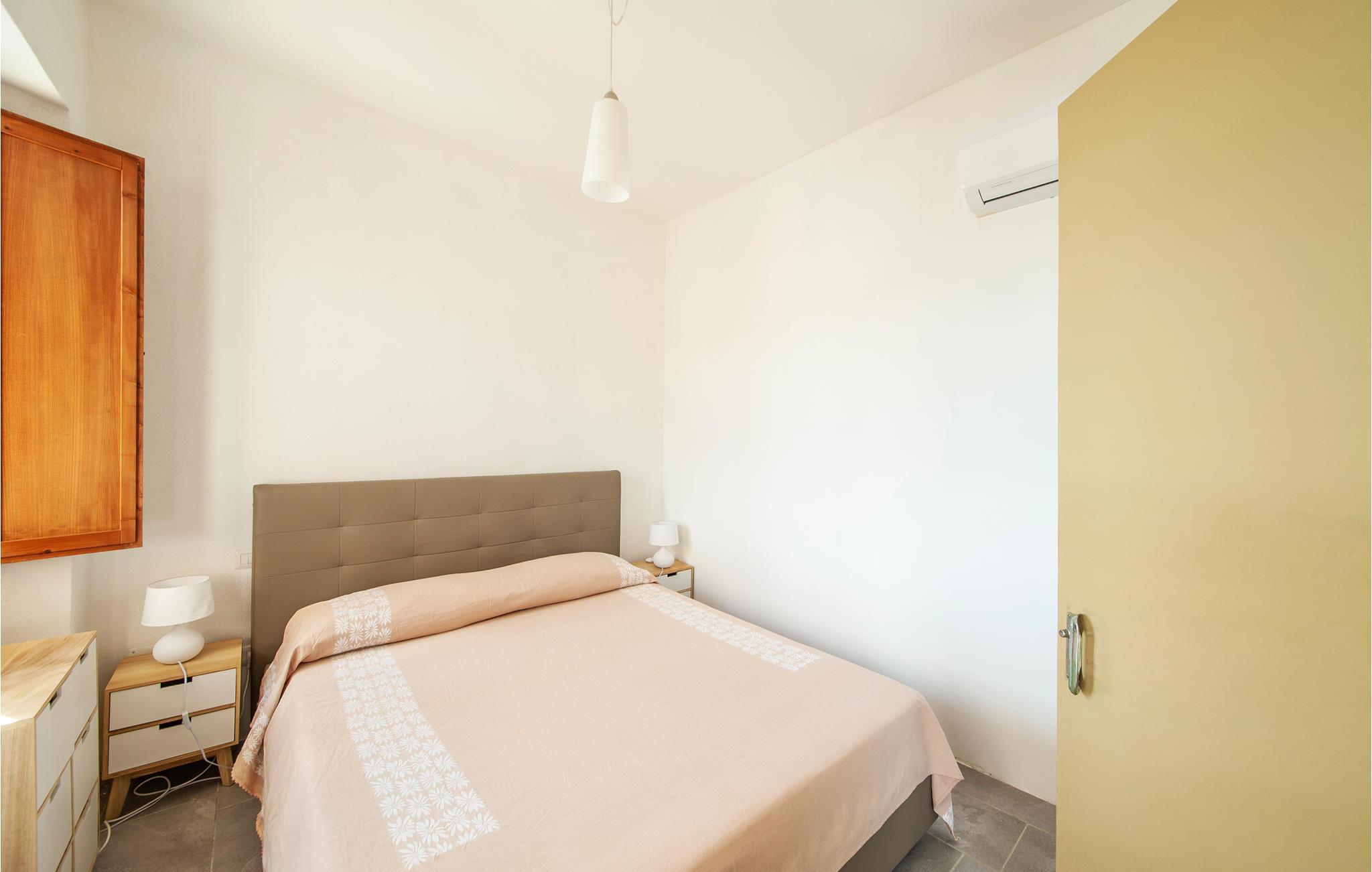 Diese Ferienwohnung genießt von der im Sommer teilweise beschatteten Terrasse einen wirklich herrlichen Blick auf den Strand von Porto Palma. Die Wohnung ist hell eingerichtet, und verfügt über zwei Badezimmer, ein Schlafzimmer mit einem Etagenbett und ein schönes Doppelzimmer mit Meerblick. Vom Wohnzimmer aus können Sie auch den Meerblick genießen. Porto Palma ist der ideale Ort für diejenigen, die das Meer und die Ruhe lieben. Der Strand ist auch ideal für Familien mit Kindern, denn der Meeresboden ist niedrig und selbst wenn der charakteristische Mistralwind weht, bleibt die Gegend geschützt. Die Küste ist voller Buchten, die zu Fuß erreichbar sind. Für diejenigen, die ein bisschen Bewegung lieben, werden am Abend auf dem Platz des nahe gelegenen Torre dei Corsari (3 km) Festivals und Unterhaltungsveranstaltungen organisiert. Der Strand mit feinen Sanddünen, einige der höchsten in Europa, ist 2,5 km entfernt. Nicht weit von hier liegt das malerische Fischerdorf Marceddi (14 km), wo Sie exzellenten frischen Fisch genießen können. In Portu Maga (11 km) können Sie auch im Winter in einem schönen Restaurant mit Meerblick essen. Hier trifft man vielleicht sogar den sardischen Hirsch, denn Portu Maga ist auch als Hirschpark bekannt. Nicht asphaltierte Zufahrte, steile Zugangstreppe zur Unterkunft.