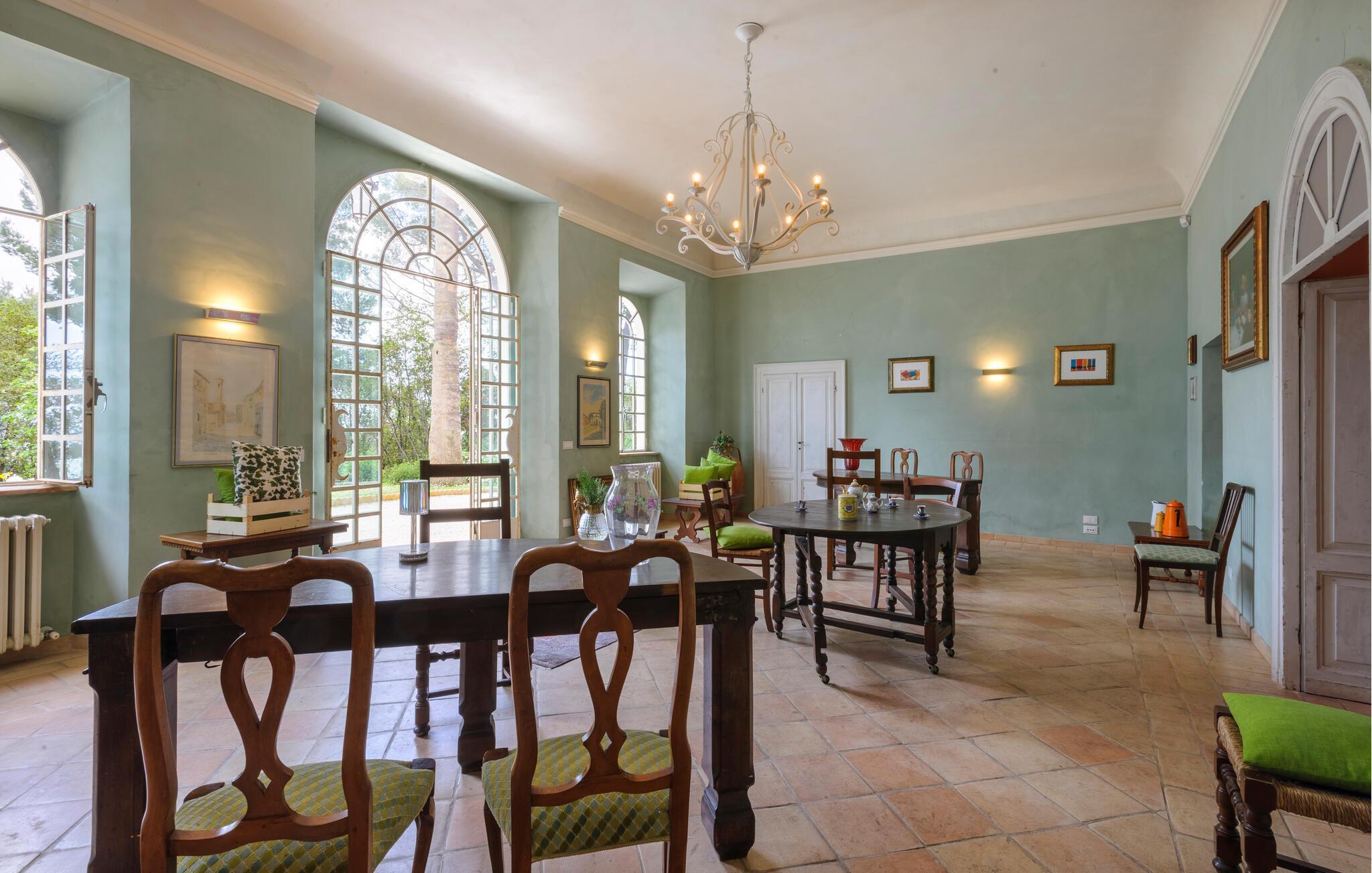 Erleben Sie eine exklusive Auszeit in dieser beeindruckenden Villa. Genießen Sie den Charme vergangener Zeiten kombiniert mit modernem Komfort und verbringen Sie unvergessliche Tage inmitten einer idyllischen Parklandschaft. Treten Sie ein in eine stilvolle Welt voller Eleganz. Es erwartet Sie ein beeindruckendes Ambiente mit hohen Decken, edlen Holzböden und geschmackvollen Antiquitäten. Entspannen Sie im großzügigen Wohnbereich oder lassen Sie sich in der eleganten Küche inspirieren, um kulinarische Köstlichkeiten zuzubereiten. Spielen Sie eine Runde Billard in einem der stilvoll eingerichteten Räume und genießen Sie die besondere Atmosphäre des historischen Gebäudes.