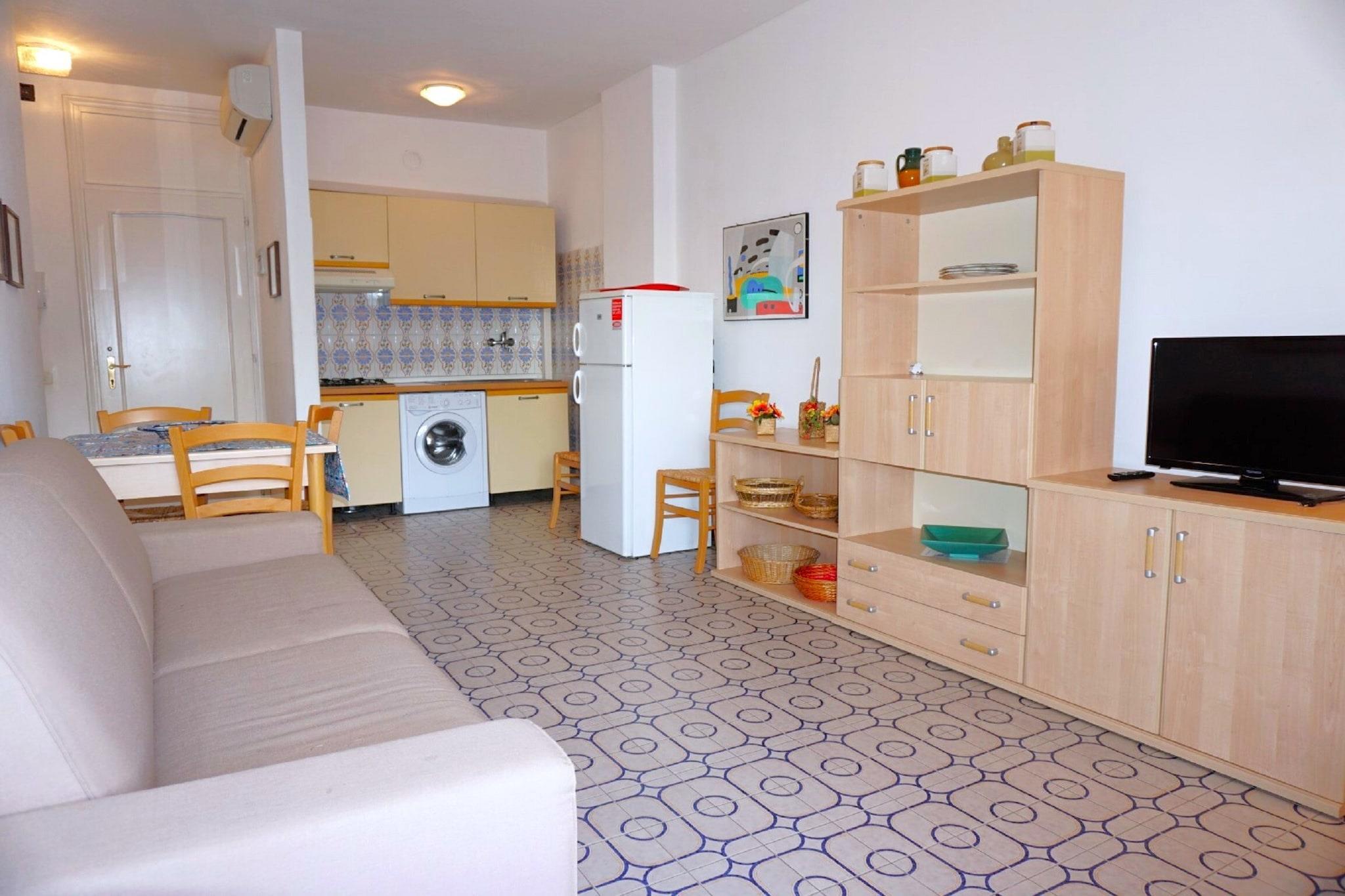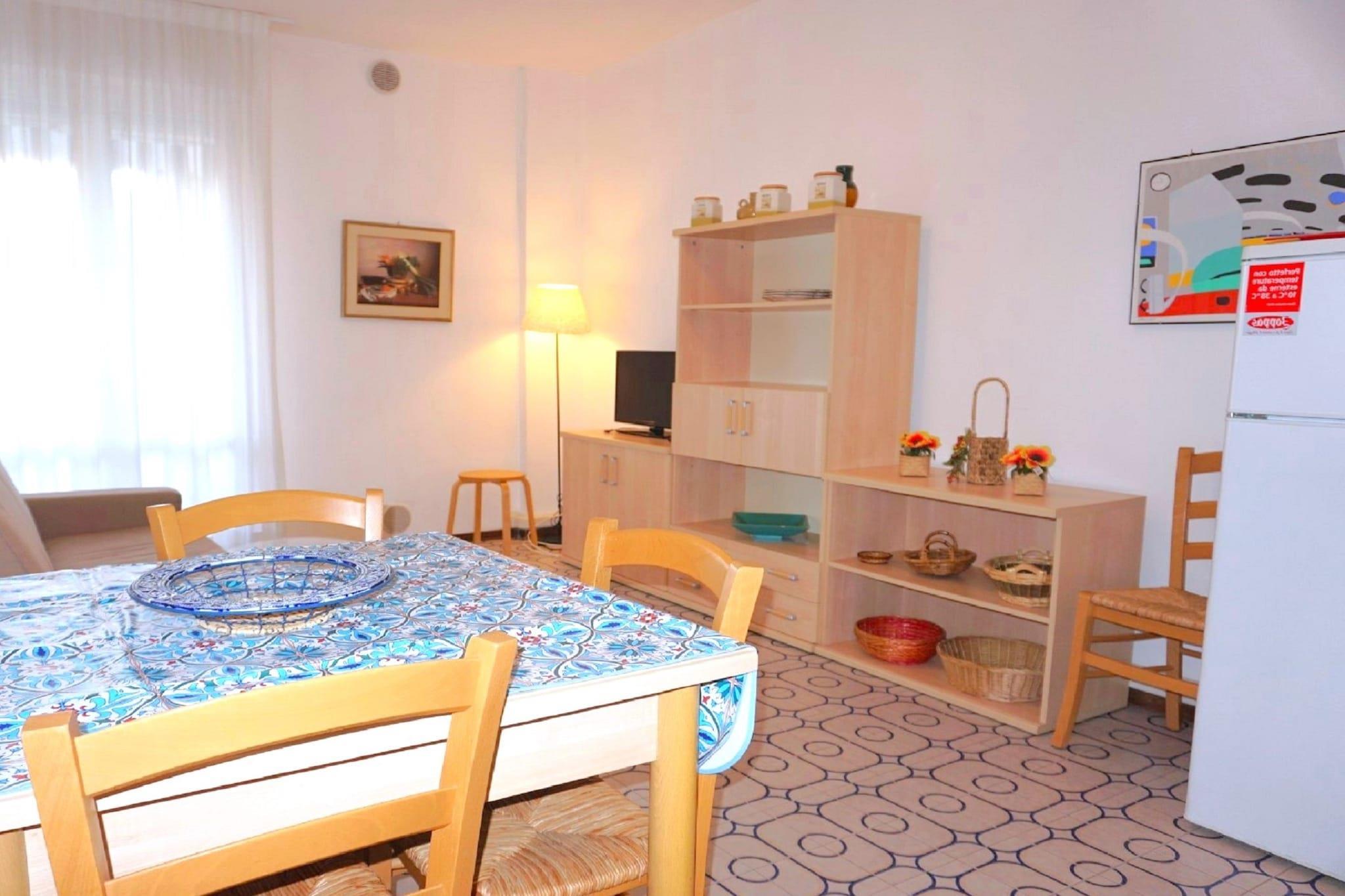Dieses gemütliche Apartment in Porto Santa Margherita (VE) befindet sich im 1. Stock und bietet einen komfortablen Aufenthalt. Das Wohnzimmer verfügt über ein Doppelschlafsofa, einen Fernseher, einen Esstisch und eine Sitzecke, die sich perfekt zum Entspannen eignet. Die offene Küche ist komplett ausgestattet mit Herd, Dunstabzugshaube, Kühlschrank, Waschbecken und Waschmaschine und bietet alles, was Sie zum Zubereiten von Mahlzeiten während Ihres Aufenthalts benötigen. Das Apartment verfügt über ein Schlafzimmer mit einem Einzelbett und einem Doppelbett, ideal für verschiedene Gästekonfigurationen. Das moderne Badezimmer verfügt über eine Dusche, ein Waschbecken, eine Toilette und ein Bidet und sorgt für Komfort während Ihres gesamten Aufenthalts. Eine Klimaanlage hält das Apartment kühl und die private Terrasse bietet einen ruhigen Platz zum Genießen im Freien. Die Gäste haben auch Zugang zum gemeinsamen Garten und Swimmingpool (geöffnet von Mai bis September), ideal zum Entspannen und Genießen der Natur. Parkplätze stehen zu Ihrer Verfügung. Das Apartment befindet sich in der Nähe wunderschöner Strände, lokaler Restaurants und Cafés. Venedig ist nur eine kurze Autofahrt entfernt und bietet reiche Kultur, historische Sehenswürdigkeiten und atemberaubende Kanäle für einen perfekten Tagesausflug.
