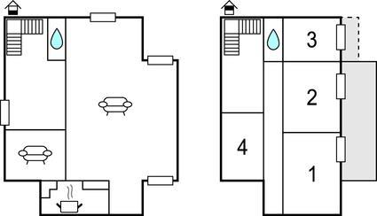 Badezimmer (nr. 1) - WC. Warmes und kaltes Wasser. Dusche