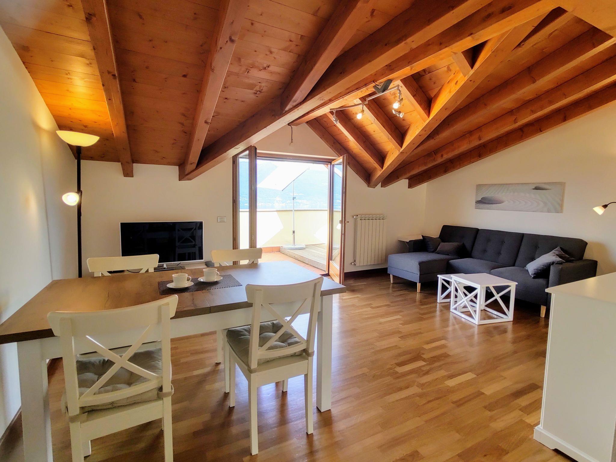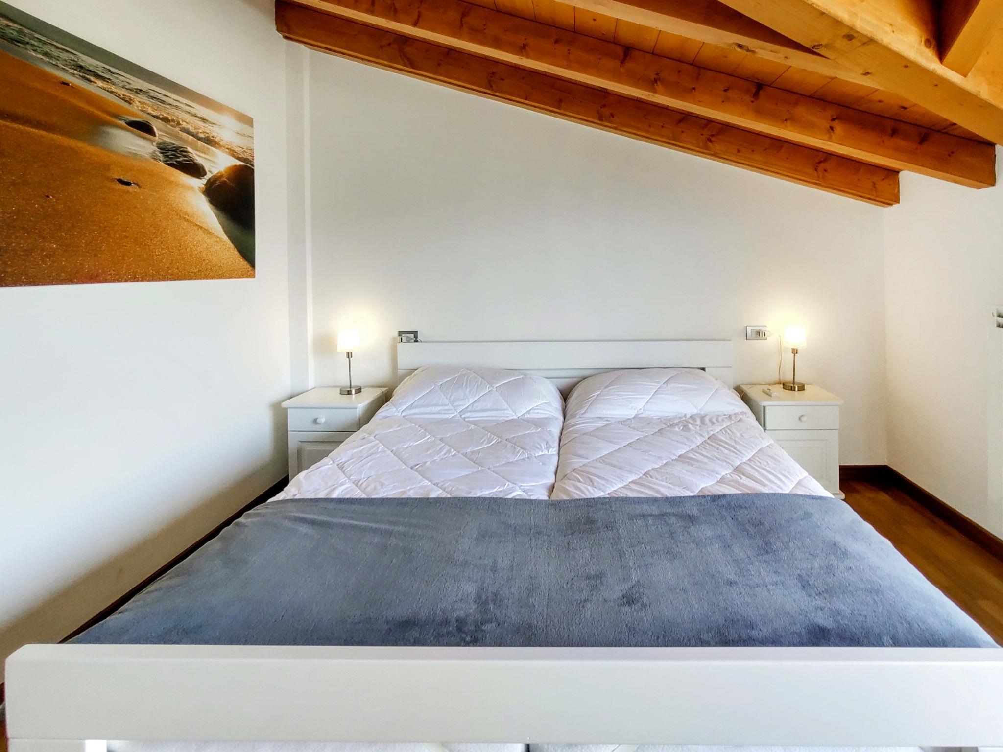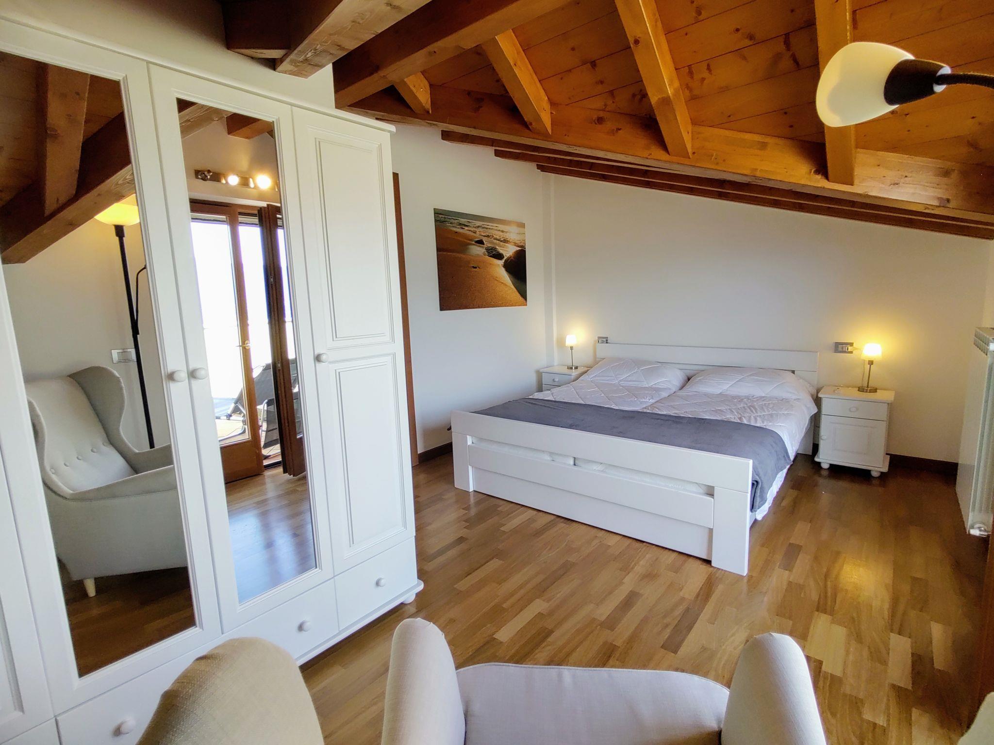 3-Zimmer-Wohnung 75 m2, im Dachgeschoss, Westlage. Hell, teilweise abgeschrägt, modern und stilvoll eingerichtet: Wohn-/Esszimmer mit Esstisch und Sat-TV. Ausgang zum Balkon. 1 Doppelzimmer. Ausgang zum Balkon. 1 Zimmer mit 1 x 2 Etagenbetten. Ausgang zum Balkon. Offene Küche (Backofen, Geschirrspüler, 4 Glaskeramikplatten, Toaster, Wasserkocher, Mikrowelle, elektrische Kaffeemaschine). Bad/WC, Dusche/WC. G-Heizung. Parkettboden. Grosser Balkon 30 m2, kleiner Balkon. Balkonmöbel, Liegestühle (2). Sehr schöne Sicht auf den See. Zur Verfügung: Waschmaschine, Kinderhochstuhl, Babybett. Internet (Wireless LAN, gratis). Parkplatz (1 Auto). Bitte beachten: Nichtraucher-Unterkunft. Maximal 1 kleines Haustier/Hund erlaubt. Eigener Eingang. IT012114C242WP8TXP