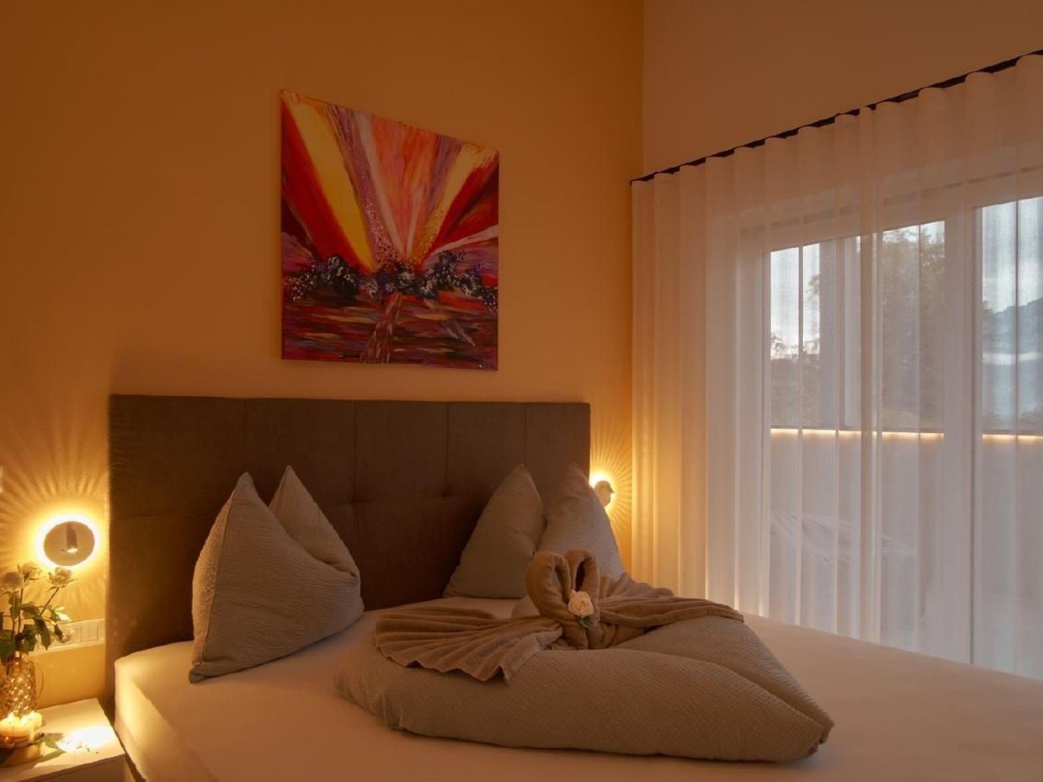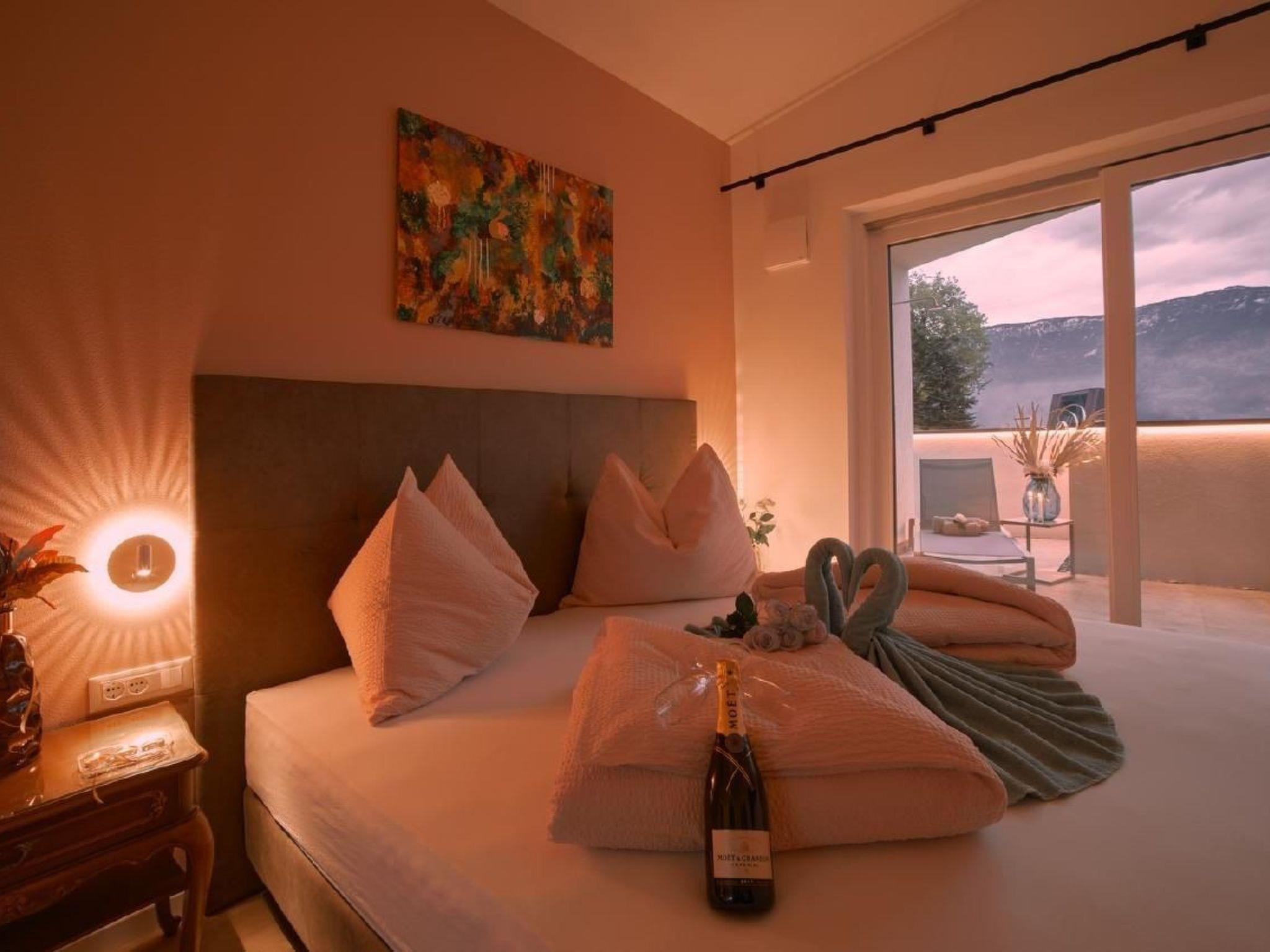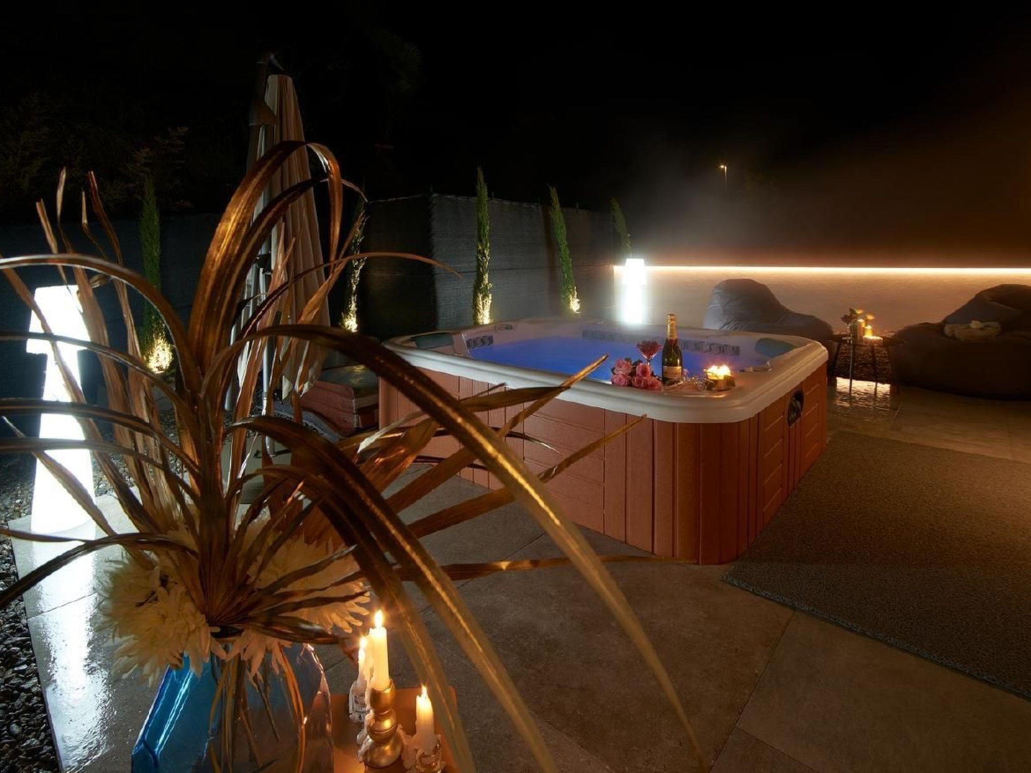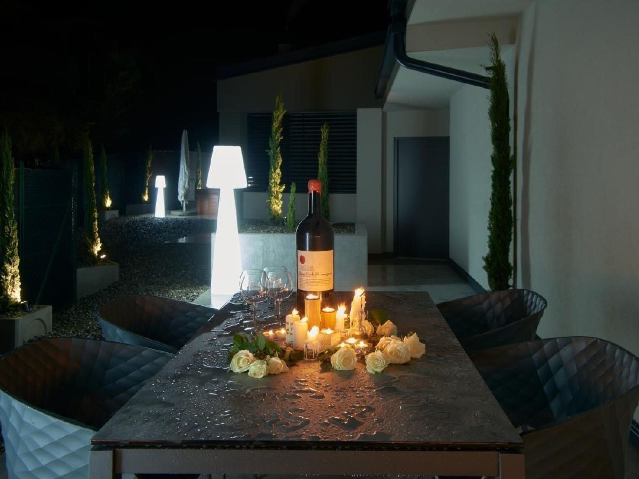 Durch die steile Böschung in dem das Gebäude errichtet wurde, befindet sich auf der Bergseite der Penthouse ein großer Wellnessbereich im Freien mit einem Whirlpool für fünf Personen, verschiedenen Entspannungsmöglichkeiten und einem Grillbereich, in dem die Gäste das ganze Jahr über grillen können.