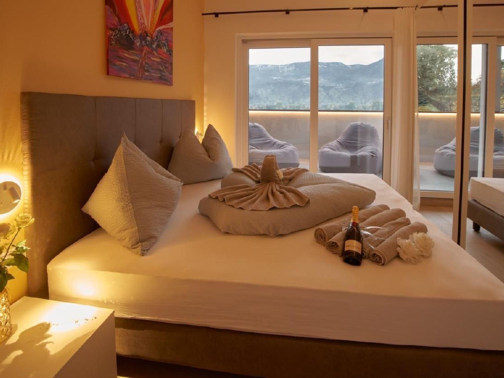 Ein weiterer Outdoorbereich im südlichen Teil des Apartments ist komplett überdacht und verfügt über eine Panoramasauna aus Glas, die einen einzigartigen Blick auf die umliegenden Berge ermöglicht. Mehrere Liegemöglichkeiten mit Außendusche und Sichtschutz biten Ihnen, diesen Bereich in völliger Privatsphäre zu genießen.