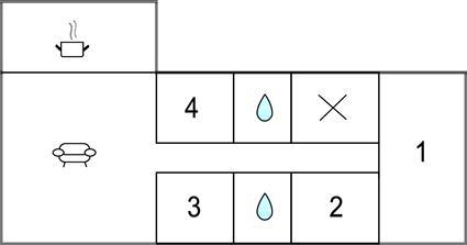 Badezimmer 3m2 (nr. 2) - WC. Warmes und kaltes Wasser. Dusche