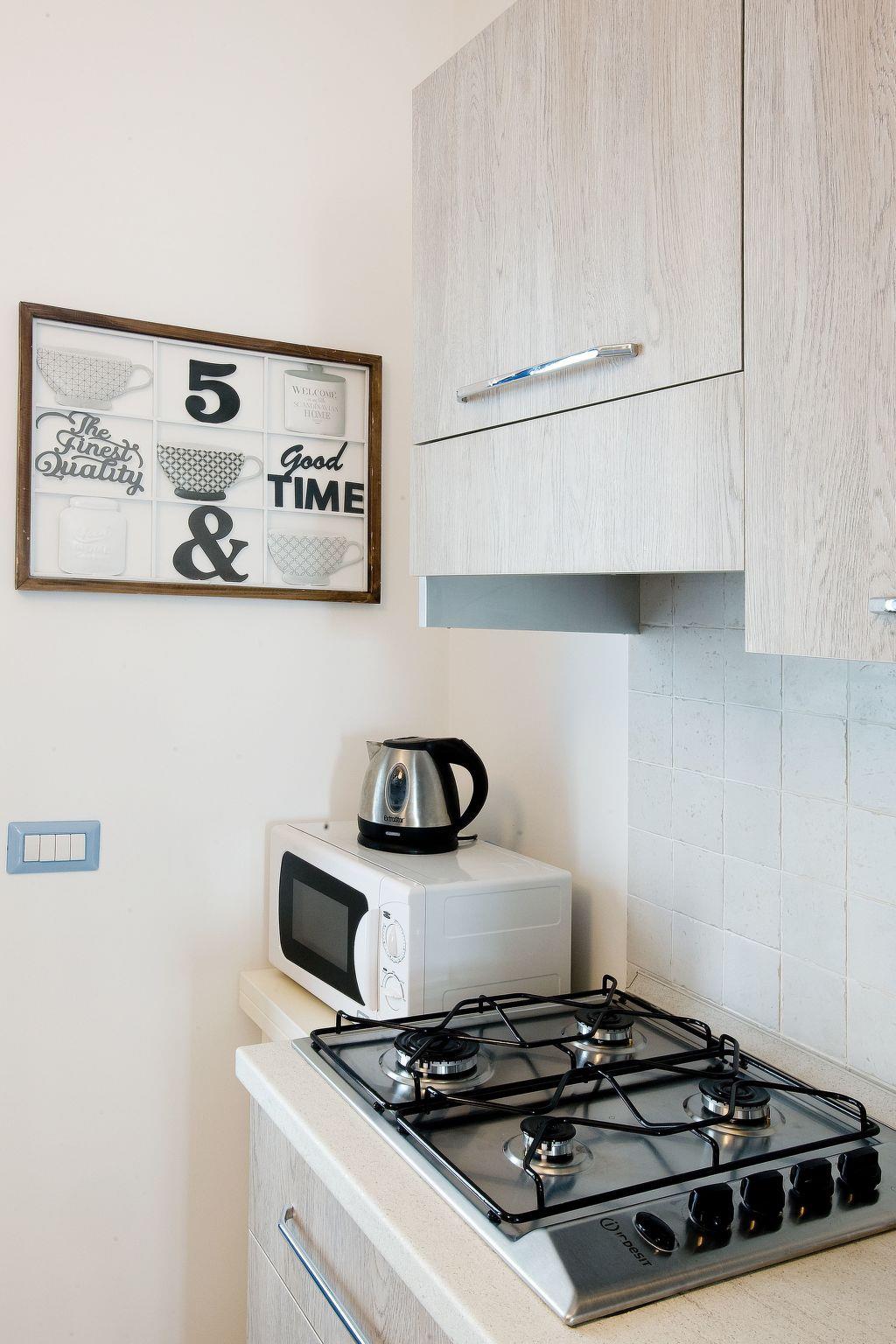 Die Küche mit Kühlschrank, Geschirrspüler, Mikrowelle, Wasserkocher und Kaffeemaschine ist mit allem ausgestattet, was man zum Kochen braucht (Geschirr, Besteck, Gläser, Tassen usw.), außerdem gibt es einen Safe, Telefon, Waschmaschine, Bügelbrett und Bügeleisen.