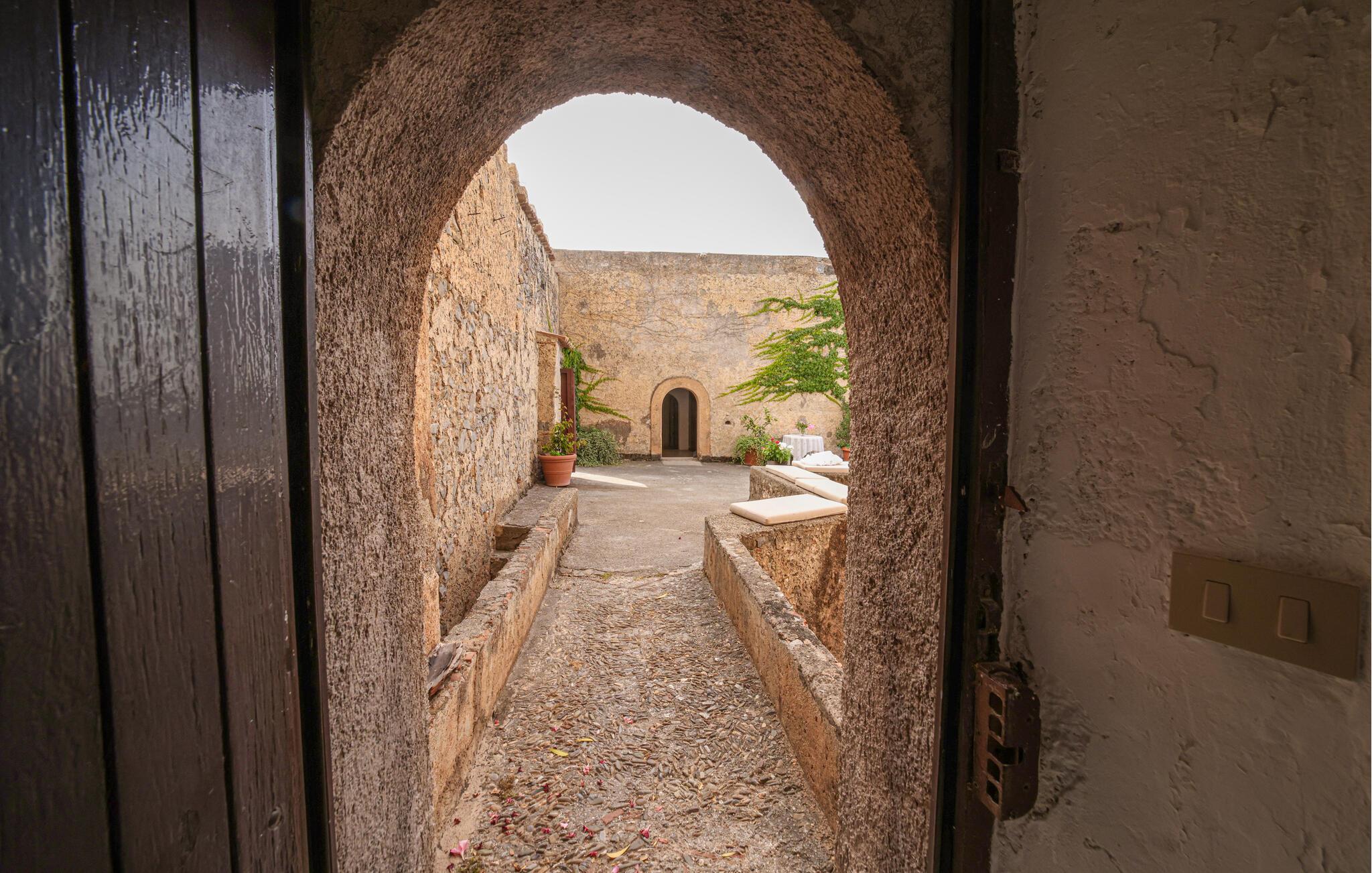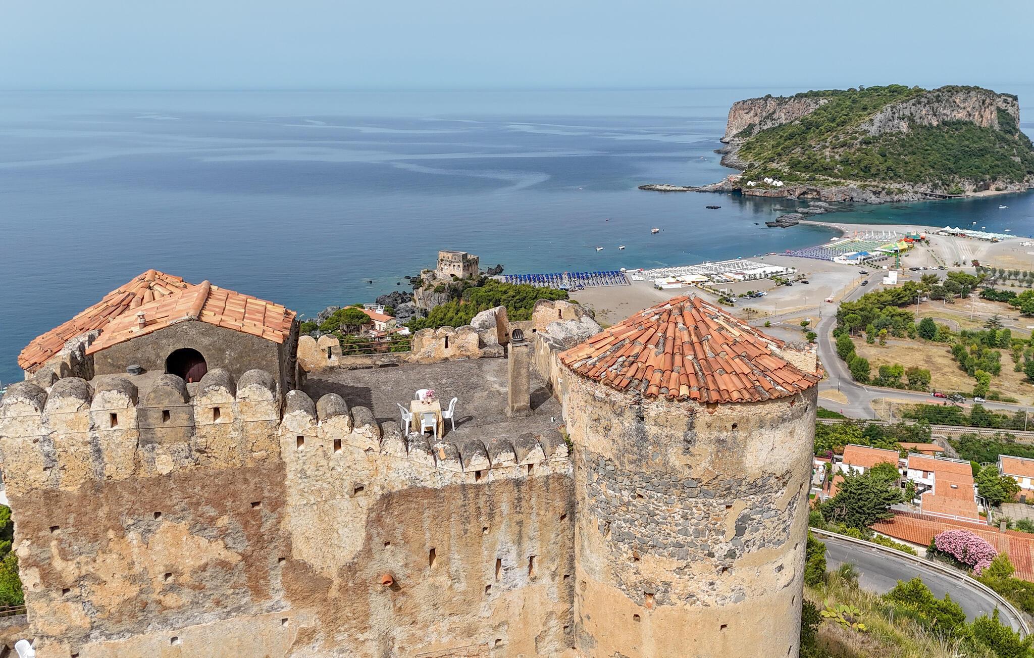 Treten Sie hinaus auf die weitläufige Terrasse, die zum Verweilen im Freien einlädt. Genießen Sie den weiten Blick über die Dächer des Ortes und das schimmernde Meer. Sonnenliegen stehen für entspannte Stunden bereit. Die eindrucksvolle Festungsarchitektur mit ihren alten Mauern und markanten Elementen verleiht dem Aufenthalt einen einzigartigen Charakter.