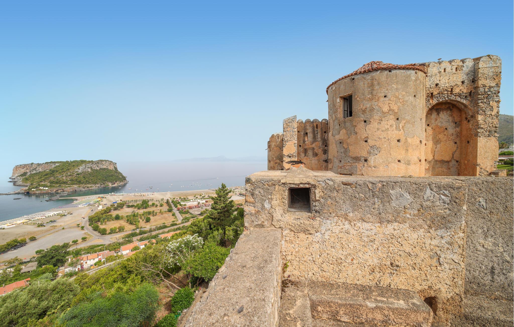 Dieses besondere Ferienobjekt erwartet Sie in einer historischen Festung hoch über dem Meer. Genießen Sie einen Ort, an dem Geschichte spürbar wird und die Aussicht auf das Mittelmeer und die umliegenden Berge unvergleichlich ist. Die Räumlichkeiten sind großzügig und stilvoll eingerichtet. Schlichte Möbel unterstreichen die besondere Atmosphäre, während große Teile des historischen Gebäudes bewahrt wurden. Nutzen Sie die urige Essküche im höhlenähnlichen Keller für gemeinsame Mahlzeiten und machen Sie es sich im Wohnbereich gemütlich.