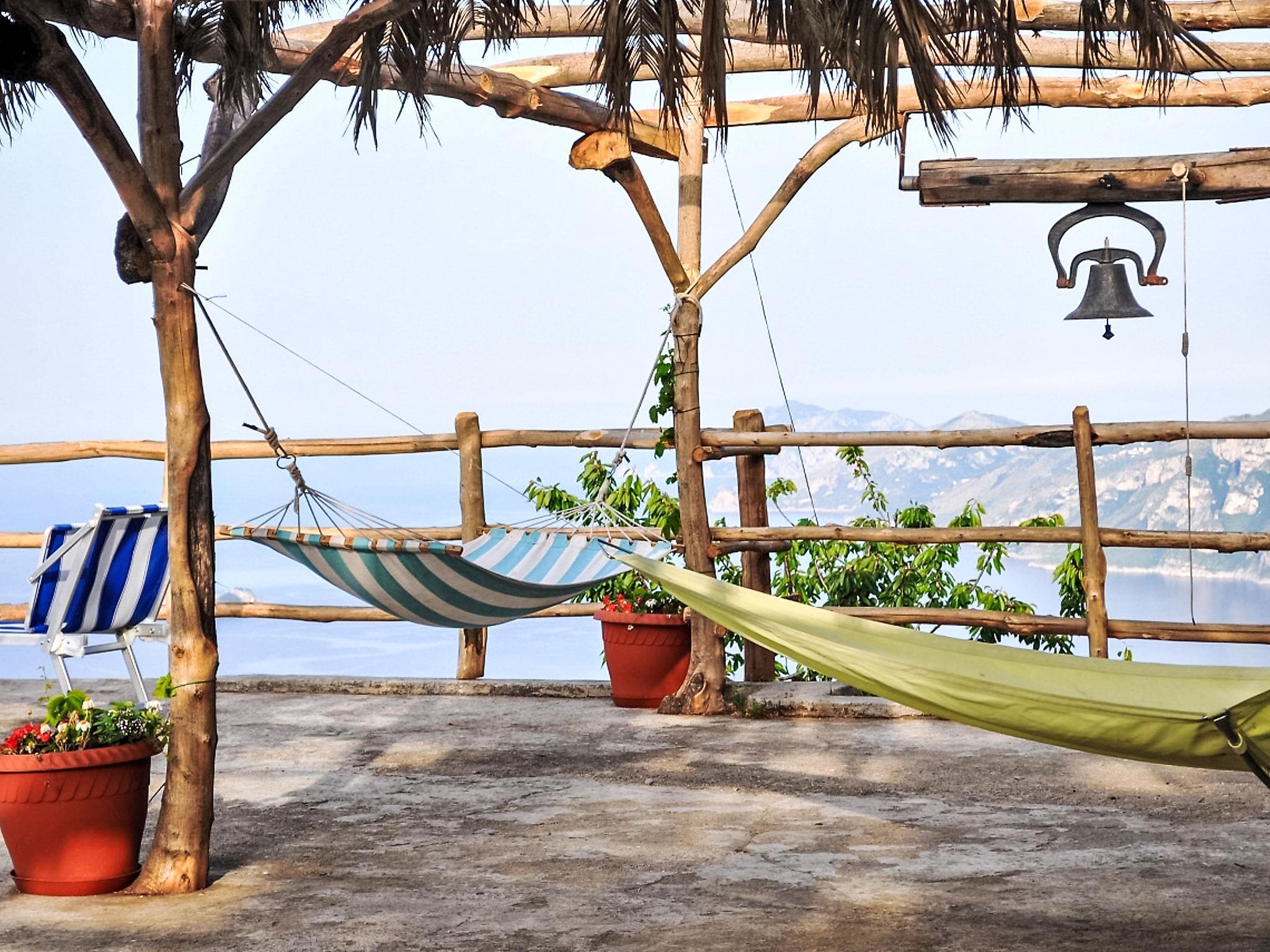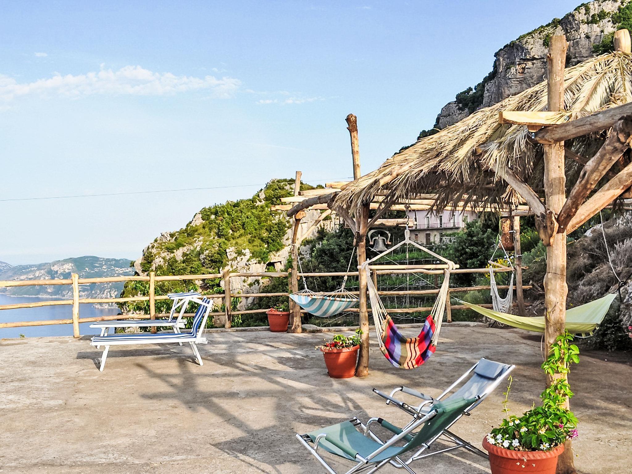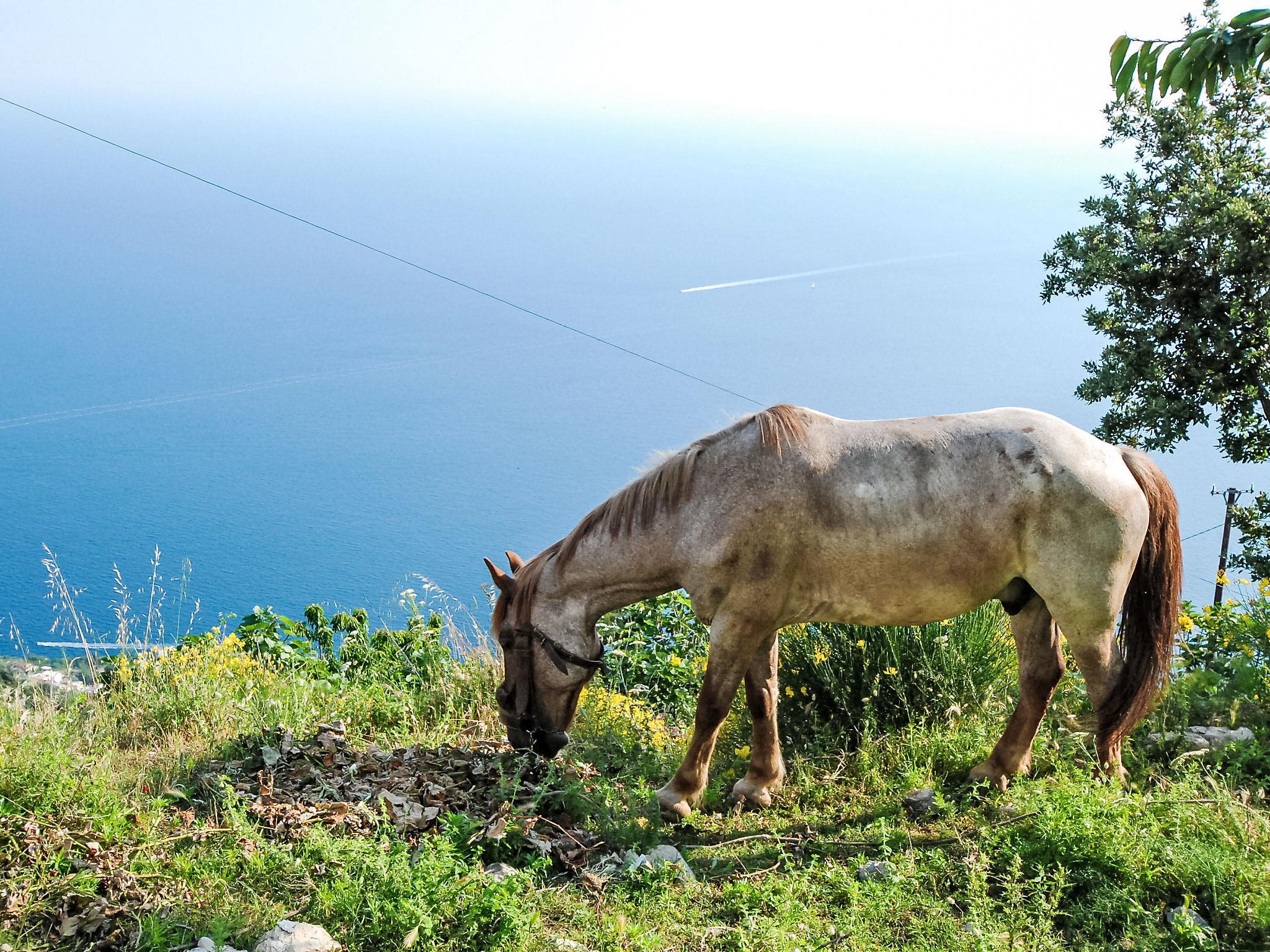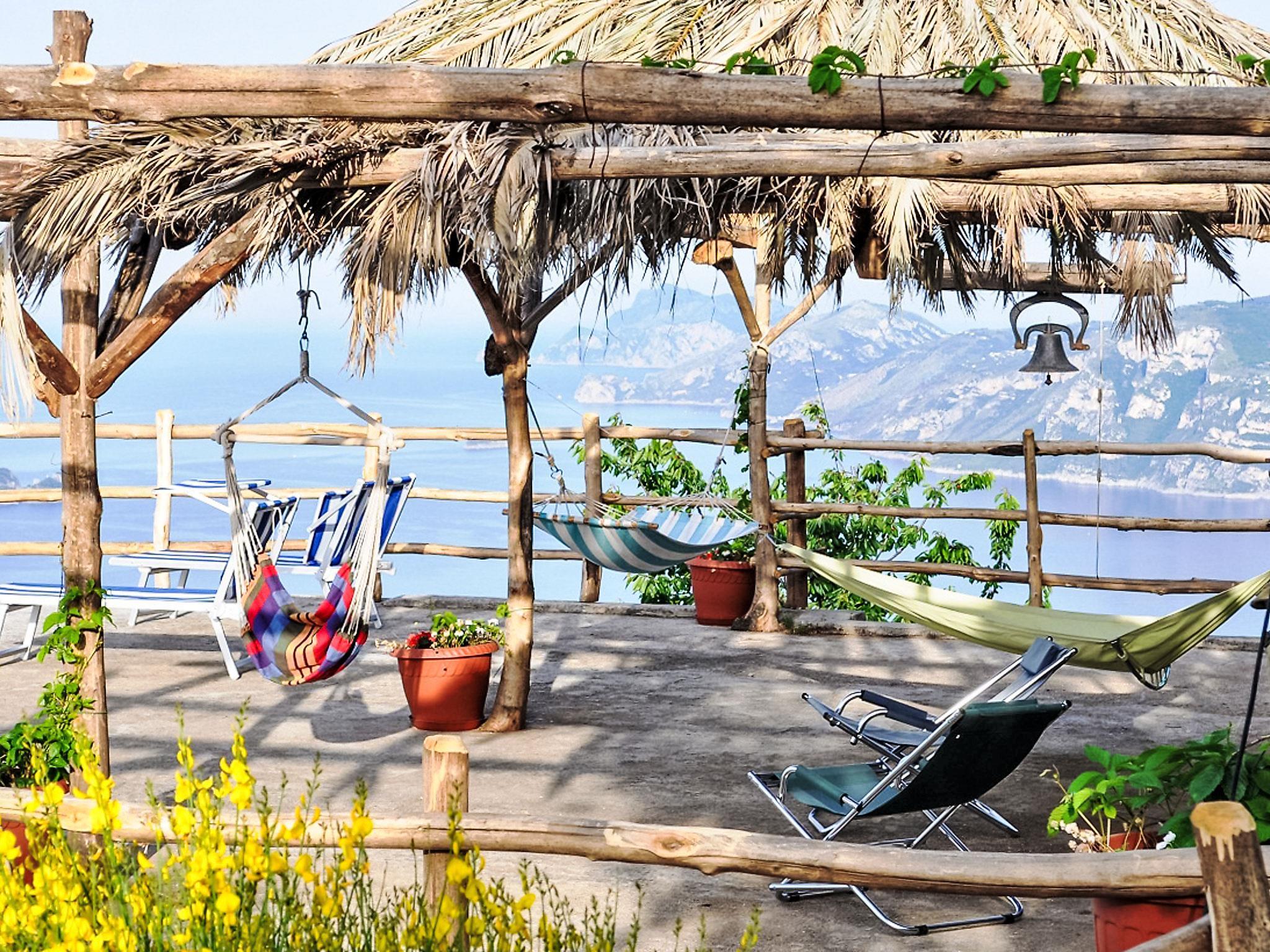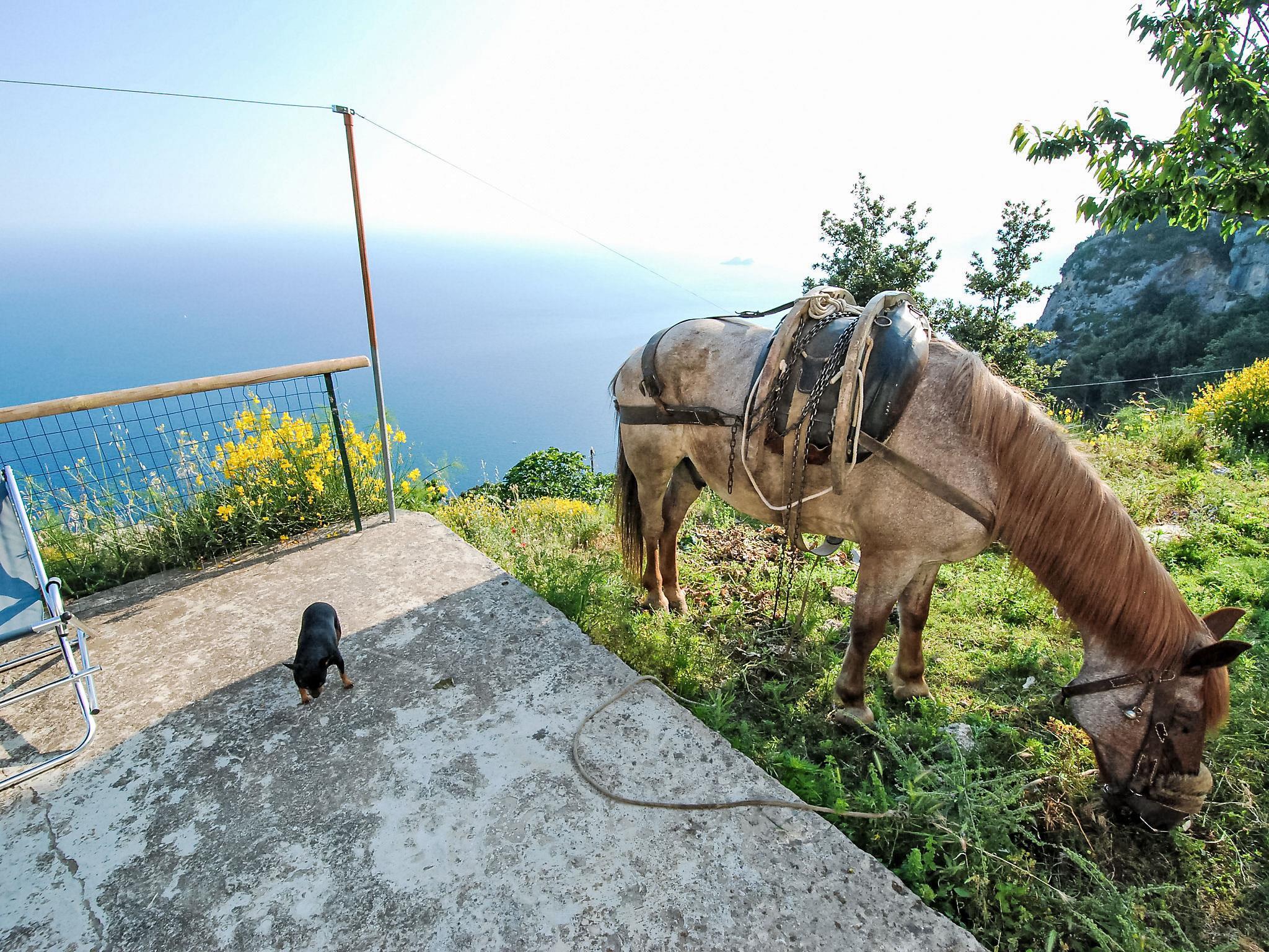 "Dea Afrodite", 3-Zimmer-Haus 80 m2, Südwestlage. Hell, einfach und zweckmässig eingerichtet: 1 Zimmer mit Panoramafenster mit 3 Betten und Klimaanlage. Ausgang zur Terrasse. 1 Zimmer mit 3 Betten und Klimaanlage. Ausgang zur Terrasse. Offenes Esszimmer mit offenem Kamin und TV. Ausgang zum Garten, zur Terrasse. Kochnische (4 Kochplatten, Backofen, Geschirrspüler, Tiefkühler). Dusche/Bidet/WC. Klimaanlage. 2 grosse Terrassen, Gartensitzplatz, Garten. Terrassenmöbel, Gartengrill, Liegestühle. Herrliche Panoramasicht auf das Meer, das Tal, die Landschaft und die Ortschaft. Zur Verfügung: Waschmaschine, Haartrockner. Maximal 1 kleines Haustier/Hund erlaubt. Ideal für Wanderer und Naturfreunde. Die Wohnung kann nur zu Fuss erreicht werden (ca. 1 km, 15 min Gehweg), auf dem berühmten Sentiero degli Dei. Für den Gepäcktransport (hin und zurück, inbegriffen) werden Pferde benutzt. Der Weg ist unbeleuchtet. Den Gästen steht Gemüse und Obst aus dem Garten zur Verfügung. Herrliches Panorama auf das Meer und nach Capri. IT065102C27H95BIJC