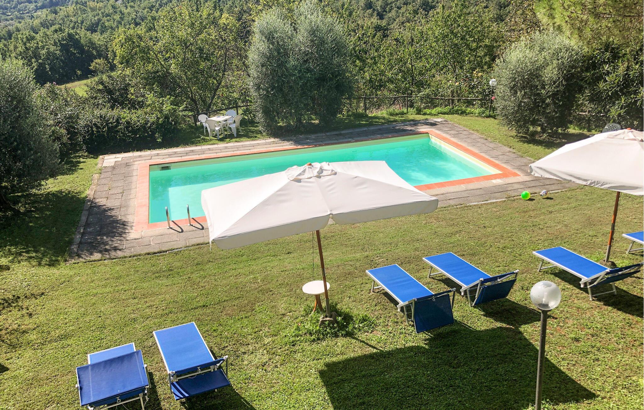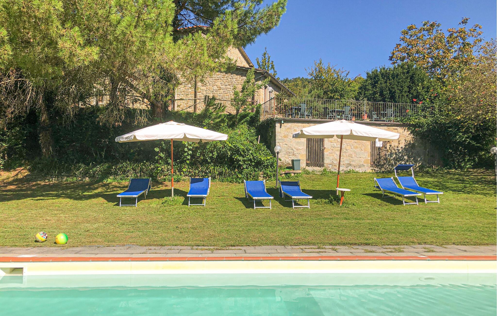 Tanken Sie neue Energie inmitten der toskanischen Landschaft, wo Sie dieses charmante Ferienhaus mit viel Platz, Privatsphäre und authentischem Landhausflair erwartet. Freuen Sie sich auf die warme Atmosphäre der traditionellen Materialien im Innenbereich. Die sichtbaren Holzbalken, der große Kamin und die Möbel mit rustikalem Flair schaffen ein einladendes Ambiente. Entspannen Sie im Wohnzimmer auf den bequemen Möbeln oder verbringen Sie gesellige Abende bei einem Glas Wein.
