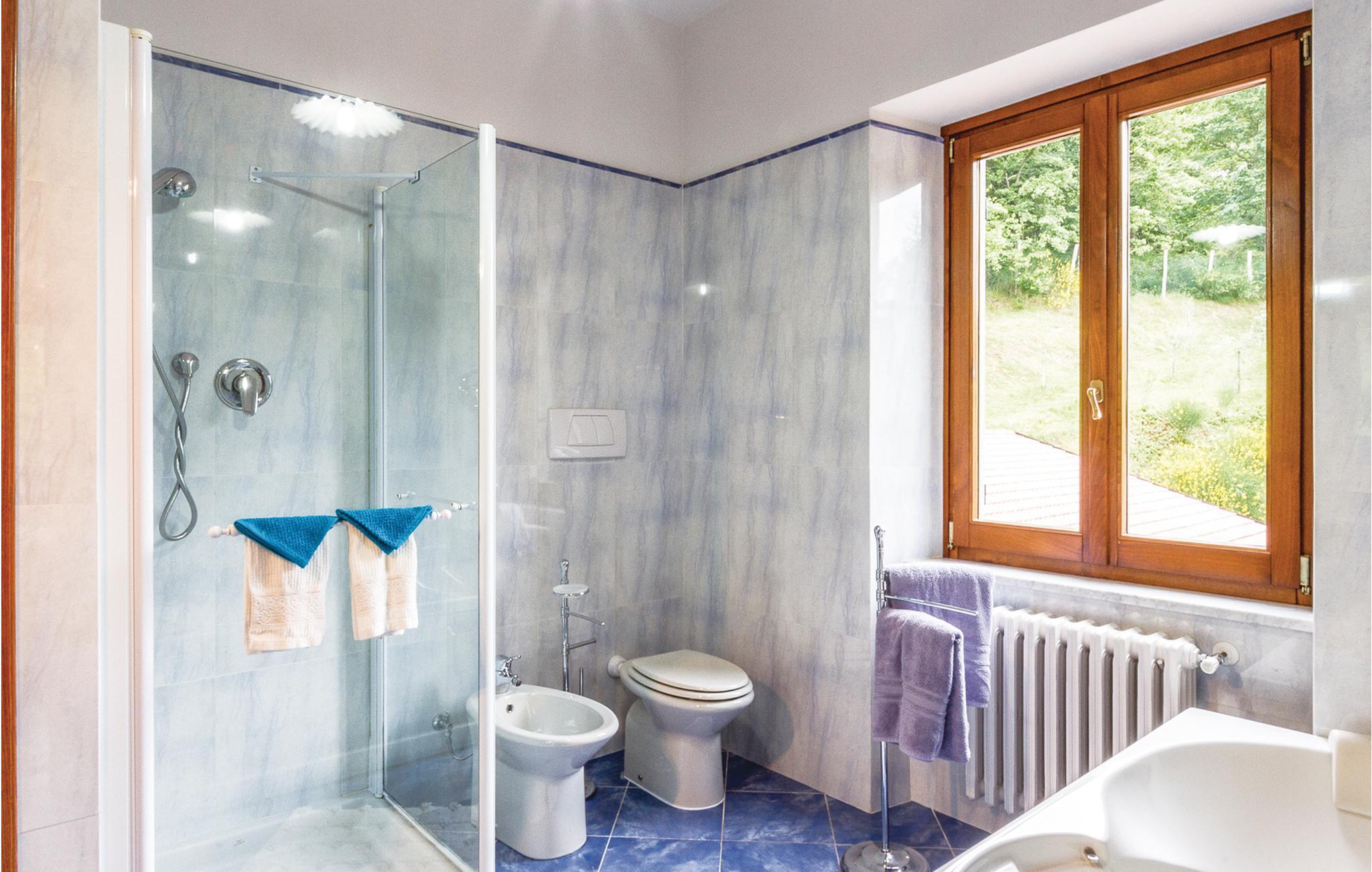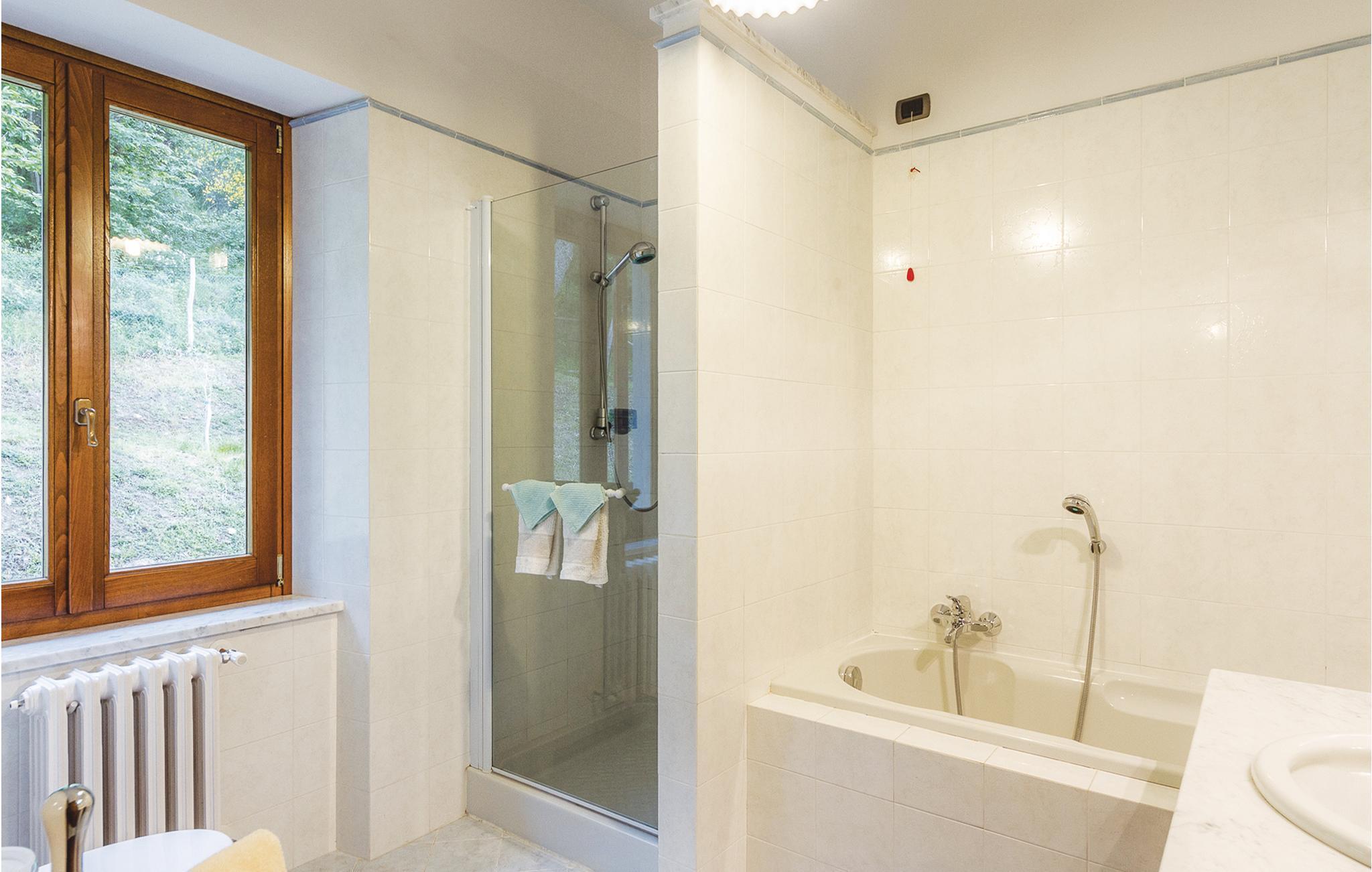 Badezimmer (nr. 2) - WC. Warmes und kaltes Wasser. Dusche und Badewanne