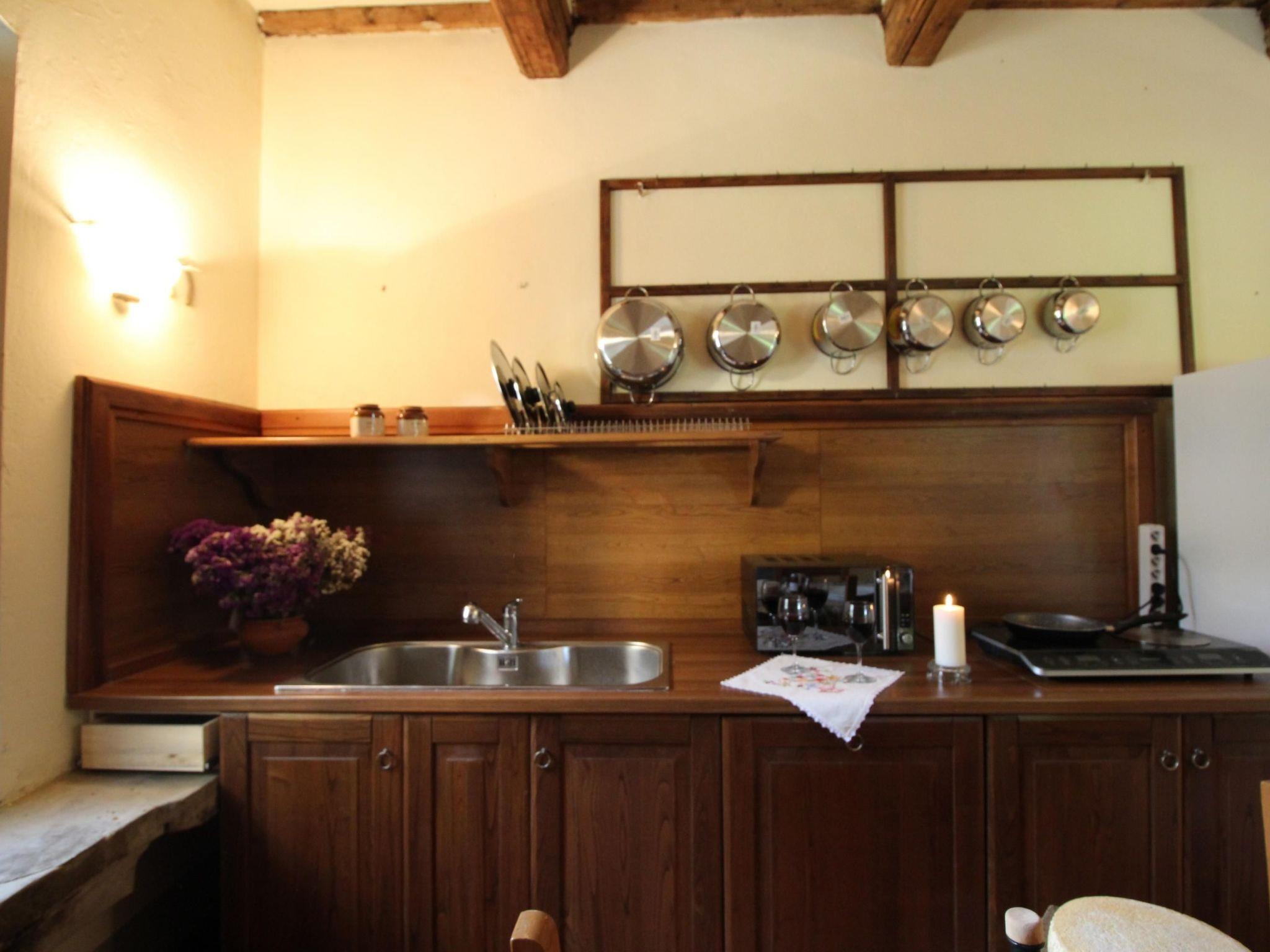 Diese gemütliche 45 qm große Wohnung befindet sich im Erdgeschoss und ist vom Garten aus zugänglich. Sie ist für zwei Personen geeignet. Sie verfügt über eine Küche mit einem 2-Flammen-Induktionskochfeld, einem Kühlschrank und einer Spülmaschine. Im Wohn-/Esszimmer gibt es einen Tisch mit vier Sitzplätzen und einen antiken Kamin mit Waschbecken, der jedoch nur zur Dekoration dient. Es gibt auch ein Schlafzimmer mit Doppelbett und ein Bad mit Dusche.