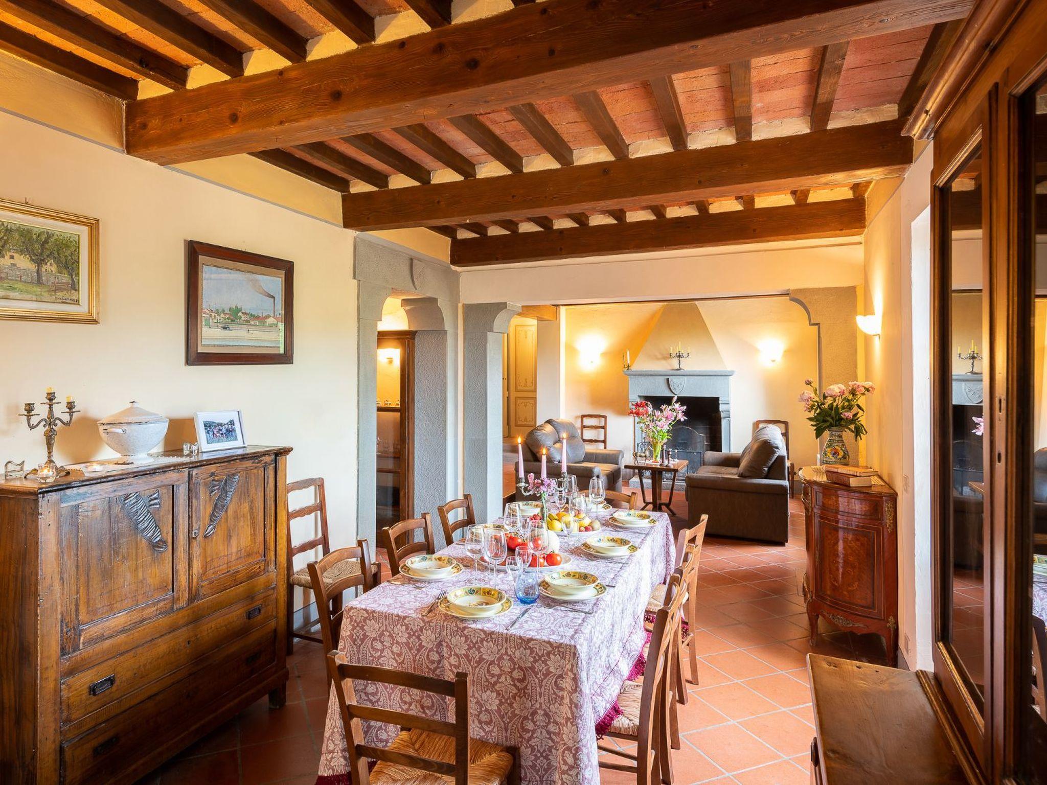 Die Wohnfläche von ca. 300 m² verteilt sich auf zwei Ebenen. Im Erdgeschoss gibt es eine Eingangshalle; ein Wohnzimmer mit Wohnzimmer und Kamin; ein großes Esszimmer, offen zum Wohnzimmer mit Wohnzimmer und Kamin und mit einem Ausgang nach draußen. Im Erdgeschoss gibt es auch eine Küche mit Zugang nach draußen. Die Küche ist mit 4 Herdplatten, Backofen, Geschirrspüler, kleinem Gefrierschrank und einer Kaffeemaschine ausgestattet. Ebenfalls im Erdgeschoss befindet sich ein Schlafzimmer mit einem Doppelbett, mit eigenem Bad mit Dusche und WC, ein zweites Schlafzimmer mit einem Doppelbett, mit eigenem Bad mit Dusche und WC, ebenfalls auf dieser Etage ein Service-Bad. Vom Flur aus führt eine Treppe in den ersten Stock. Gegenüber der Treppe befindet sich ein großes offenes Wohnzimmer mit Balkon; ein Korridor; 4 Doppelschlafzimmer mit 4 en-suite Badezimmern mit Dusche, WC, Waschbecken; 1 Doppelschlafzimmer mit großem Badezimmer mit Badewanne, Dusche, 2 Waschbecken und WC. Bei der Restaurierung des alten Baustils wurden die architektonischen Details hervorgehoben. Die Villa ist mit einigen antiken Möbeln, Terrakottaböden und Holzbalkendecken ausgestattet. Die Villa ist mit Satelliten-TV, Receiver/Cassette/CD-Player ausgestattet. Es gibt eine Waschmaschine in einem separaten Häuschen in der Nähe des Hauses.