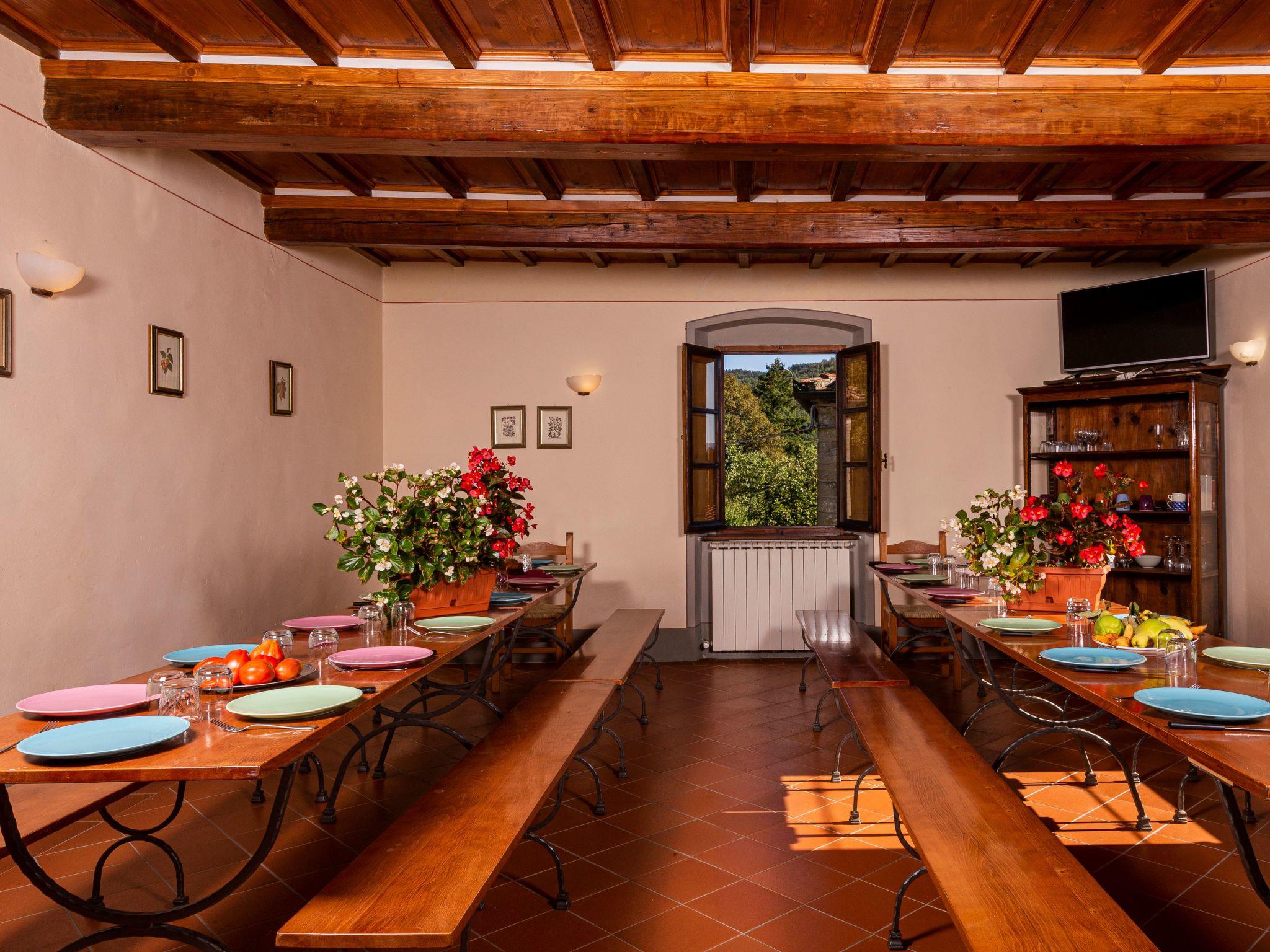 Bei der Renovierung der Villa im Jahr 2003 haben die Dekorationen an den Wänden, die Decken mit Holzbalken und die Terrakottaböden (von denen einige noch die antiken Originalböden sind) ihren früheren Glanz wiedererlangt. Die Villa ist teilweise mit antiken Möbeln eingerichtet. Die Einzelbetten können zu Doppelbetten zusammengeschoben werden. Brot kann auf Anfrage geliefert werden (Montag, Mittwoch, Freitag, Preis hängt von der Bestellung vor Ort ab). Jede Woche erwartet die Gäste eine Überraschung. Die Villa ist ideal für Familientreffen, Freundes- oder Vereinstreffen, Kurse (Malen, Musik, Yoga etc.), Sportvereine und vieles mehr. Es ist auch die perfekte Kulisse für Hochzeiten, da Casalino über eine Kirche verfügt, in der religiöse Trauungen gefeiert werden können, und Poppi über ein wunderschönes mittelalterliches Schloss verfügt, in dem standesamtliche Trauungen gefeiert werden können. Für den Fall, dass die Hochzeitsfeier wetterbedingt nicht im Freien stattfinden kann, besteht die Möglichkeit, die Räume im Untergeschoss (blaue Zone im Exposé) zu nutzen.