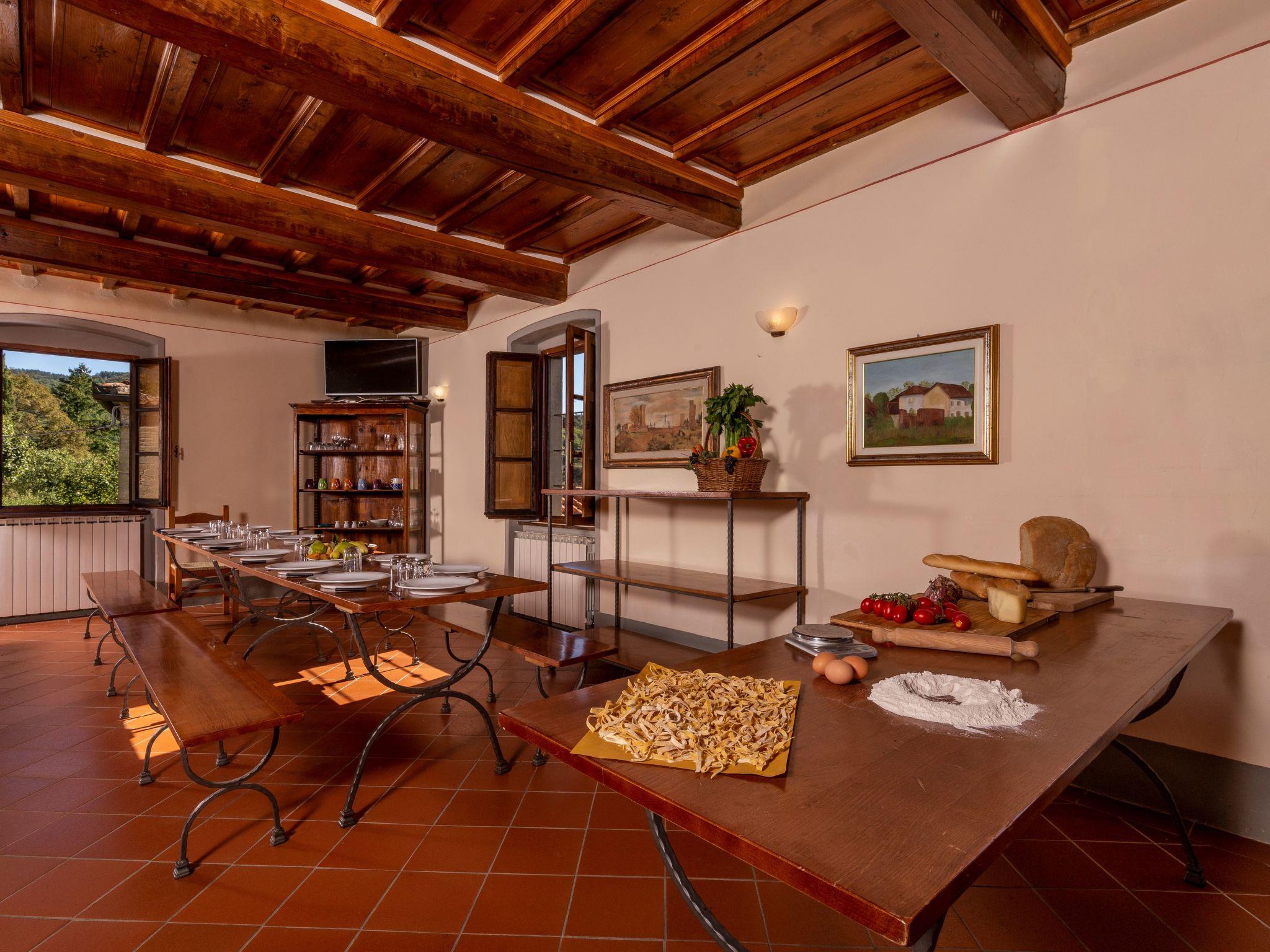 Bei der Renovierung der Villa im Jahr 2003 wurden die Verzierungen an den Wänden, die Decken mit Holzbalken und die Terrakottaböden (die teilweise noch die originalen antiken Böden sind) wieder instand gesetzt. Die Villa ist teilweise mit Antiquitäten eingerichtet. Einzelbetten können zu Doppelbetten zusammengestellt werden. Brot kann auf Wunsch geliefert werden (Montag, Mittwoch, Freitag, Preis je nach Bestellung vor Ort). Jede Woche wartet eine Überraschung auf die Gäste. Die Villa ist ideal für Familientreffen, Treffen von Freunden oder Vereinen, Kurse (Malerei, Musik, Yoga, etc.), Sportvereine und vieles mehr. Es ist auch die perfekte Kulisse für Hochzeiten, da Casalino über eine Kirche verfügt, in der religiöse Hochzeiten gefeiert werden können, und Poppi über eine wunderschöne mittelalterliche Burg, in der standesamtliche Hochzeiten abgehalten werden können. Falls die Hochzeitsfeierlichkeiten aufgrund des schlechten Wetters nicht im Freien stattfinden können, besteht die Möglichkeit, die Räumlichkeiten im Untergeschoss zu nutzen (blauer Bereich im Exposé).