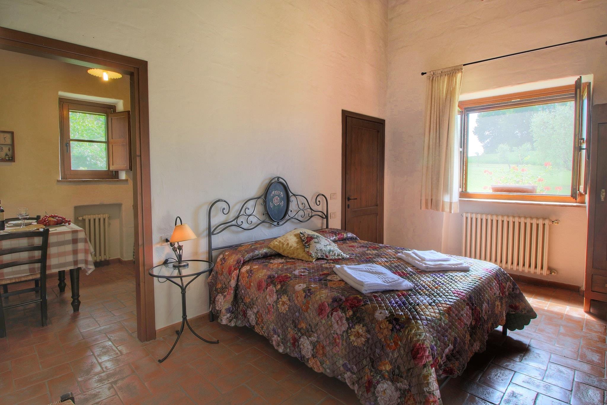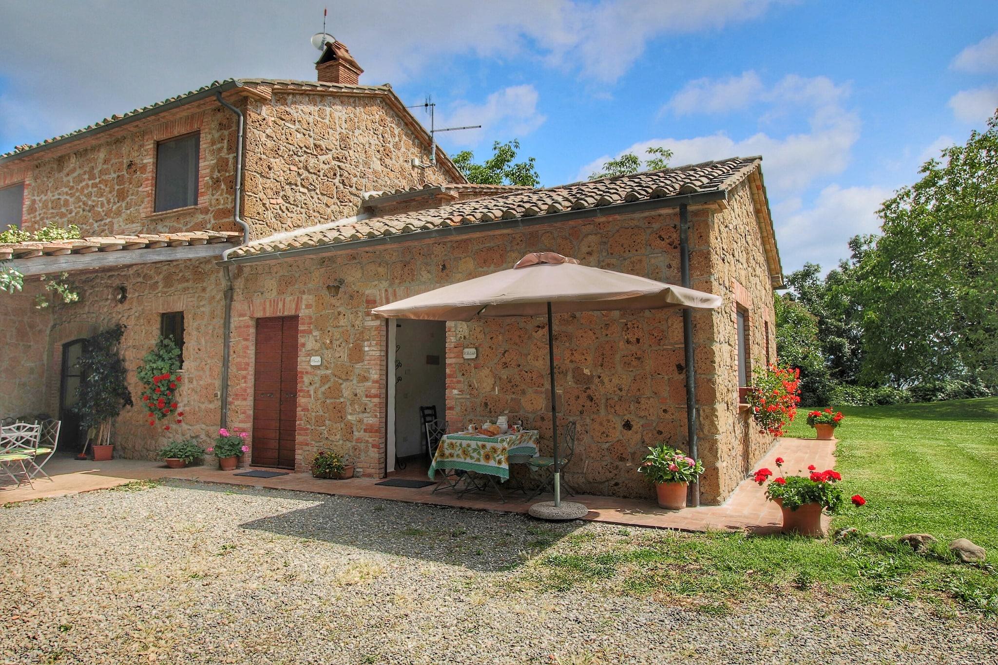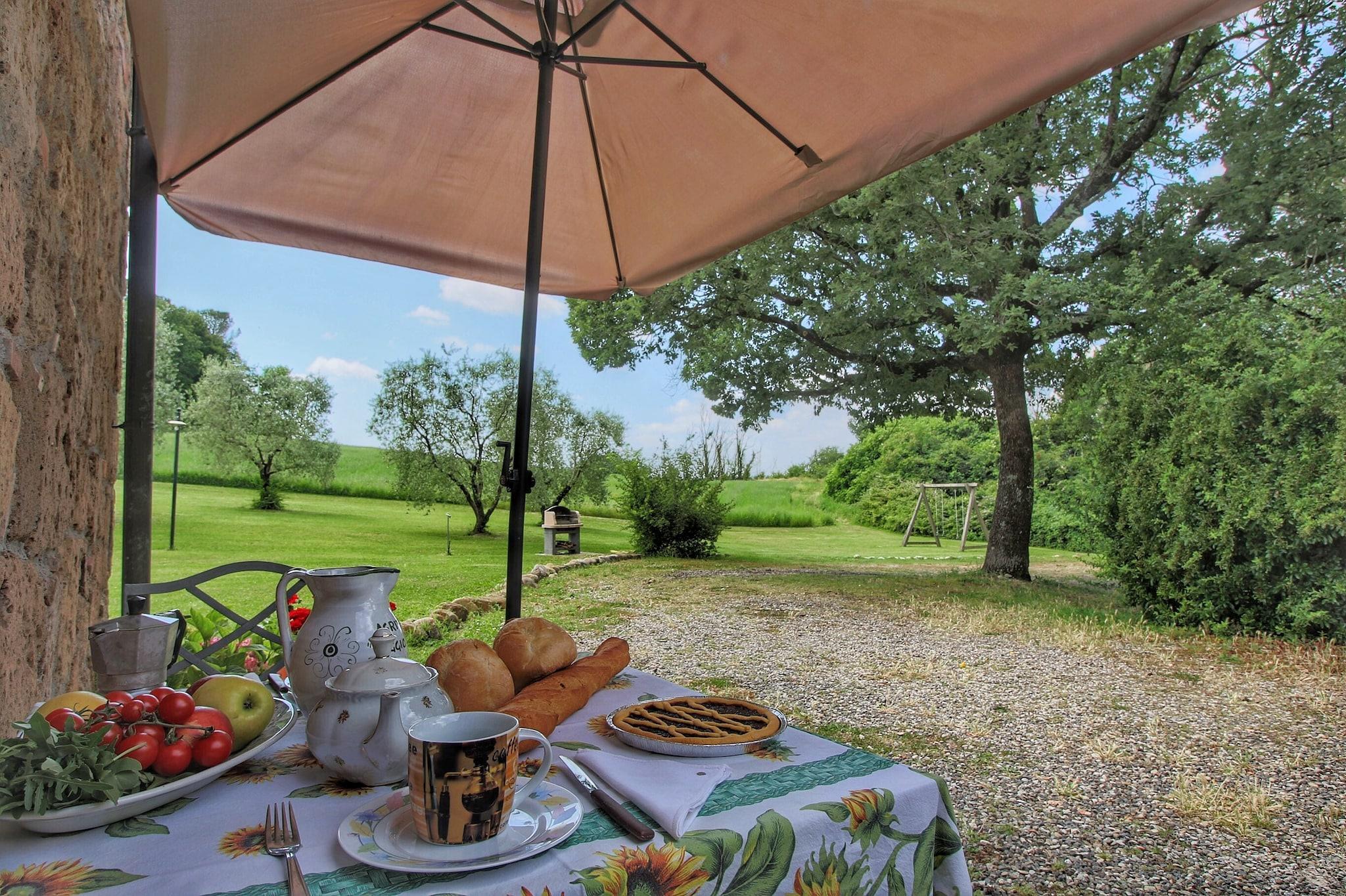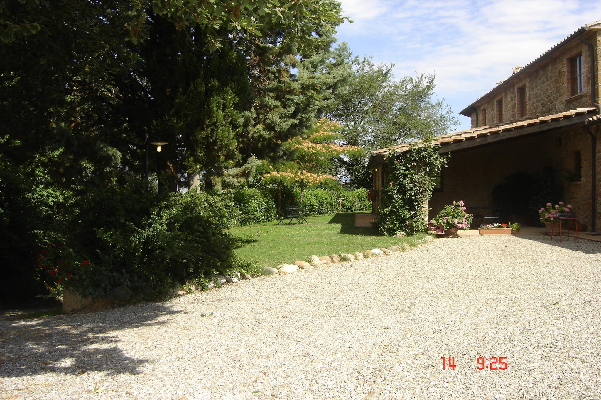 In einem hügeligen Landstrich in der Tuscia, dem Land der alten Etrusker, befindet sich ein rustikaler Ferienbauernhof mit 4 Ferienwohnungen und einem Schwimmbad. Er liegt auf einem Hügel, 420 Meter hoch, mit schöner Aussicht über die Umgebung. Aufgrund der Höhe und des milden Klimas sind die Sommer sehr angenehm und sonnig und mit einer Brise Wind. Es ist ein typischer, rustikaler Bauernhof, der komplett renoviert wurde und modern ausgestattet ist. Der landwirtschaftliche Betrieb beschäftigt sich mit dem Anbau von Weizen, Sonnenblumen und Mais. Zudem gibt es Kühe, die sie im Tal grasen sehen können. Der Ferienbauernhof ist von einem großen Garten mit Pflanzen und Blumen umgeben. Es ist ein idealer, ruhiger Ort, um Urlaub in der Natur zu machen. Vielleicht werden Sie vom Gezwitscher der Vögel und dem Zirpen der Grillen geweckt. Nahe am Haus befindet sich der Panorama-Pool und die Sonnenterrasse mit Aussicht über den Fluss Paglia und die umliegenden Hügel. In der Nähe gibt es einen Reitstall, einen Tennisplatz und ein Fußballfeld. Der Hauseigentümer kann Ihnen hierzu nähere Informationen geben.