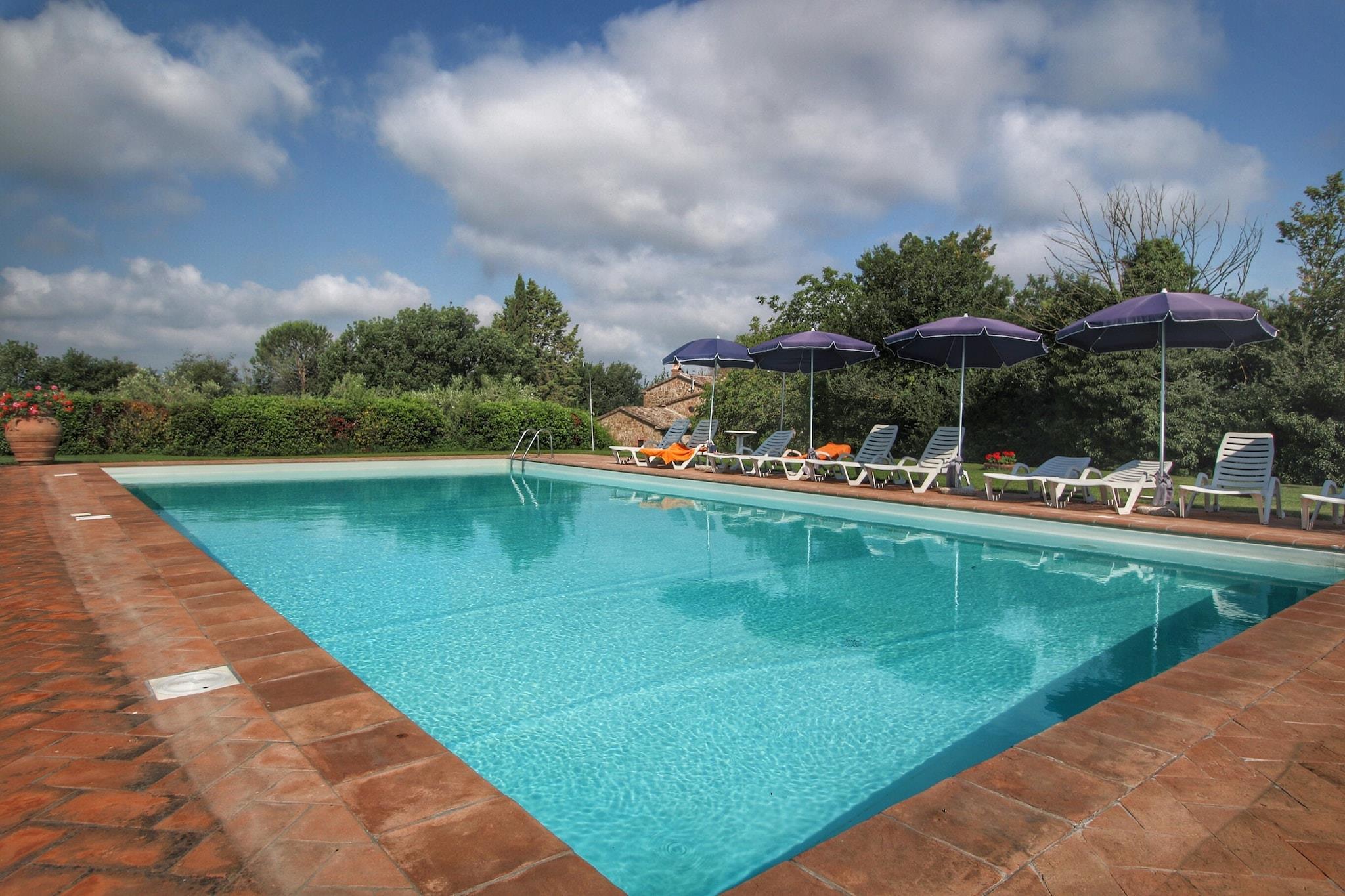 Eingebettet in die malerische Landschaft von Proceno bietet dieses haustierfreundliche Bauernhaus für 18 Gäste eine perfekte Mischung aus rustikalem Charme und modernem Komfort. Mit kostenlosem WLAN, einem über 1.000 m² großen privaten Garten und einem großen privaten Pool (15 x 7 m, geöffnet von Mai bis September) ist dieser Rückzugsort ideal für große Versammlungen und ruhige Kurzurlaube. Ob Sie auf der privaten Terrasse entspannen oder die Wärme des Kamins genießen – dieses Bauernhaus garantiert einen unvergesslichen Aufenthalt. Das Erdgeschoss verfügt über mehrere Wohn- und Esszimmer mit Fernsehern, Esstischen und Kaminen sowie eine voll ausgestattete Küche mit Holzherd, Backofen, Geschirrspüler und Kühl-Gefrierkombination. Zusätzliche offene Küchen sorgen für zusätzlichen Komfort. Das Haus bietet fünf Schlafzimmer mit jeweils eigenem Bad und einer Mischung aus Doppelbetten, Einzelbetten und Etagenbetten, sodass ausreichend Platz für alle Gäste vorhanden ist. Den Gästen stehen außerdem eine gemeinschaftlich genutzte Waschmaschine, Gartenmöbel, Grillmöglichkeiten, Parkplätze und ein Bügeleisen zur Verfügung – ein idealer Ort zum Entspannen und für Unterhaltung. Der nahe gelegene Bosco del Sasseto bietet bezaubernde Waldwege, während die Kathedrale von Acquapendente mit ihrer beeindruckenden Architektur beeindruckt. Die Monti Volsini bieten atemberaubende Ausblicke, und das Große Bad in San Casciano dei Bagni bietet erholsames Thermalwasser. Zum Essen serviert die Osteria Enoteca Il Beccofino exquisite italienische Küche, während das Civico eine gemütliche Atmosphäre bietet. Ob Sie kulturelle Sehenswürdigkeiten erkunden oder lokale Spezialitäten genießen möchten Aromen ist dieses Bauernhaus der perfekte Rückzugsort für Proceno.