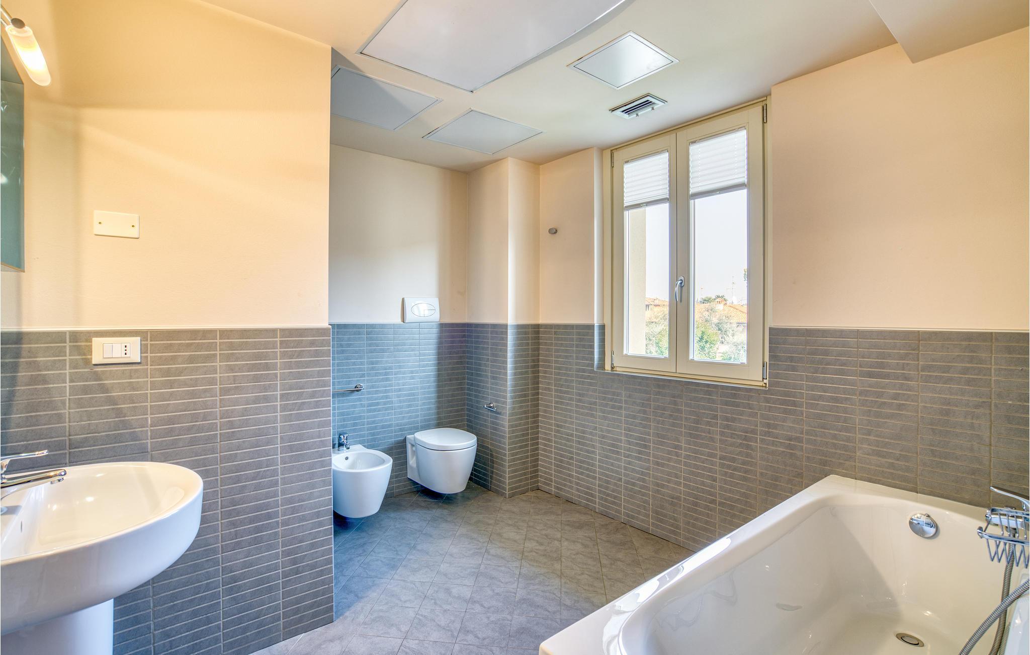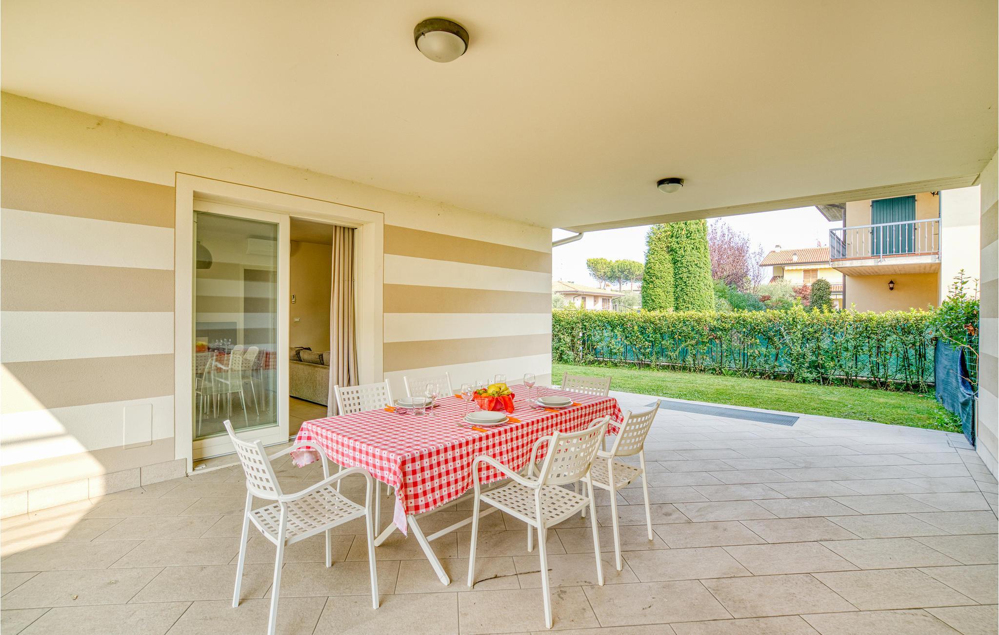 Wenn Sie auf der Suche nach Entspannung und Genießen im Norditalien sind, wäre diese Ferienwohnung vielleicht etwas für Sie. Unweit vom südwestlichen Ufer des Gardasees gelegen bietet diese Wohnung Ihnen einen idealen Ort für eine entspannende und ruhige Zeit für Sie und Ihre Familie. Die geräumige, zweistöckige Wohnung ist in hellen Farben eingerichtet und eines der Badezimmer hat Badewanne. Vom Wohnzimmer aus gelangen Sie auf die Terrasse, wo Sie am Esstisch auf der kleinen Terrasse gemeinsam frühstücken können. Auf der ersten Etage haben Sie außerdem Zugang zu einem Balkon. Zum Haus gehören ein eingezäunter Garten und einer gemeinsame Außenpool, wo Sie ins Wasser springen oder sich nebenan auf den Liegestühlen entspannen können.