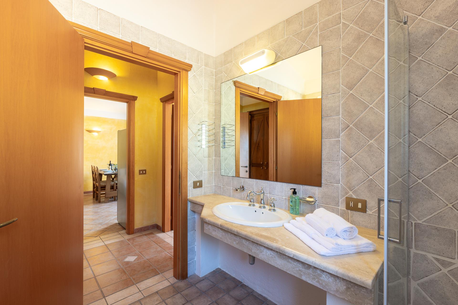 Die Residence ist ideal für Familien, Paare oder Gruppen von Freunden und liegt nur 250 Meter vom Sandstrand Cala Brianza, 3 km von Pula und etwa 40 km vom Hafen und Flughafen von Cagliari entfernt.