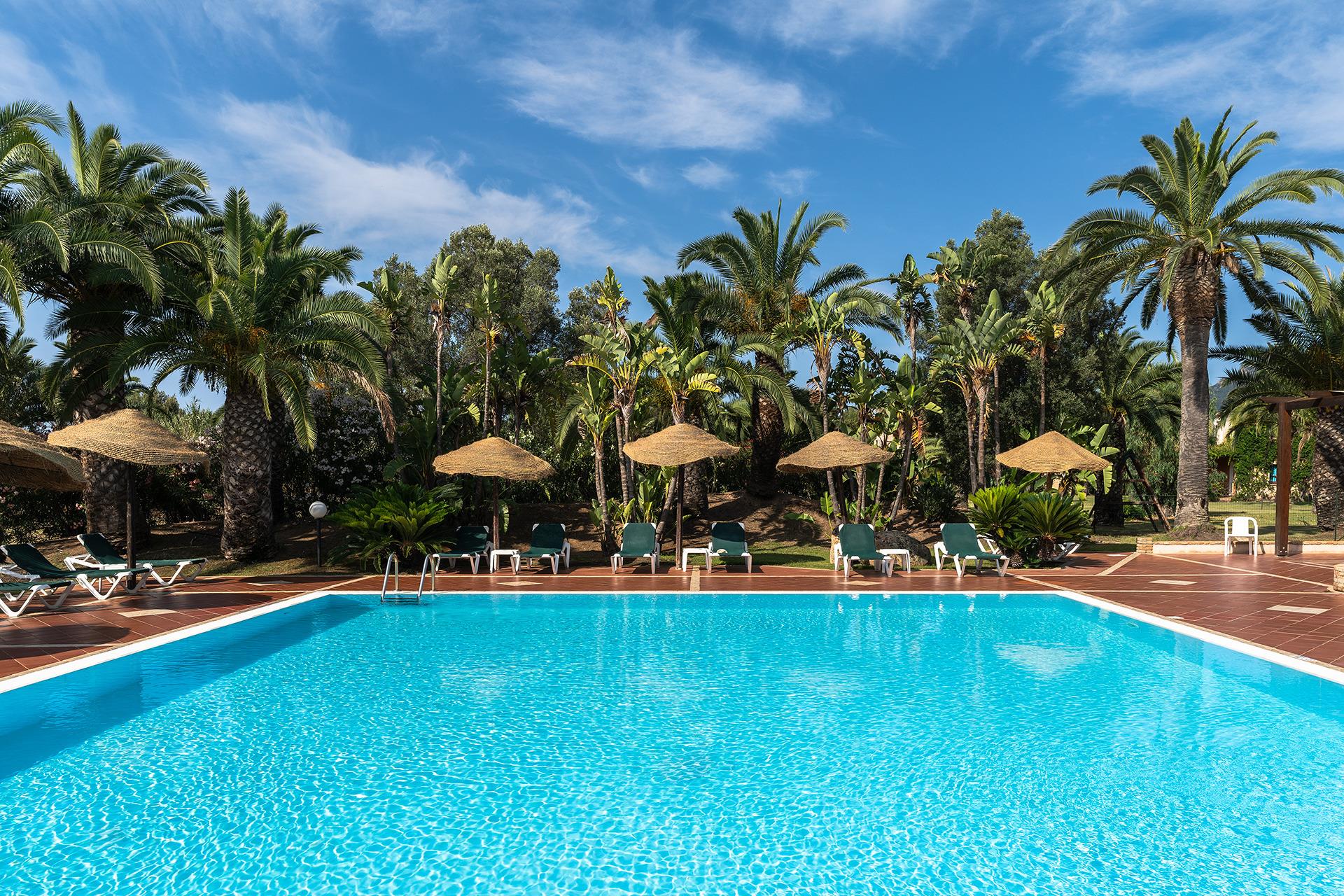 Tauchen Sie ein in die Ruhe unserer Baia delle Palme Residence, einem exklusiven Rückzugsort inmitten eines grünen Parks, umgeben von einem dichten Pinienwald.
