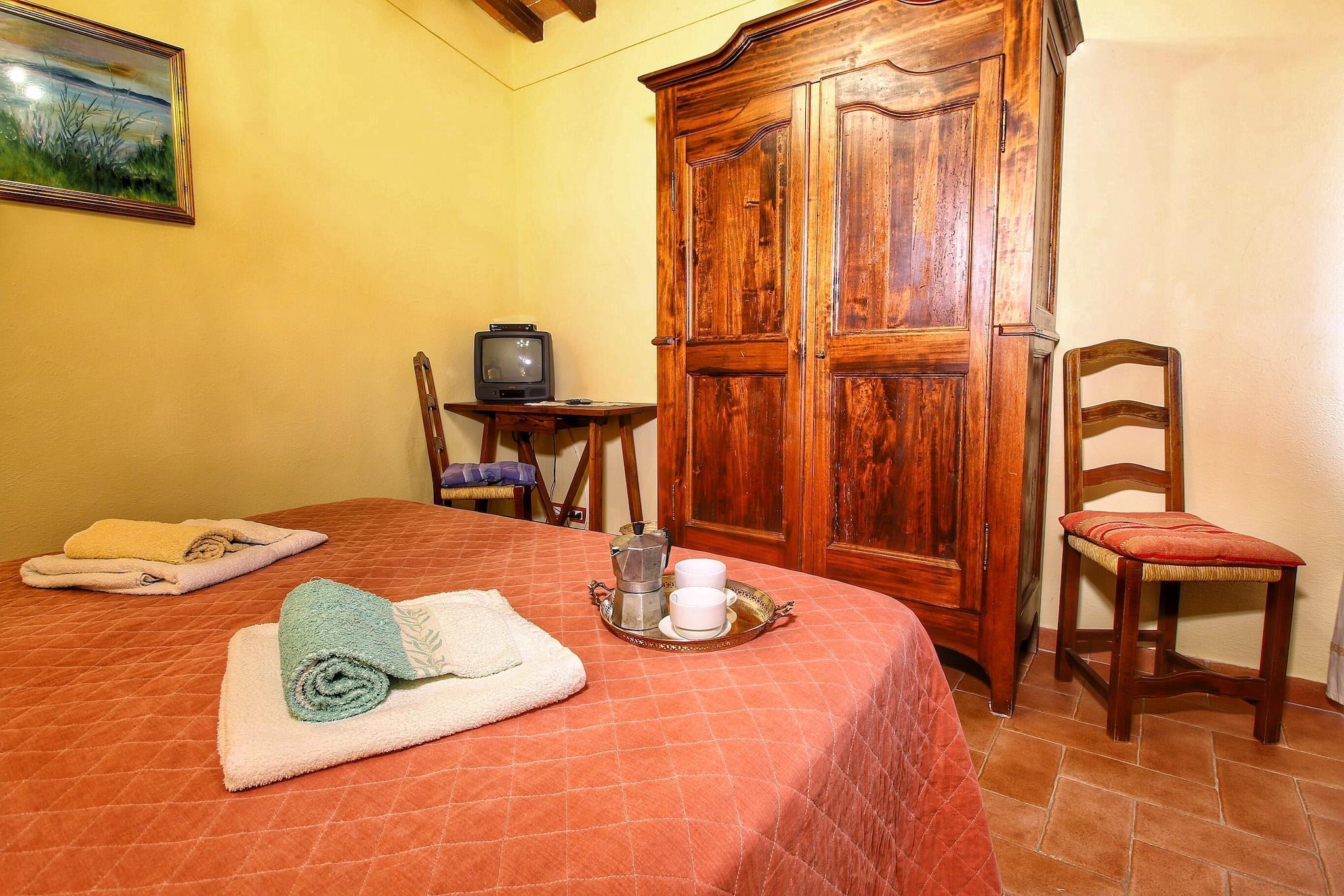 Dieses Bauernhaus mit 2 Schlafzimmern in Radda in Chianti eignet sich ideal für eine kleine Gruppe oder Familie. Es liegt in der Toskana und bietet Platz für 4 Personen. Das Bauernhaus verfügt über einen gemeinschaftlich genutzten Pool in 250 m Entfernung zur Erholung. Radda in Chianti bietet zahlreiche Ausflugsmöglichkeiten. Besuchen Sie den Parco Archeologico di Poggio La Croce und den Chianti-Skulpturenpark. Besuchen Sie auch die Pieve di Santa Maria Novella. Vergessen Sie nicht, mit den Kindern das Schloss Albola zu besuchen. Geschäfte und Restaurants befinden sich in der Nähe dieser Unterkunft, nur 2 km entfernt. Parkplätze sind vorhanden. Das Bauernhaus verfügt über Spielgeräte, einen Hochstuhl und ein Kinderbett. Im gemeinschaftlich genutzten Garten und auf der Terrasse können Sie herrliche Stunden verbringen. Fahrräder stehen zur Verfügung. WLAN und TV sind ebenfalls vorhanden. Maximal 1 Haustier ist erlaubt. Gäste haben Zugang zu einem Bio-Garten, in dem sie Gemüse ernten können. Es gibt einen überdachten Parkplatz und Handtücher können in der Unterkunft gemietet werden. Der nächste Flughafen ist nur 55 km entfernt.