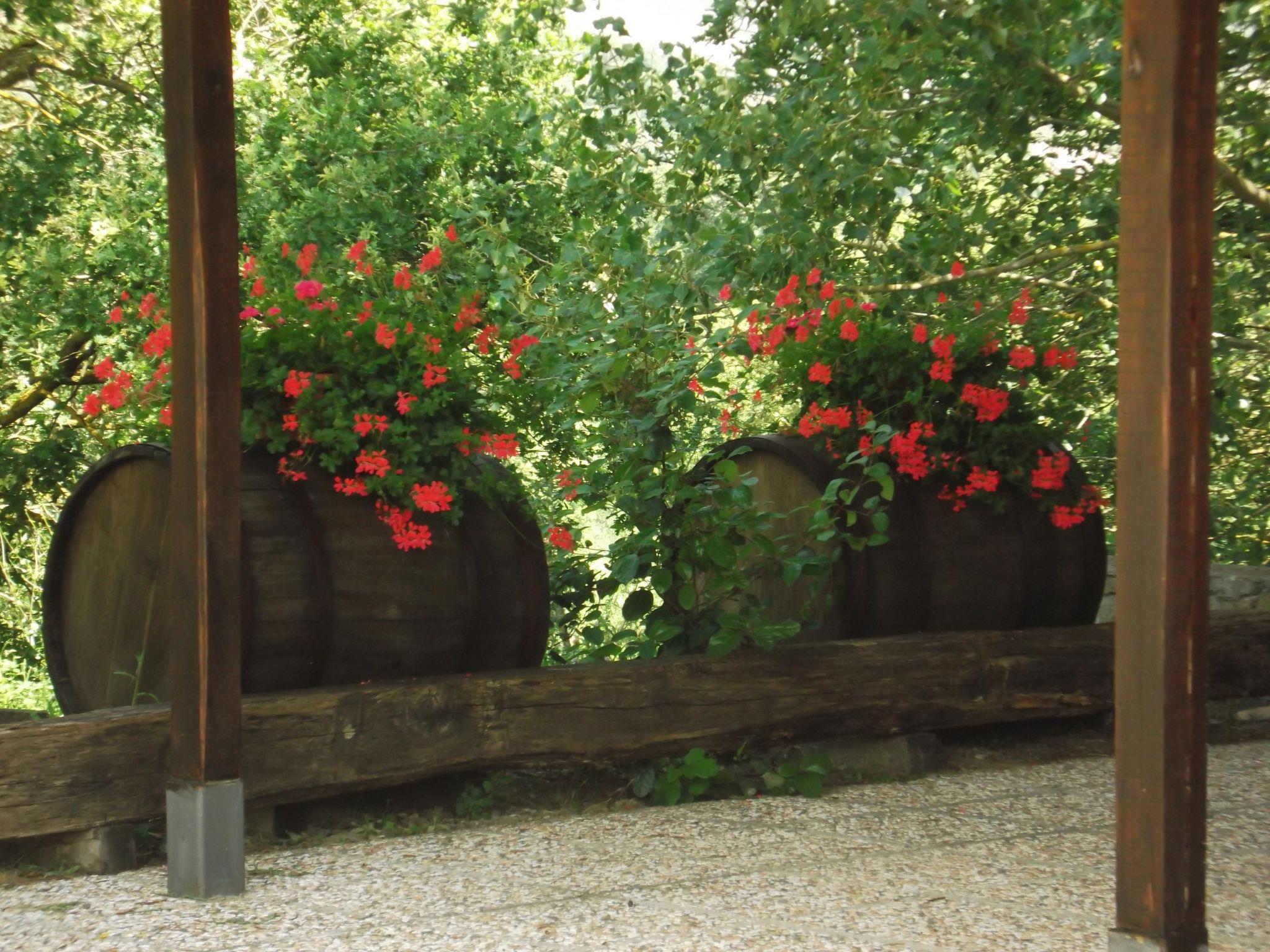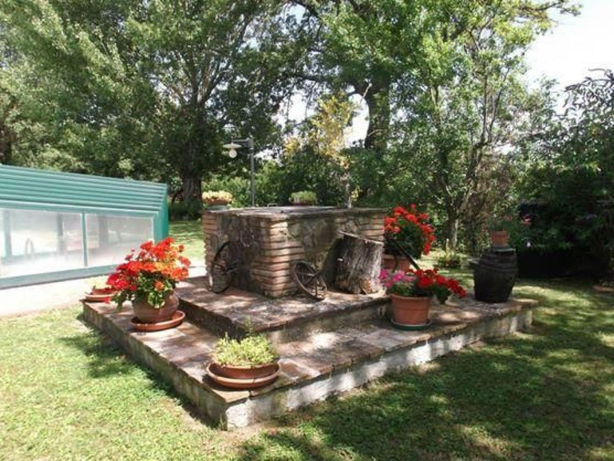 Im großen Garten lädt ein wunderschöner Swimmingpool mit Panoramablick zum Schwimmen und Entspannen ein. Er wird ausschließlich von den Gästen dieses Hauses genutzt und jeden Morgen gereinigt. Der Pool ist 6 x 12 m groß und die Wassertiefe variiert von 1,50 bis 2,20 m. Sie können auch Grillabende im Freien genießen; es gibt sogar einen Holzbackofen. Auf der großen Veranda mit Steintisch, die von einer Pergola überdacht ist, kann man jederzeit im Freien essen. Zum Anwesen gehört ein fünf Hektar großer Olivenhain, von dem ein Hektar um das Haus herum eingezäunt ist, so dass auch Ihre vierbeinigen Freunde genügend Freiraum haben. Das Anwesen verfügt über vier überdachte Parkplätze. Das familiengeführte Anwesen wurde mit traditionellen Materialien renoviert und vermittelt daher eine besondere Gastfreundschaft. Es bietet den idealen Rahmen für einen erholsamen Urlaub an der frischen Luft und bei gutem Essen.