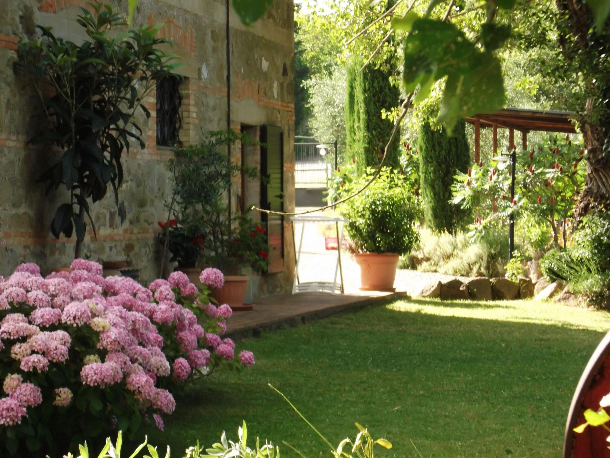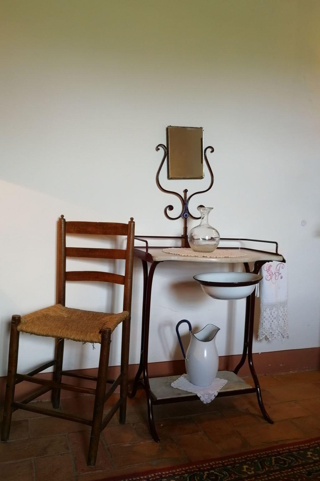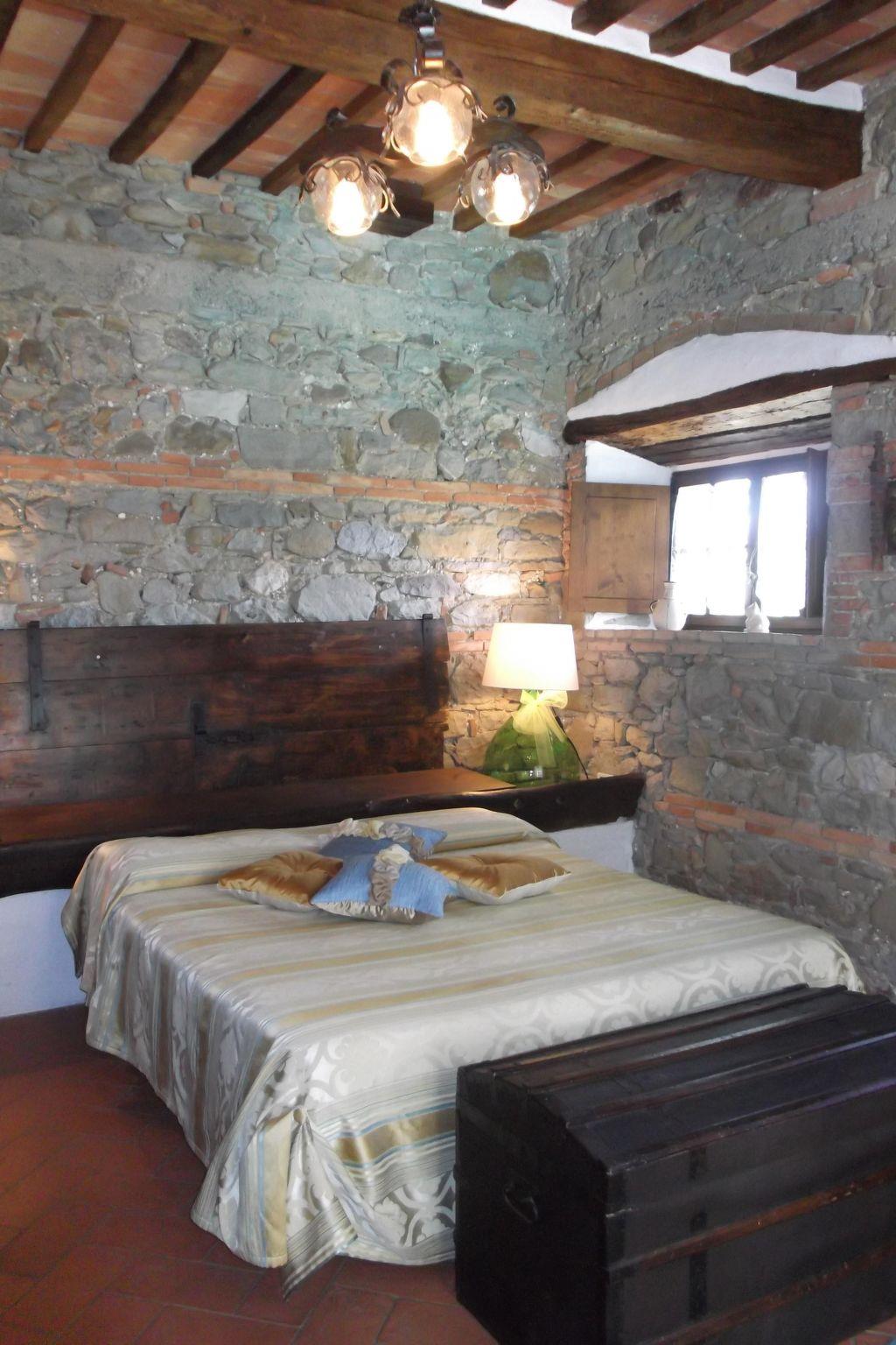Das Ferienhaus bietet ein einzigartiges Ambiente mit geschmackvoller Einrichtung und drei Schlafzimmern auf zwei Etagen. Im Erdgeschoss gibt es einen großen Wohnbereich mit einem Schlafsofa für zwei Personen (1,60 x 1,90 m), ein geräumiges Schlafzimmer mit einem Doppelbett, eine kleine, aber voll ausgestattete Küche und ein Badezimmer mit Dusche. Von diesem Bad aus kann man durch eine Glastür direkt in den Garten gehen. Eine Holztreppe führt in das Obergeschoss, das auch über eine Außentreppe zu erreichen ist. Im Wohnbereich im Obergeschoss ist der große originale Kamin der Mittelpunkt an kalten Tagen und sorgt für Wärme und Behaglichkeit. In der geräumigen, voll gemauerten Küche finden Sie alles, was Sie zum Kochen brauchen, sowie eine Sammlung antiker Töpfe und Pfannen, die liebevoll aus verschiedenen Bauernhöfen und Second-Hand-Läden zusammengestellt wurden. Außerdem gibt es zwei gemütliche und helle Schlafzimmer mit je einem Doppelbett und ein Badezimmer mit Badewanne, von dessen Fenster aus Sie den Monte Cetona bewundern können. Ein weiteres kleines Bad mit Dusche befindet sich auf der Loggia; da es über eine Außentreppe direkt zu erreichen ist, wird es gerne zum Duschen nach dem Baden genutzt. Es stehen insgesamt acht Betten zur Verfügung; die Doppelbetten sind jeweils 1,60 x 1,90 m groß. Auf Wunsch kann der Eigentümer im Schlafzimmer im Erdgeschoss ein Babybett aufstellen. Das Haus bietet einen kostenlosen Internetzugang.