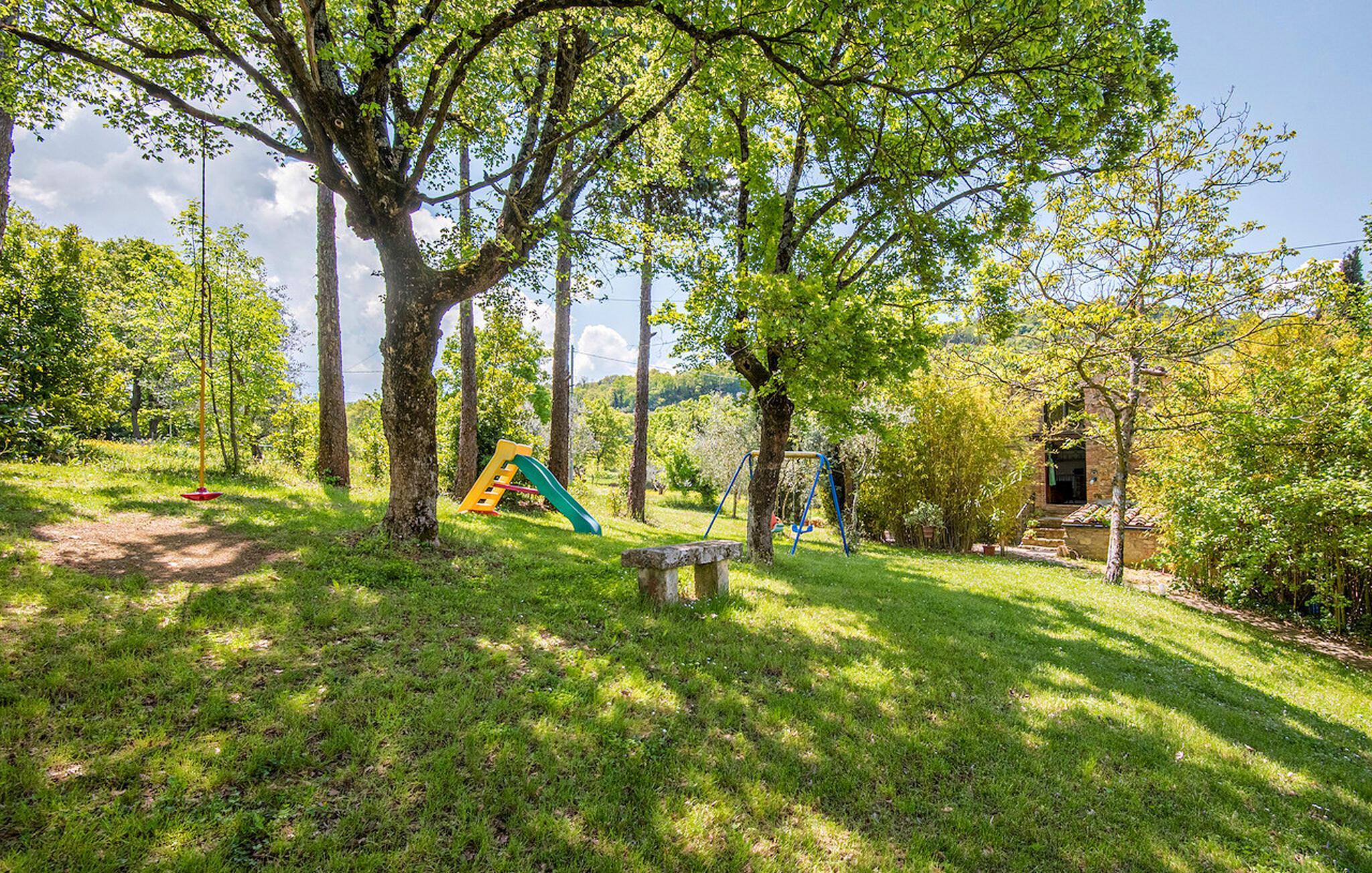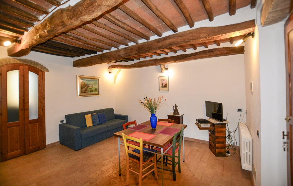 Eingebettet in die sanft hügelige Landschaft nahe Radicondoli lädt Sie diese liebevoll restaurierte Ferienwohnung zu unvergesslichen Tagen ein. Kochen Sie Ihre Mahlzeiten in der einladenden Küche und nehmen Sie im behaglichen Wohnbereich Platz. Machen Sie es sich nach einem langen Tag auf dem Sofa gemütlich oder entspannen Sie bei einem geselligen Spieleabend.
