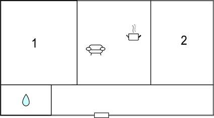 Badezimmer 4m2 (nr. 1) - WC. Warmes und kaltes Wasser. Dusche