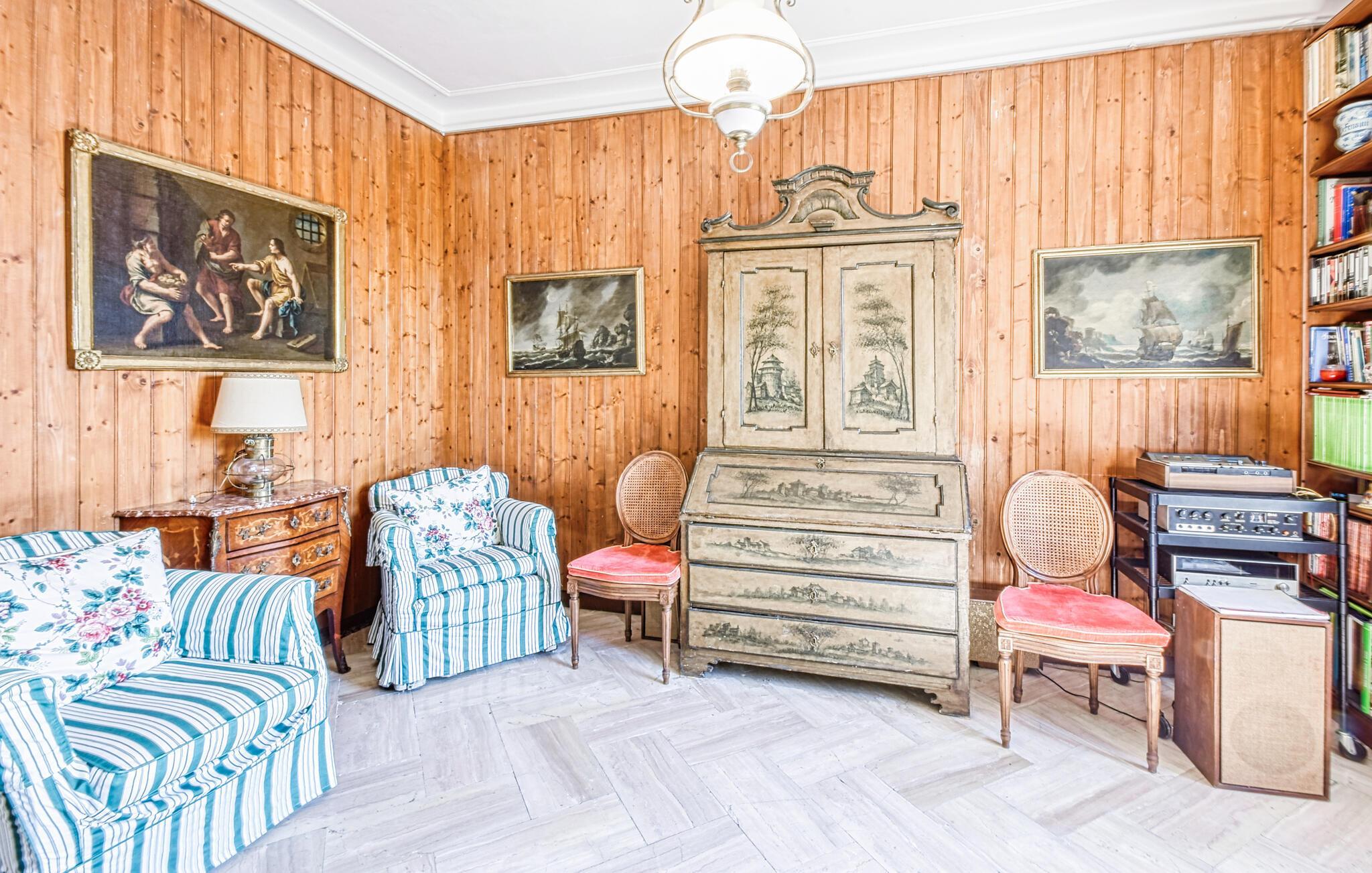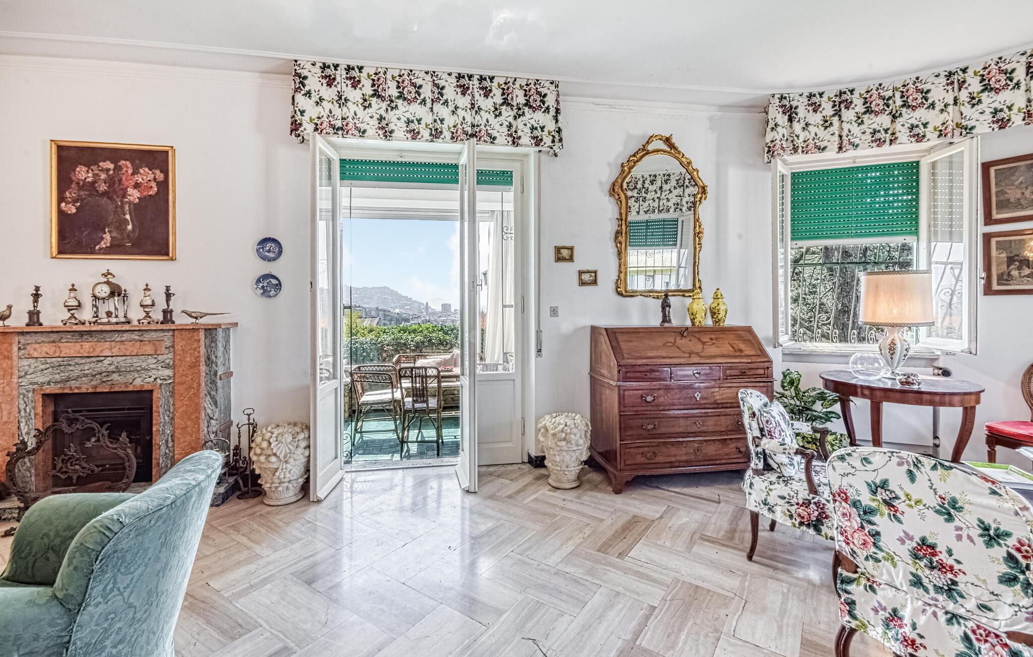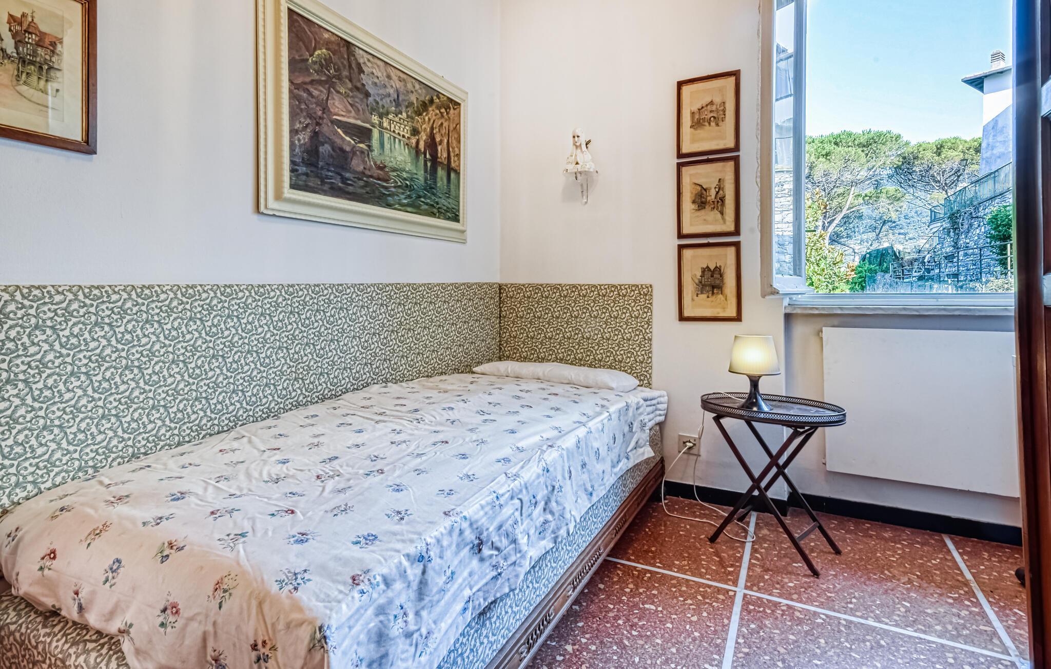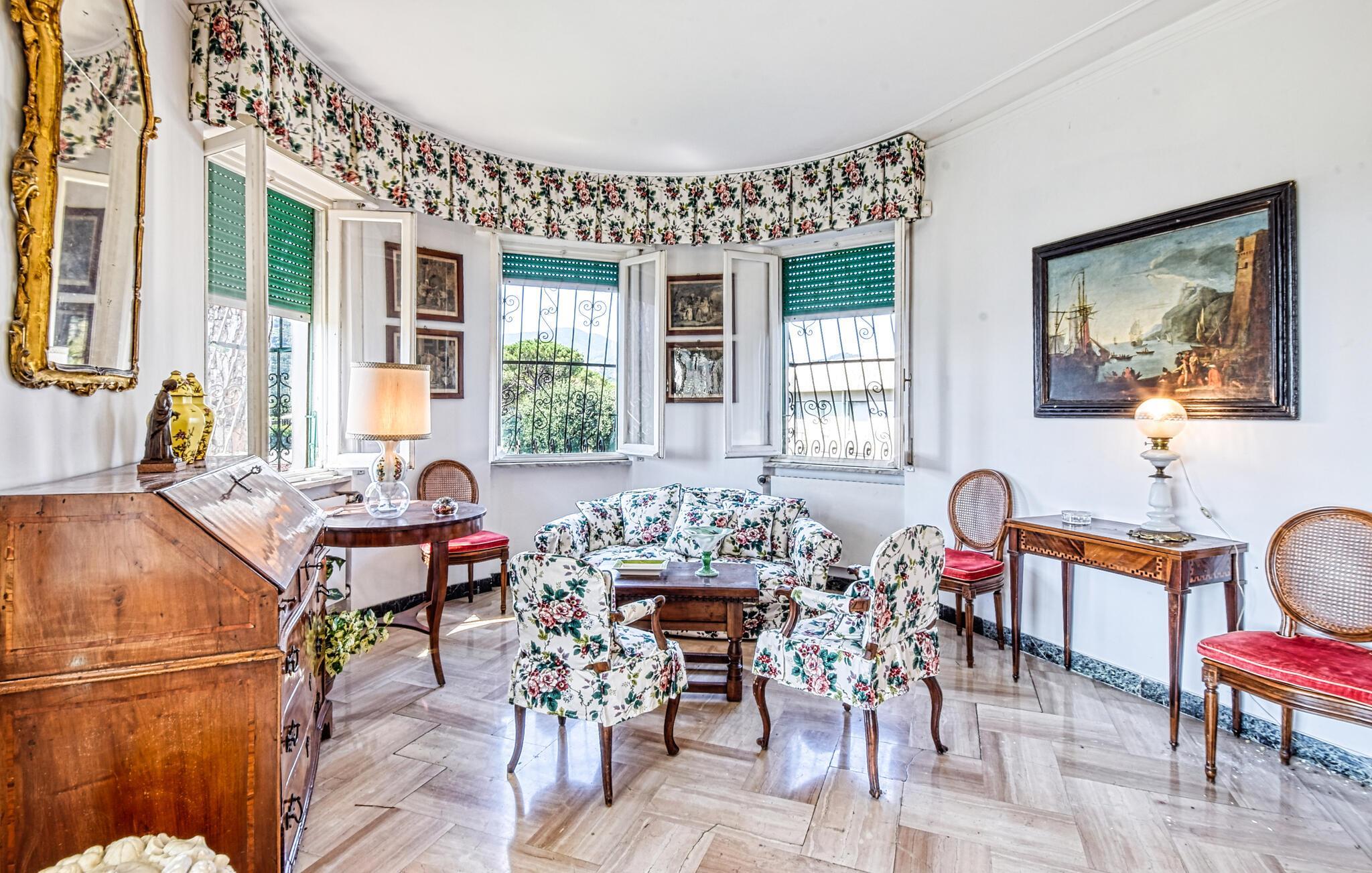 In diesem eleganten und geräumigen Ferienhaus in Rapallo genießen Sie Urlaub auf hohem Niveau. Die traditionelle Einrichtung mit verspielten Dekorelementen schafft für Sie ein warmes und einladendes Ambiente. Ideal für Ihre Familie bietet das Haus ausreichend Platz, um sich zu entspannen und den Alltag hinter sich zu lassen. Der Wintergarten und die weitläufige Terrasse mit Blick auf das Meer und die Stadt sind perfekte Orte, um die Ruhe zu genießen. Der idyllische Garten lädt Sie zu sonnigen Stunden im Freien ein – eine Oase der Entspannung, die Sie verzaubern wird.