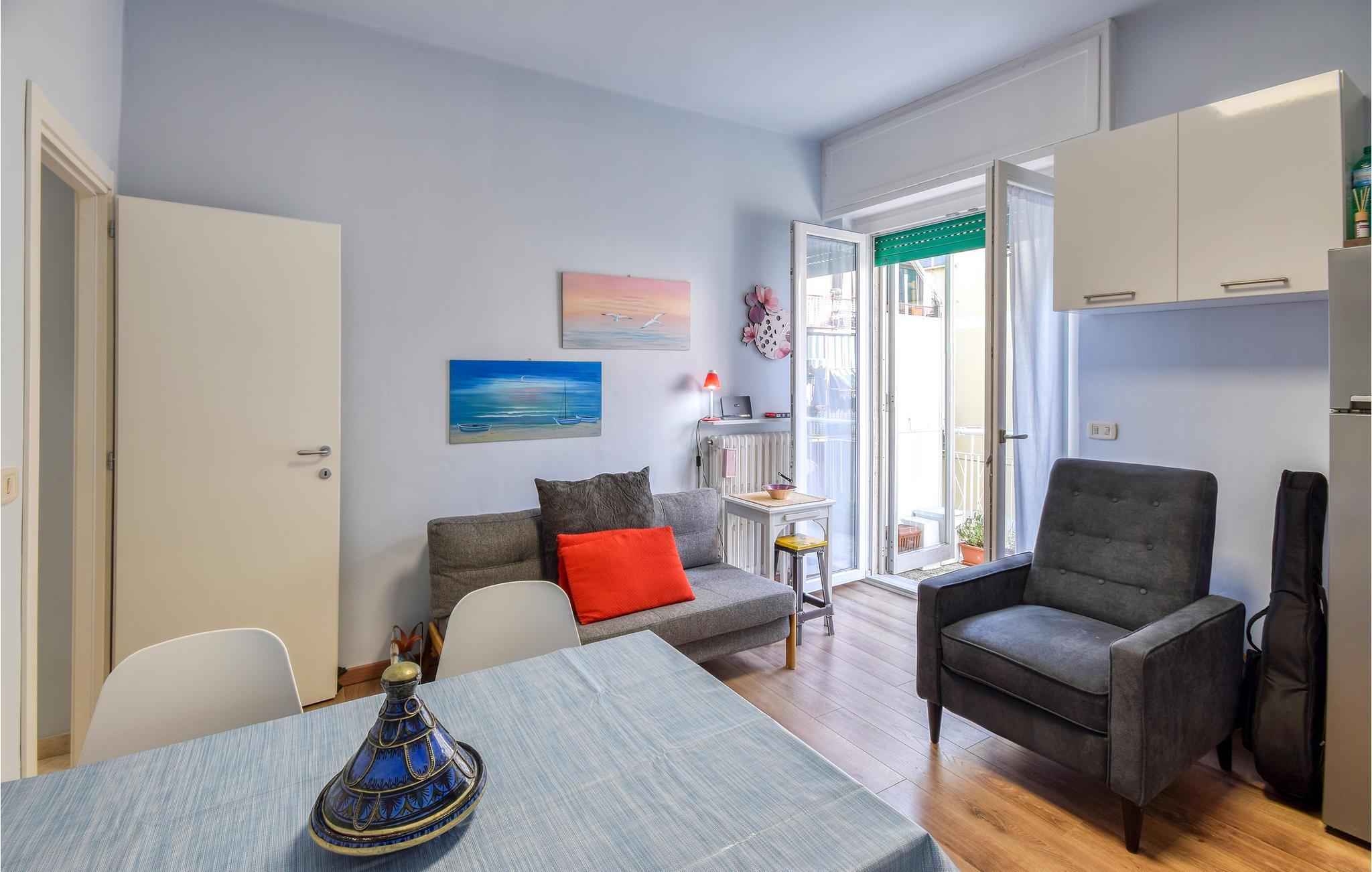 Eine taghelle Ferienwohnung in Rapallo, mit Balkon und stilvoller Einrichtung.