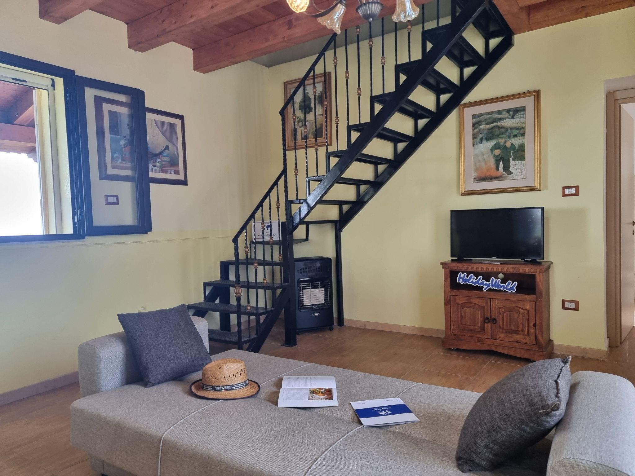 Die Villa Veranda Panoramica ist geräumig und gemütlich, eingebettet in einen großen privaten Garten von ca. 10.000 m², der auf der Spitze eines Hügels liegt und einen 360-Grad-Blick bietet. Das Anwesen bietet geräumige und gepflegte Zimmer, ideal für diejenigen, die Ruhe und Kontakt mit der Natur suchen. Im Inneren verfügt die Villa über ein großes Wohnzimmer mit Schlafsofa, eine voll ausgestattete Küche und ein anschließendes Esszimmer sowie zwei Veranden: eine geschlossene mit Panoramafenstern und eine offene, beide ausgestattet mit Tischen, Stühlen und einem Grill. Im Erdgeschoss befindet sich auch ein großes Bad mit Zugang von außen. Im Obergeschoss, das über eine Innentreppe zu erreichen ist, befinden sich ein Schlafzimmer mit Doppelbett im Dachgeschoss, ein kleines Schlafzimmer mit zwei Einzelbetten und ein zweites komplettes Bad. Die Räume sind komfortabel und gut beleuchtet, mit angemessener Höhe auch im Dachgeschoss. Zwei große Parkplätze, unabhängige Eingänge und ein Garten mit vielen Wegen, natürlichen Höhlen und Aussichtspunkten vervollständigen das Anwesen.