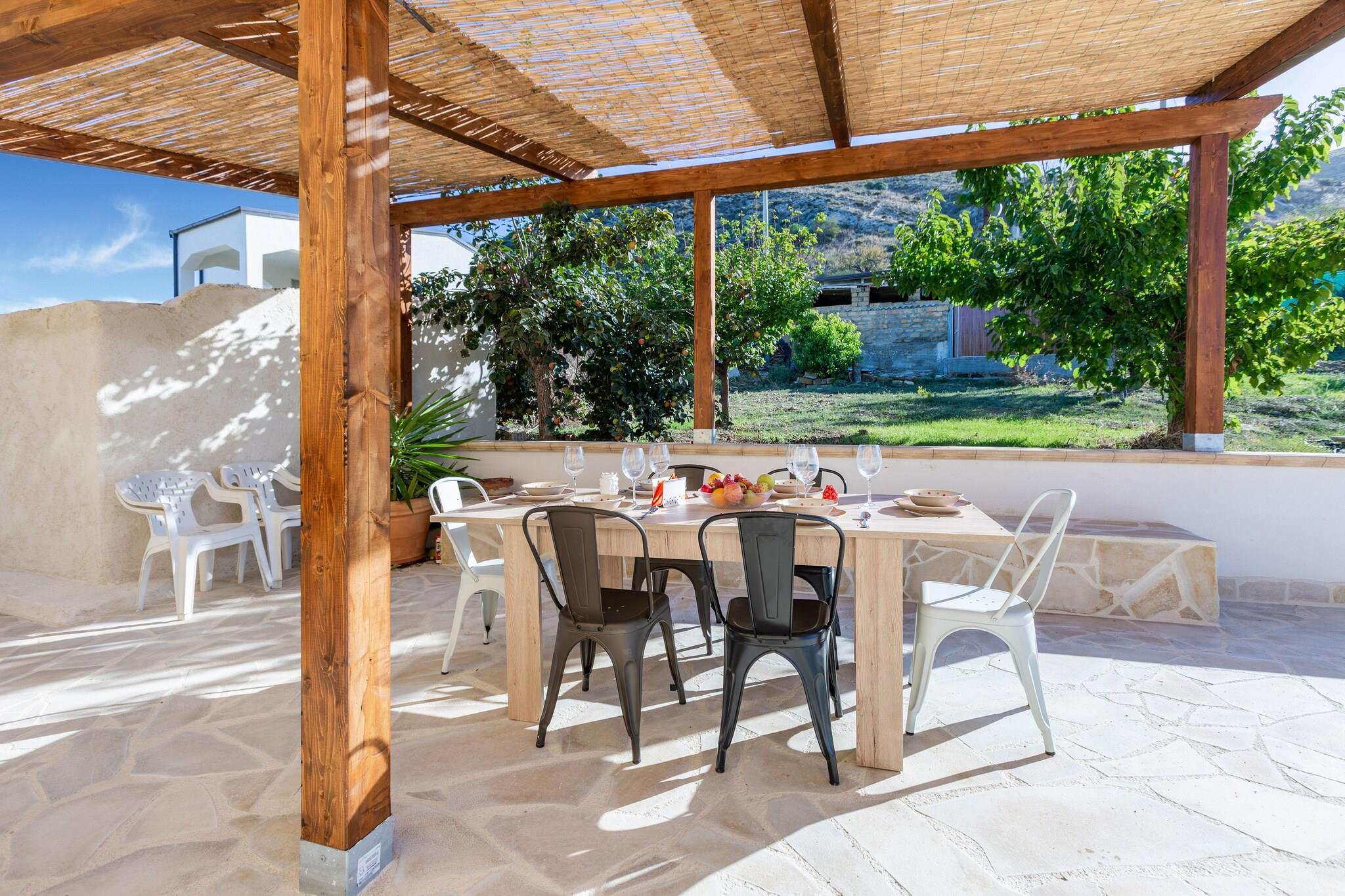 Genießen Sie einen wunderbaren Urlaub in diesem schönen Stück Italien! Die Wohnung ist Teil einer Villa, die einen Gemeinschaftspool und einen schönen Garten hat. Außerdem haben Sie Zugang zu einer privaten Terrasse, die es nur in dieser Wohnung gibt. Ideal für Familien. Die Unterkunft befindet sich im Süden der spektakulären Insel Sizilien. Das Meer ist von hier aus leicht zu erreichen, und Sie können auch beliebte Orte wie Palermo und Syrakus besuchen. Die Unterkunft verfügt über einen Parkplatz und einen gemeinsamen Swimmingpool, der an heißen Sommertagen für die nötige Abkühlung sorgt. Der Garten ist geschmackvoll eingerichtet und die Wohnung verfügt über eine offene Küche mit Geschirrspüler. Die private Terrasse von 30 m² ist der ideale Ort für einen entspannten Nachmittag mit einem Snack und einem Getränk Ihrer Wahl. Die Wohnung, das Schwimmbad und der Parkplatz sind für Behinderte leicht zugänglich.