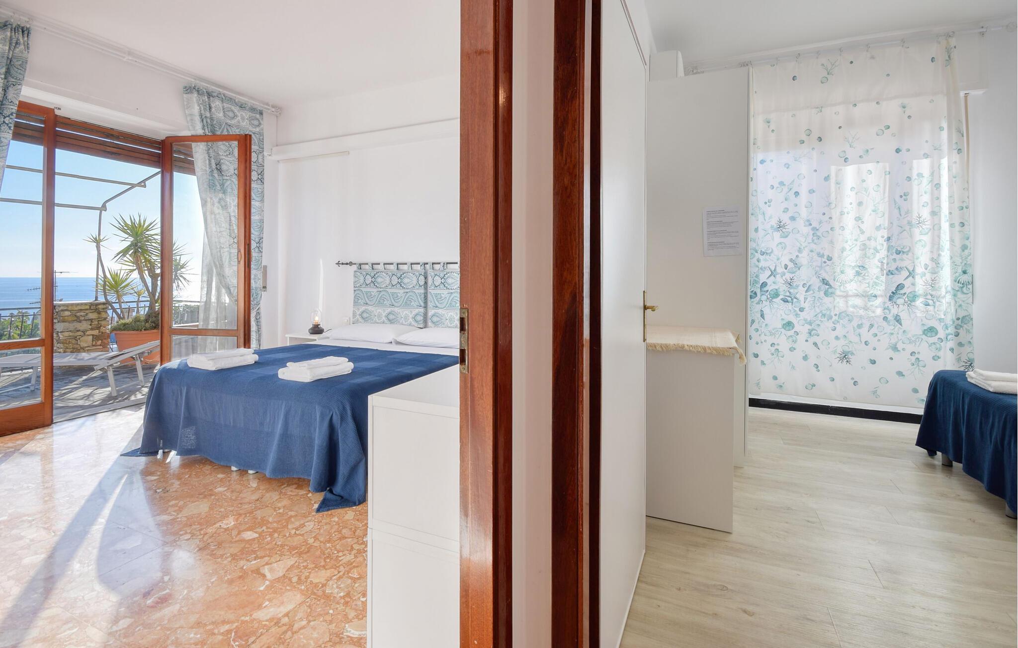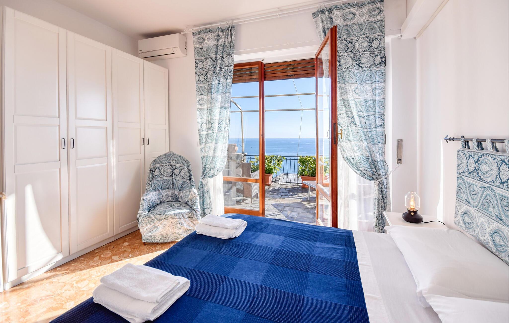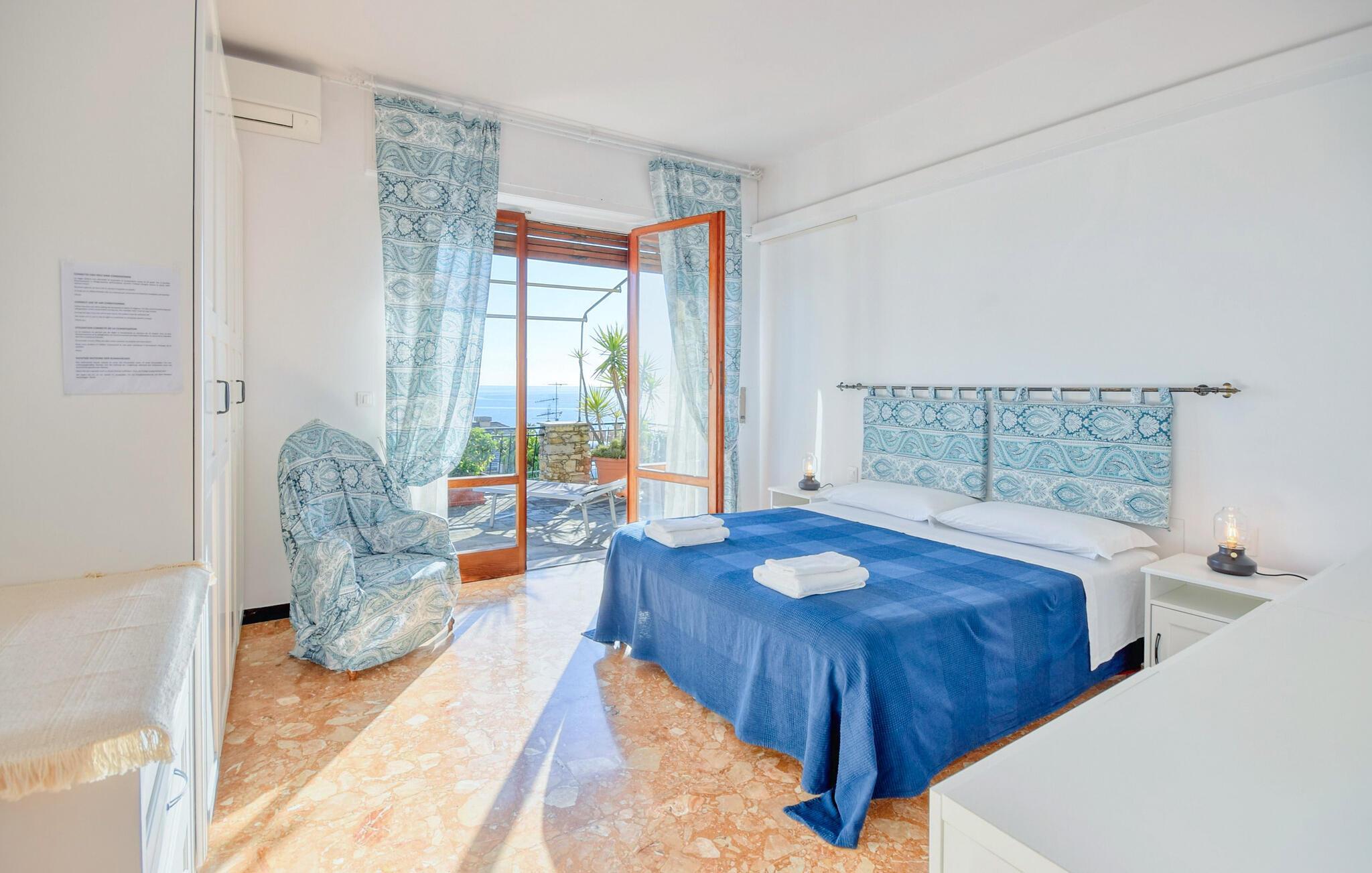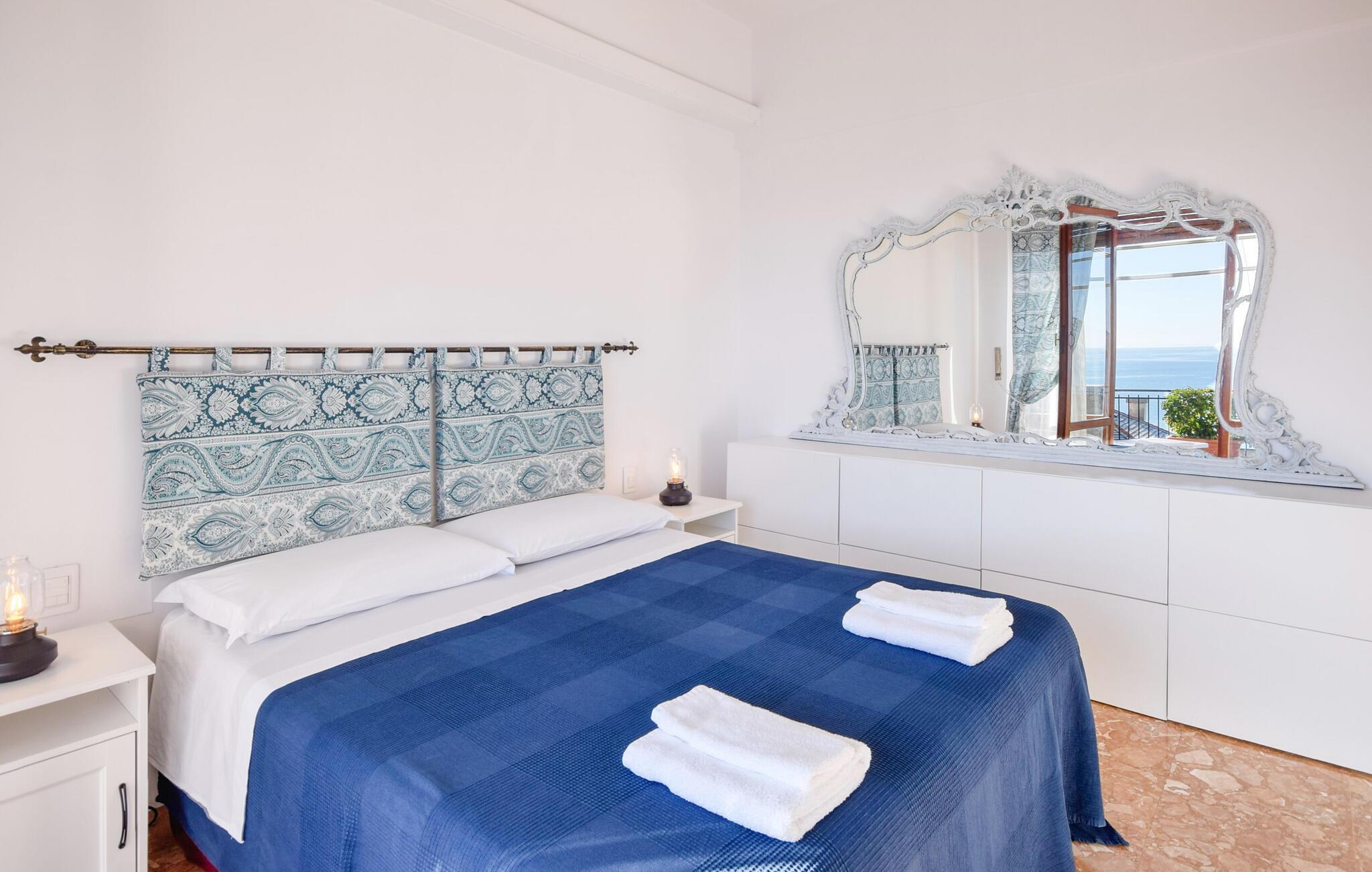 Erholen Sie sich mit Blick auf das Mittelmeer in dieser charmanten Ferienwohnung mit Garten.