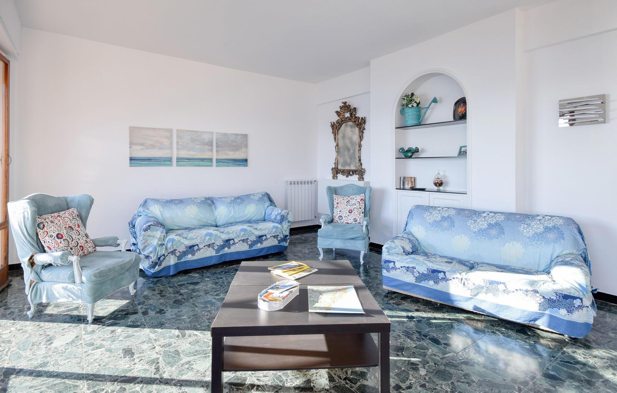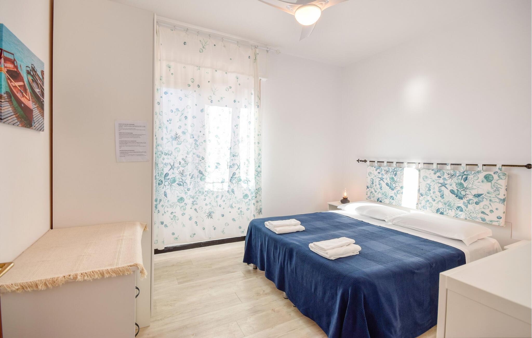 Genießen Sie das italienische Dolce Vita in dieser großzügigen Ferienwohnung, in der Sie romantisch zu zweit oder mit der Familie eine entspannte Auszeit vom Alltag verbringen können. Experimentieren Sie mit frischen Zutaten in der modernen Küche und entspannen Sie sich im maritimen Ambiente Ihres Wohnzimmers bei einem Film oder einem guten Buch.