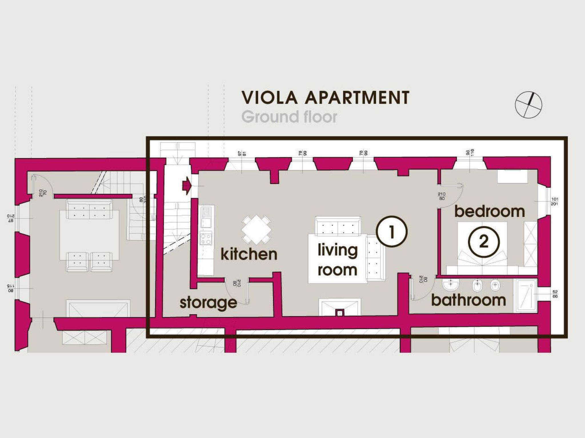 Die Wohnung Viola (60 qm) gehört zum Bauernhof Antico Borgo La Torre, der 27 km südöstlich von Florenz in sonniger und ruhiger Lage inmitten der grünen toskanischen Landschaft liegt. 32 Hektar Land mit Weinbergen, Olivenhainen und einem großen Naturgarten mit einem kleinen privaten See und einem 20 Meter langen Pool stehen allen Gästen zur Verfügung.