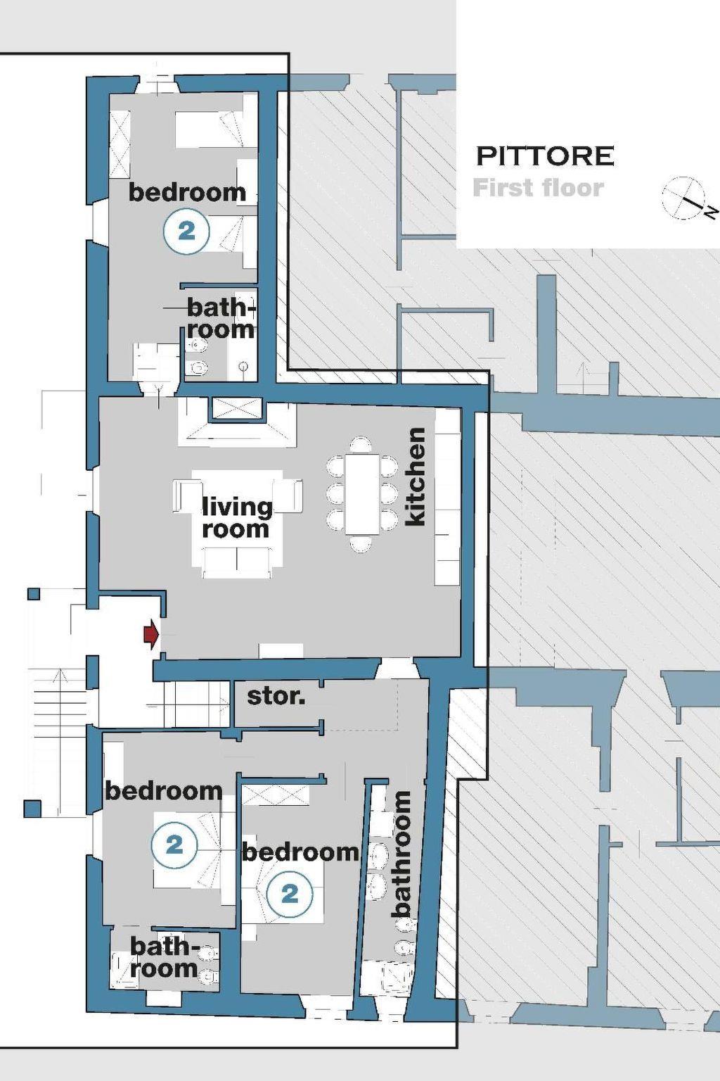 Die 120 qm große Wohnung Pittore ist Teil des Bauernhofs Antico Borgo La Torre, 27 km südöstlich von Florenz, in einer sonnigen und ruhigen Lage, inmitten der grünen toskanischen Landschaft. Die Wohnung von 100 qm befindet sich im ersten und zweiten Stock eines der beiden Hauptgebäude des Bauernhofs. 32 Hektar Land mit Weinbergen, Olivenhainen und einem großen Naturgarten mit einem kleinen privaten See und einem 20-Meter-Schwimmbad, die alle Gäste genießen können.
