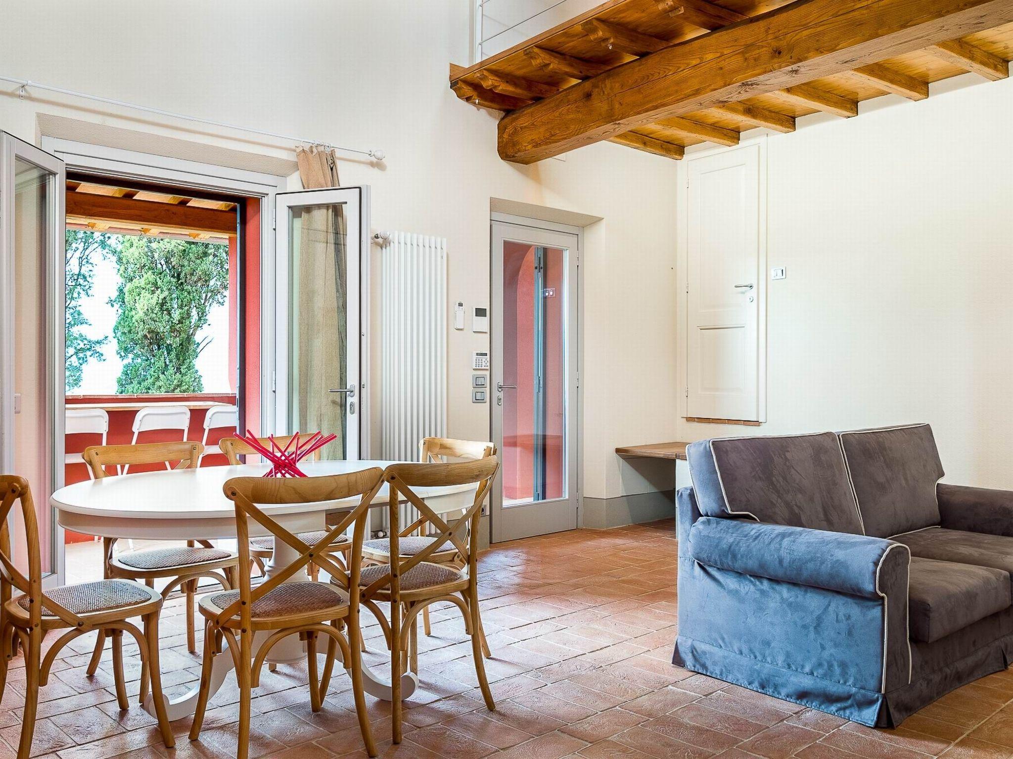 Entdecken Sie den Charme einer Ferienwohnung inmitten der sanften Hügel, wo sich moderner Komfort und natürliche Schönheit perfekt verbinden. Diese exklusive 110 m² große Wohnung, die bis zu 6 Personen beherbergen kann, erstreckt sich über zwei Ebenen im ersten Stock und verfügt über eine herrliche, möblierte und überdachte Terrasse, von der aus Sie einen atemberaubenden Blick auf das umliegende Tal genießen können.