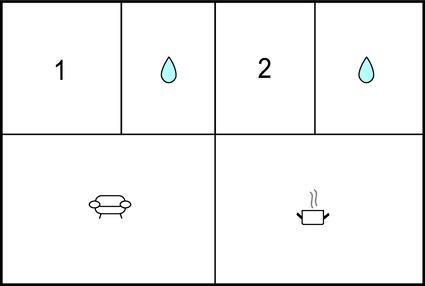 Badezimmer (nr. 1) - WC. Warmes und kaltes Wasser. Dusche