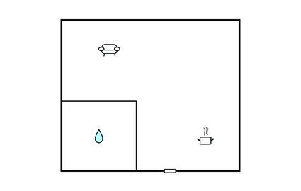 Badezimmer 4m2 (nr. 1) - WC. Warmes und kaltes Wasser. Dusche