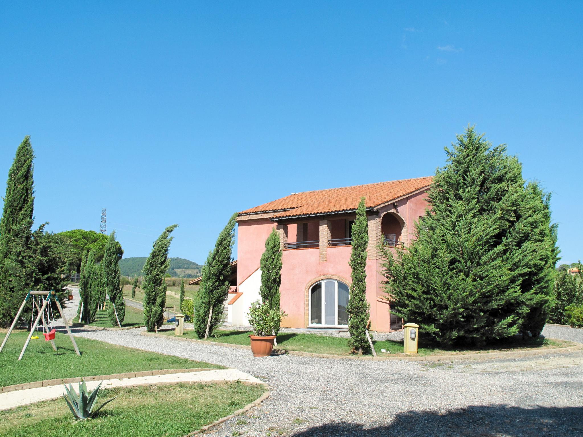 In erhöhter Lage mit sehr schöner Sicht auf das Meer und die umliegenden Hügel. Kinderfreundliche Ferienanlage "Il Felciaione", umgeben von Bäumen, Wiesen und Feldern. 8 Häuser im Ferienresort. 55 Wohnungen in der Residenz. 3.5 km vom Zentrum von Riparbella, sonnige Lage am Hang, 100 m vom Waldrand, 10 km vom Meer, 10 km vom Strand, im Grünen. Zur Mitbenutzung: Grundstück 350'000 m2 mit Pflanzen und Bäumen, Wiese, Schwimmbad (40 - 140 cm tief, saisonale Verfügbarkeit: 15.Mai. - 25.Sep.). Terrasse, Gartenmöbel, Kinderspielplatz. In der Anlage: Restaurant, Bar, Bistro, Wireless LAN, Waschmaschine (extra), Wäschetrockner (zur Mitbenutzung, extra), Fahrradverleih. Wäschewechsel (zusätzlich extra). Handtuchwechsel (zusätzlich extra). Brötchenservice. Parkplatz beim Haus. E-Ladestation. Einkaufsgeschäft 3.5 km, Supermarkt 10 km, Bushaltestelle "V. Del Commercio 2" 2.7 km, Sandstrand "Marina di Cecina" 10 km, Thermalbad "Calidario" 43 km. Nahe gelegene Sehenswürdigkeiten: Volterra 34 km, Pisa 66 km, Lucca 88 km, Firenze 120 km. Das Foto ist nur ein Wohnungsbeispiel. Badekappenpflicht.