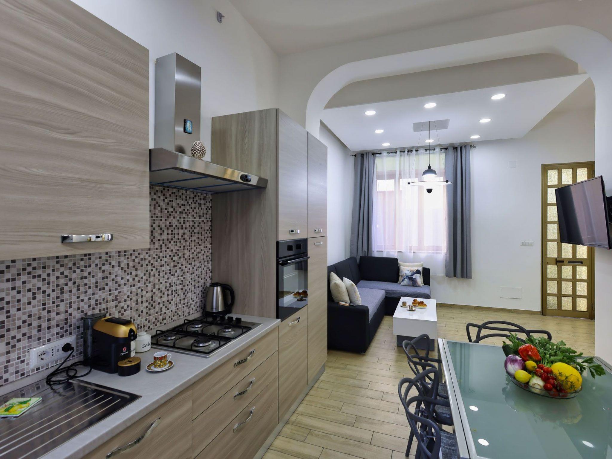 Die Küche ist voll ausgestattet und eignet sich perfekt für die Zubereitung von Mahlzeiten. Es gibt auch eine private Terrasse mit Blick auf die Stadt und die charakteristische Umgebung, ideal für ein Frühstück im Freien oder zum Entspannen am Ende des Tages.