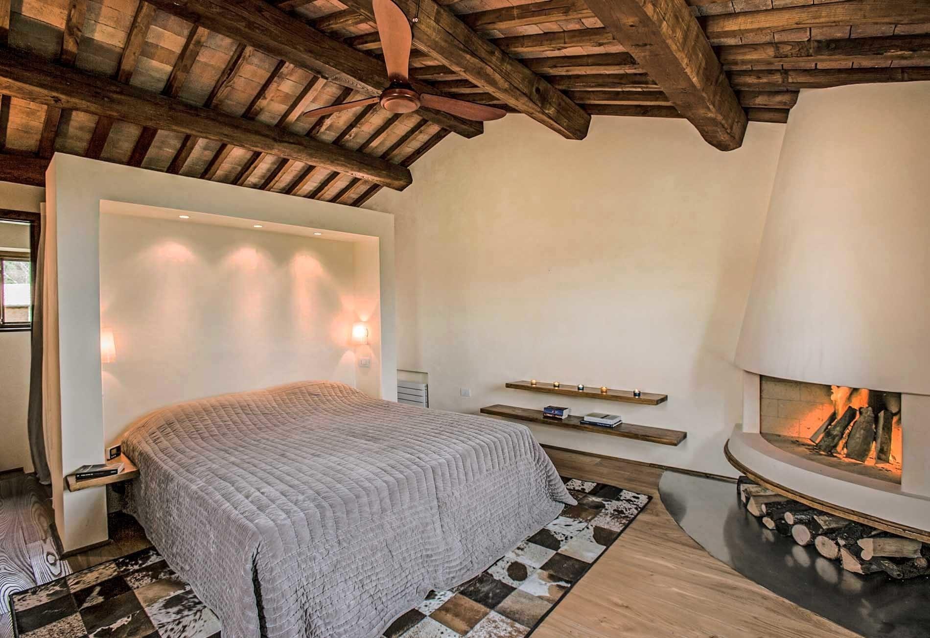 Weitere Kamine befinden sich im Wohnbereich und im Schlafzimmer in der oberen Etage.