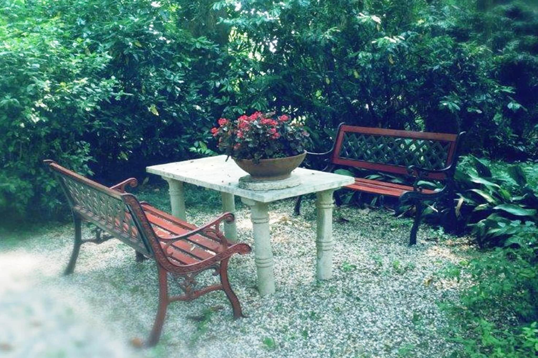 Parterre: (Esszimmer(Esstisch), Wohnküche(TV(Flatscreen), Kaminofen, Kochendwasserhahn, Kochherd(5 Kochplatten, Gas), Kaffeemaschine, Backofen, Mikrowelle, Kühl-/Gefrierkombination, Terrasse(alleinige Nutzung, 30 m2)), Badezimmer(Dusche, Waschbecken, Toilette, Bidet), Abstellraum(8 m2)(Spülmaschine, Waschmaschine), Gartenmöbel) Zwischengeschoss: (Aufenthaltsraum, Aufenthaltsraum, Esszimmer, Saal) In der 1. Etage: (Schlafzimmer(Doppelbett), Schlafzimmer mit Badezimmer(Doppelbett, Dusche, Waschbecken, Toilette, Bidet), Badezimmer(Badewanne, Waschbecken, Toilette, Bidet), Waschraum(Trockner, Bügelbrett, Bügeleisen), Saal) Klimaanlage, Garten(teilweise umzäunt, 5000 m2), Parkplatz, Parkplatz, Fahrräder verfügbar