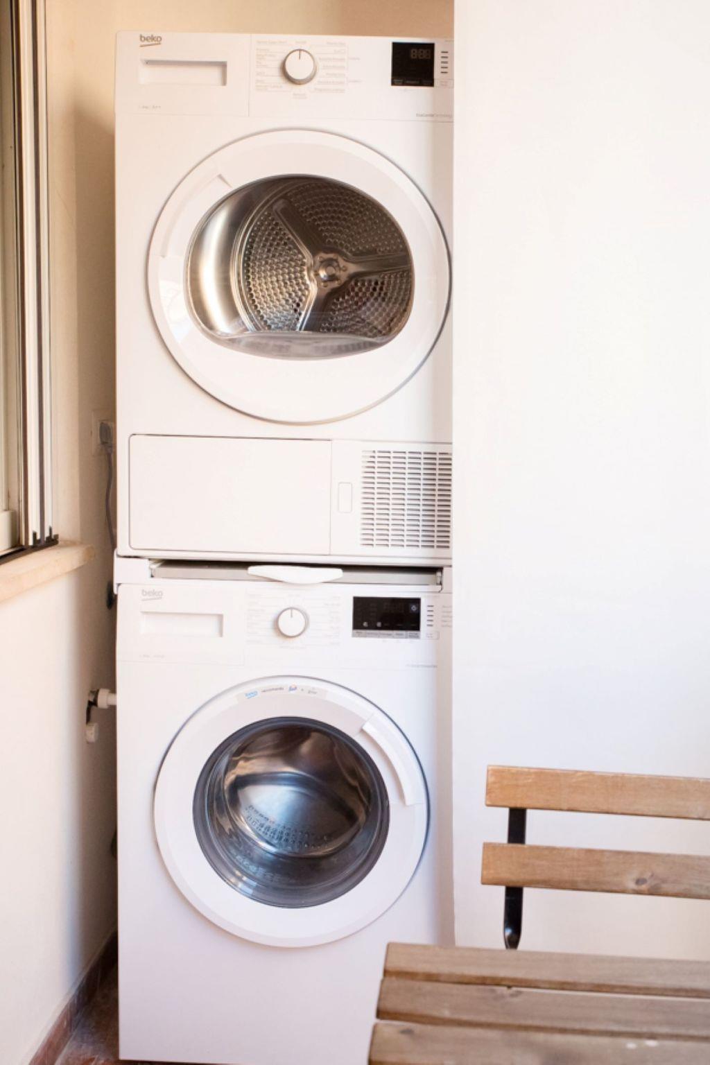 Im Inneren ist die Wohnung mit allen notwendigen Annehmlichkeiten ausgestattet, um einen sorglosen Aufenthalt zu gewährleisten. Das ideale Klima wird durch eine Klimaanlage gewährleistet, die nach einem Tag in der Stadt für Abkühlung sorgt. Für diejenigen, die gerne ihre eigenen Mahlzeiten zubereiten, ist die Küche mit einem modernen Induktionsherd, einem Geschirrspüler, einer Kaffeemaschine mit Pads für einen guten Start in den Tag und einem praktischen elektrischen Wasserkocher ausgestattet. Darüber hinaus ist das exklusive Vorhandensein einer Waschmaschine und eines Trockners in der Wohnung ein zusätzlicher Komfort für mittlere oder längere Aufenthalte.