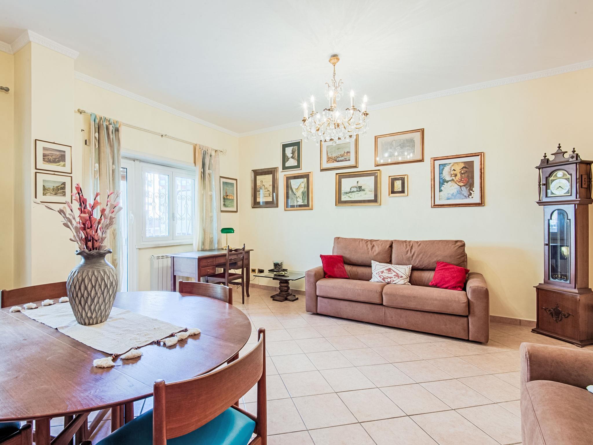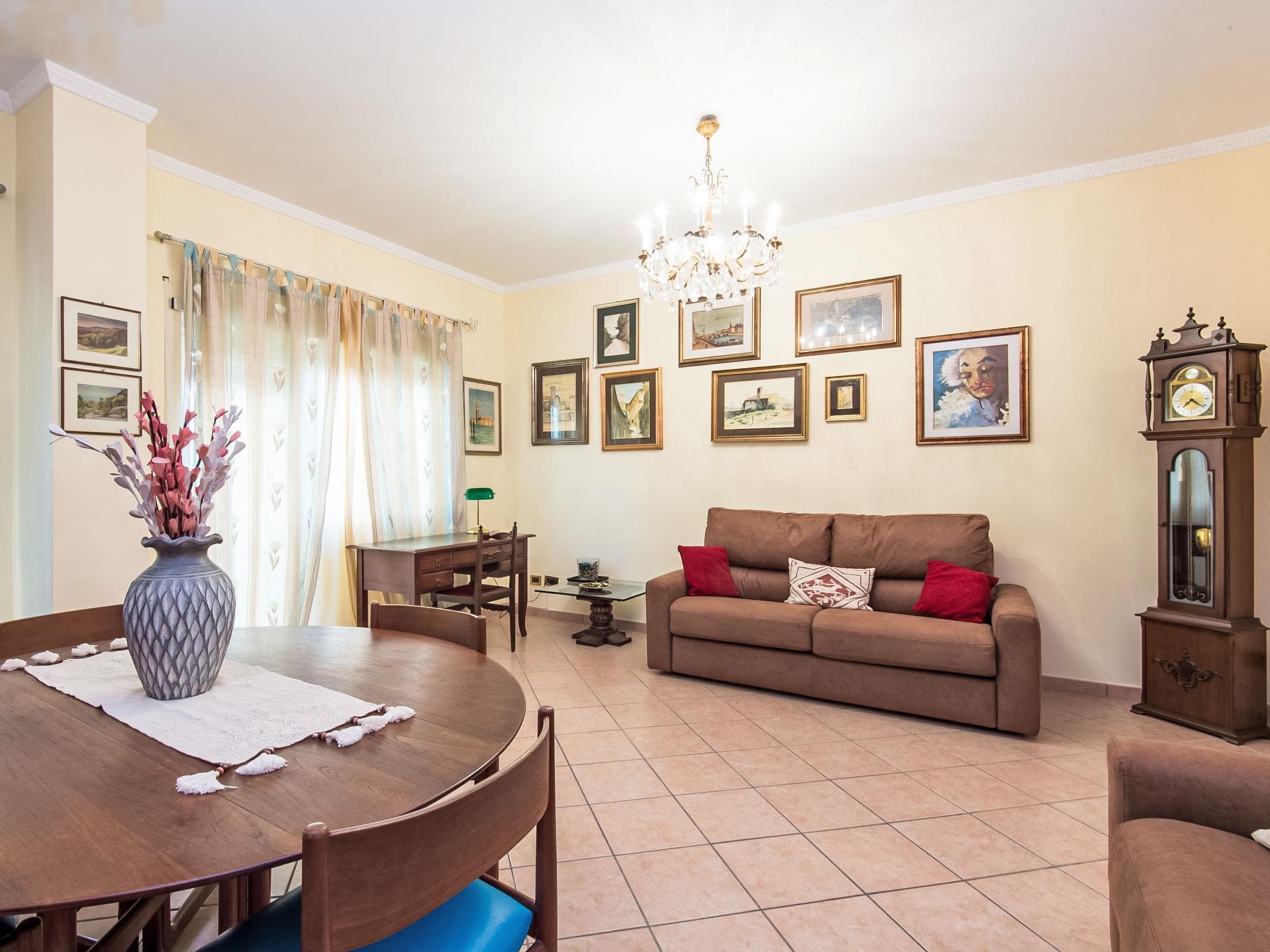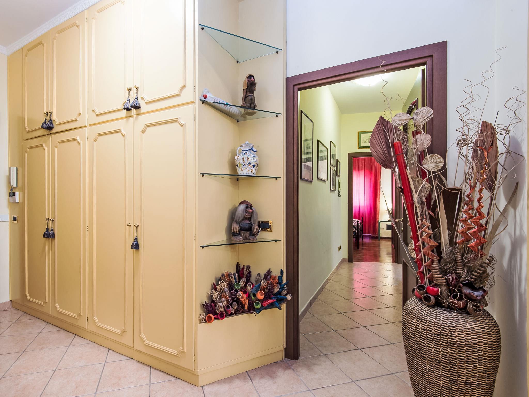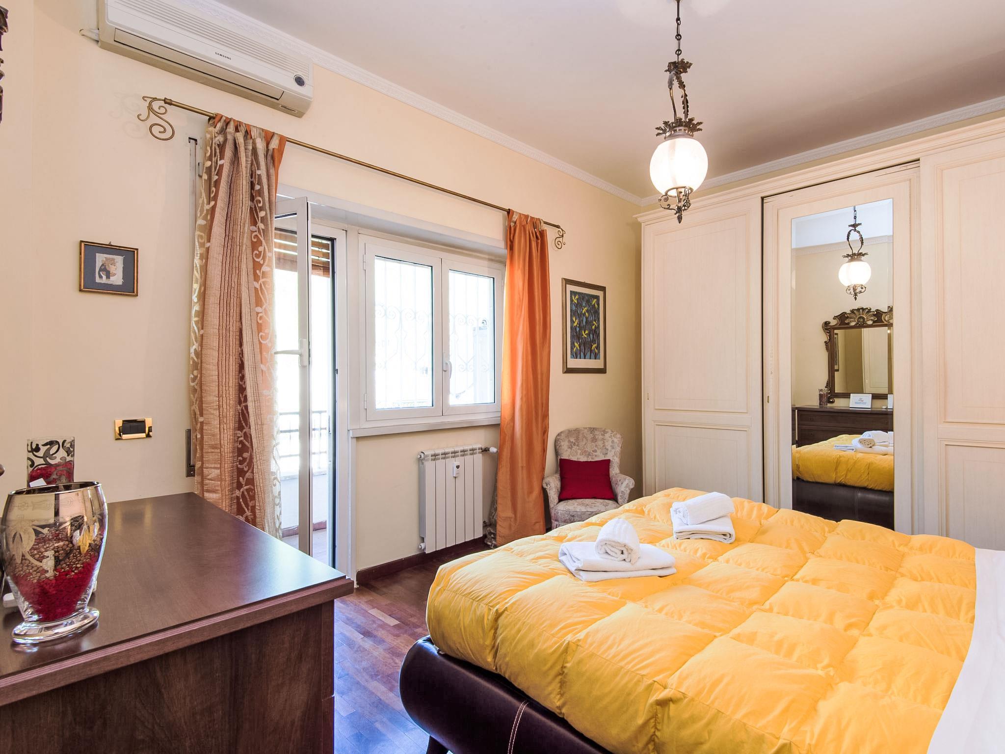 "Vaticanum Hills", 3-Zimmer-Wohnung 110 m2 im 2. Stock. Geräumig und hell, sehr komfortabel und gemütlich eingerichtet: grosses Wohn-/Esszimmer mit 1 Doppeldiwanbett, Digital-TV, Flachbildschirm, Radio, DVD und Klimaanlage. Ausgang zum Balkon. 1 Doppelzimmer mit Klimaanlage. Ausgang zum Balkon. 1 Doppelzimmer. Küche (4 Kochplatten, Backofen, Geschirrspüler, Mikrowelle, Grill, elektrische Kaffeemaschine, Kapseln für die Kaffeemaschine (Lavazza A modo mio)) mit Esstisch, Digital-TV und Flachbildschirm. Bad/Bidet/WC, Dusche/Bidet/WC. Heizung, Klimaanlage. Heizung nur verfügbar von 21.11. bis 30.03. 2 Balkone 4 m2. Zur Verfügung: Waschmaschine, Bügeleisen, Haartrockner. Internet (Wireless LAN, gratis). Bei einer Ankunft nach 20 Uhr wird ein Aufpreis erhoben 30-50 Euro. IT058091C2NEY6EN4X