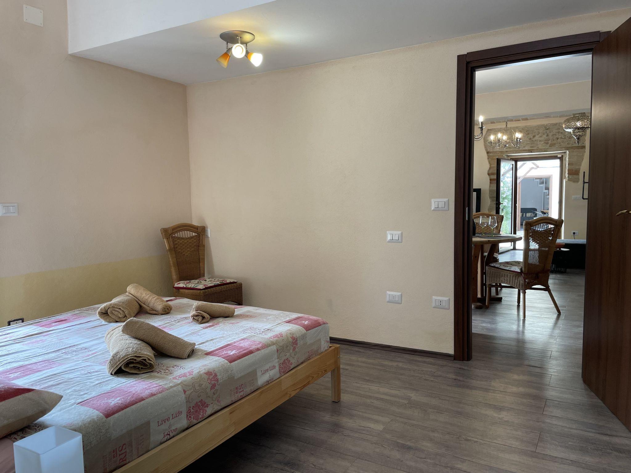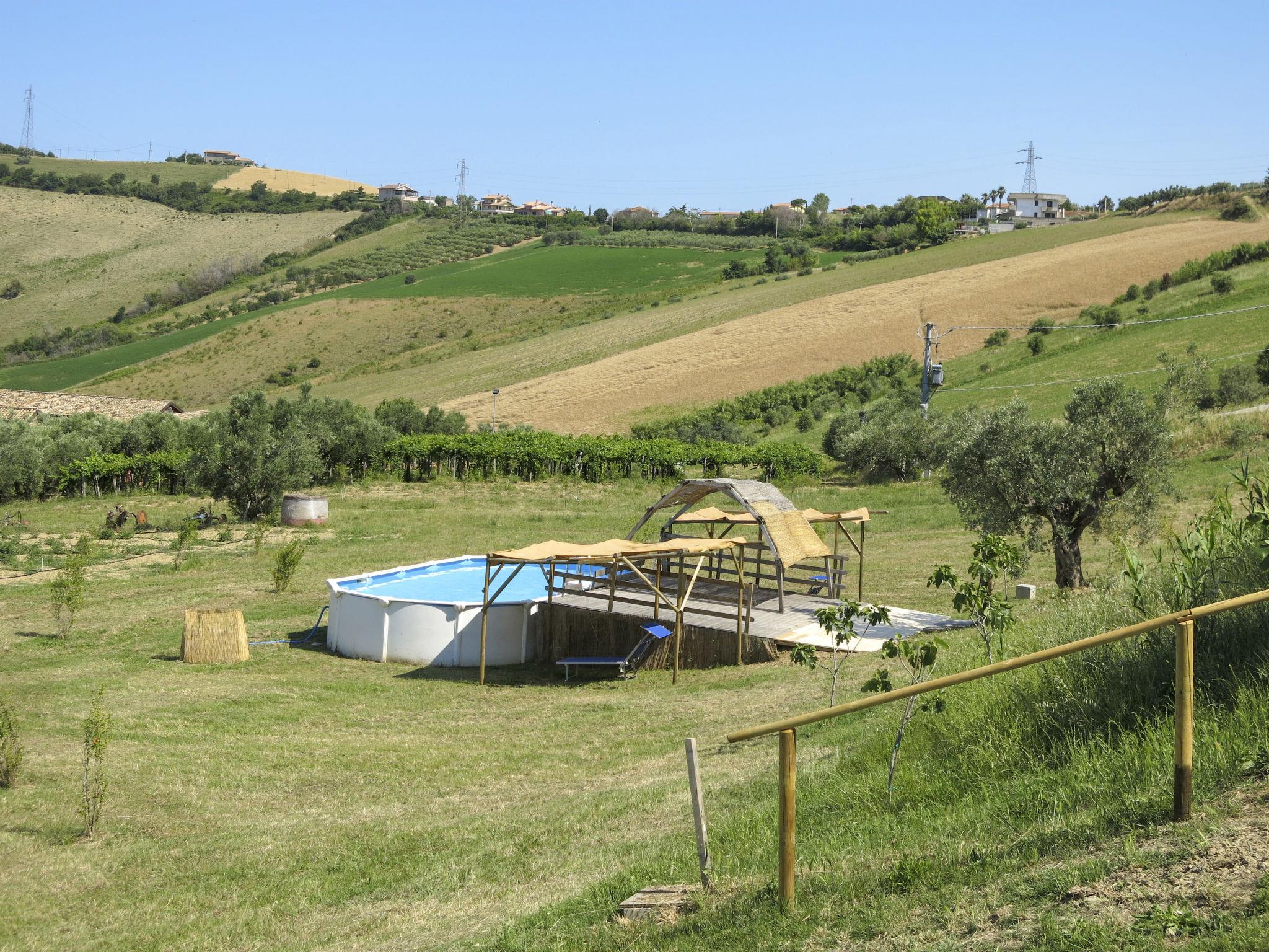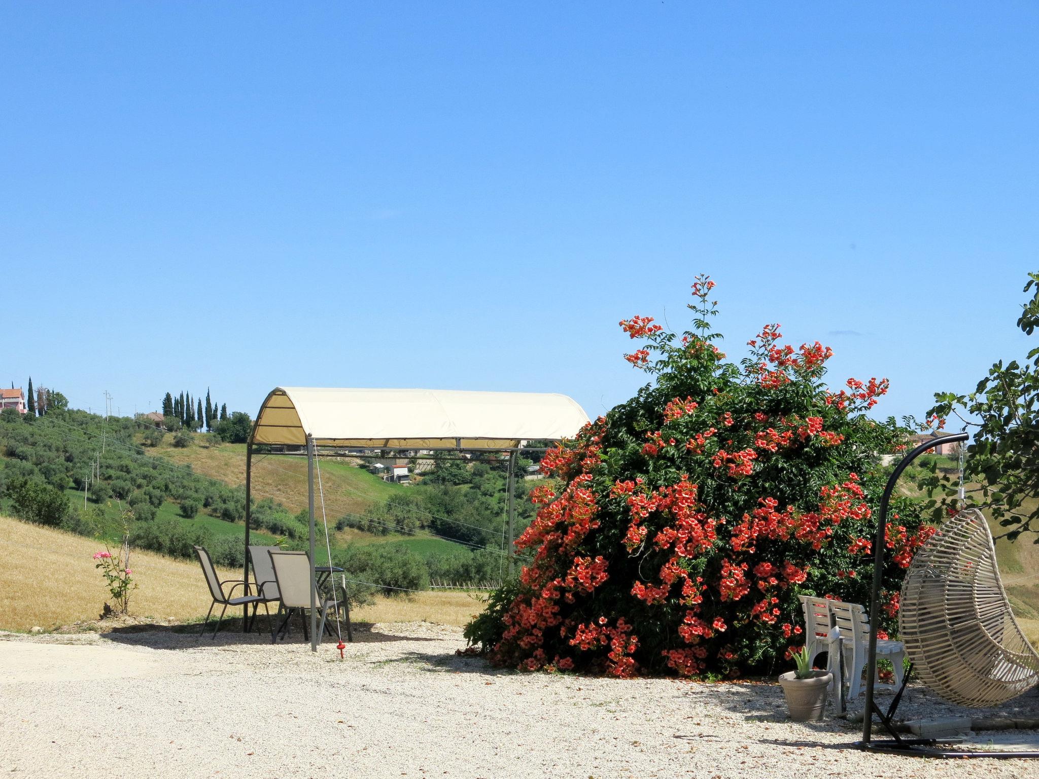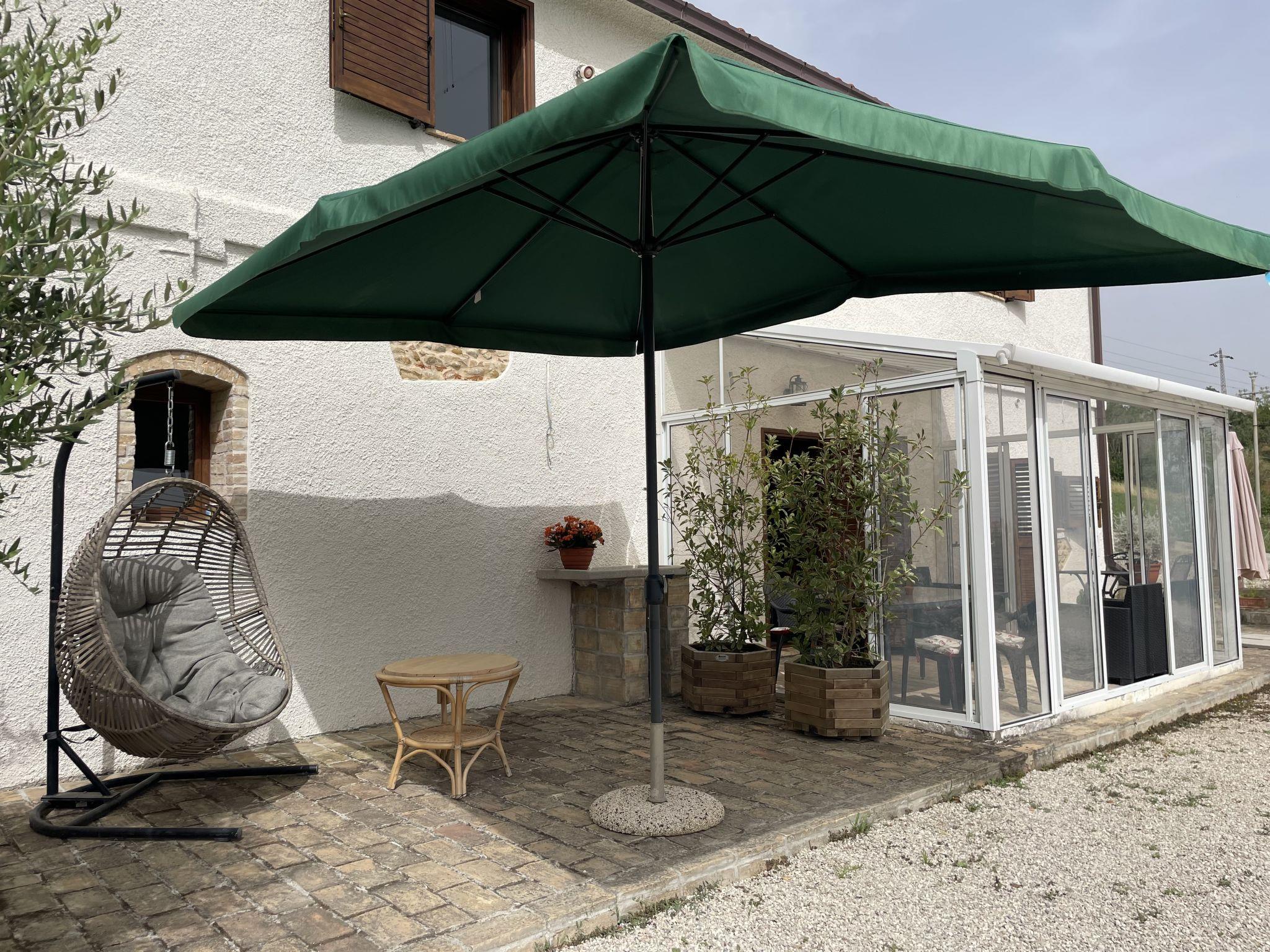 Sehr schöner, rustikaler, komfortabler Landsitz "Serrani", renoviert im Jahre 2018, umgeben von Wiesen und Feldern. 2 Häuser in der Residenz. 4 Wohnungen in der Residenz. 8 km vom Zentrum von Roseto degli Abruzzi, 13 km vom Zentrum von Giulianova, 17 km vom Zentrum von Pineto, alleinstehende, sonnige Lage am Hang, 6 km vom Meer, im Grünen. Zur Mitbenutzung: naturbelassenes Grundstück 5 ha, schöner terrassierter Garten, 5'000 m2 (nicht eingezäunt) mit Pflanzen und Bäumen, Obstgarten, Liegewiese, Aufstellpool (10 x 5 m, 130 cm tief, saisonale Verfügbarkeit: 01.Jun. - 28.Sep.). Sitzplatz, Laube, Pergola, Gartenmöbel, Grill. In der Anlage: Sprudelbad (extra). Waschmaschine (zur Mitbenutzung). 100 m lange holprige Zufahrt bis zum Haus. Treppenweg bis zum Haus. Parkplatz auf dem Grundstück. Einkaufsgeschäft 1 km, Supermarkt 8 km, Bushaltestelle 500 m, Bahnstation "Roseto degli Abruzzi" 8 km, Sandstrand 6 km. Ab Hof Verkauf von bäuerlichen Produkten. Bitte beachten: Weitere Unterkünfte sind buchbar.