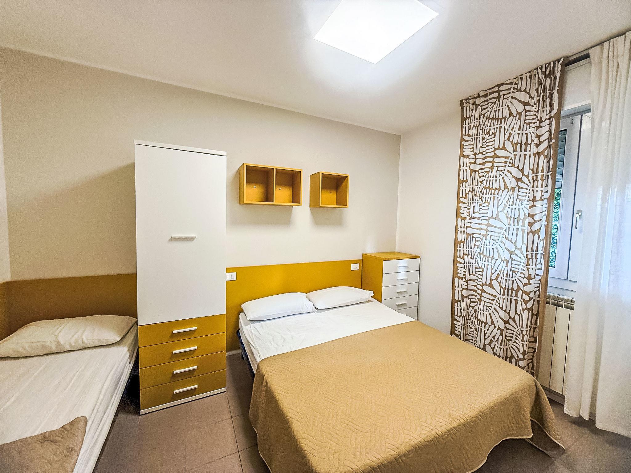 4-Zimmer-Reihenhaus 65 m2 auf 3 Stockwerken, im Zwischenstock. Vollständig renoviert im Jahre 2024, schön und modern eingerichtet: Wohn-/Schlafzimmer mit 1 Diwanbett, Esstisch und TV. Ausgang zur Terrasse. Offene Küche (Backofen, Geschirrspüler, 4 Flammen, Mikrowelle, Tiefkühler). Obergeschoss: 1 Zimmer mit 1 Bett und 1 Doppelbett. 1 Zimmer mit 1 x 2 Etagenbetten. Dusche/Bidet/WC. 2. Obergeschoss: 1 Doppelzimmer mit Dusche/Bidet/WC. Ausgang zum Balkon. Klimaanlage, Warmluftheizung (extra). Heizung nicht in allen Räumen. 2 kleine Balkone, kleine Terrasse teilweise überdacht, Gartensitzplatz. Terrassenmöbel. Zur Verfügung: Waschmaschine, Babybett (extra). Internet (WLAN, extra). Parkplatz (1 Auto) beim Haus. Maximal 1 kleines Haustier/Hund erlaubt. IT029040C2H26WMJ2Z