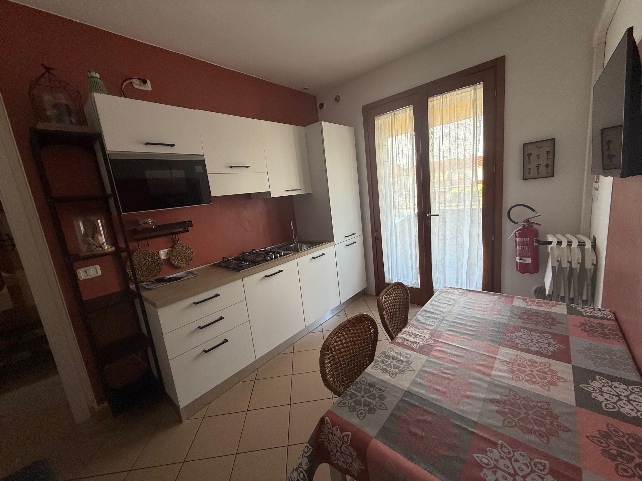 2-Zimmer-Wohnung 35 m2. Hell, renoviert im Jahre 2023, modern eingerichtet: Wohn-/Schlafzimmer mit 1 Doppeldiwanbett, Esstisch und TV. 1 Doppelzimmer. Kochnische (Geschirrspüler, 4 Flammen, Mikrowelle, Tiefkühler). Dusche/Bidet/WC. Klimaanlage, Warmluftheizung (extra). Kleiner Balkon oder kleine Terrasse. Terrassenmöbel. Zur Verfügung: Waschmaschine, Babybett bis 2 Jahre (extra). Internet (WLAN, extra). Parkplatz (1 Auto) beim Haus. Bitte beachten: Maximal 1 Haustier/Hund erlaubt. Eigener Eingang. IT029040C2N6N5MC4H